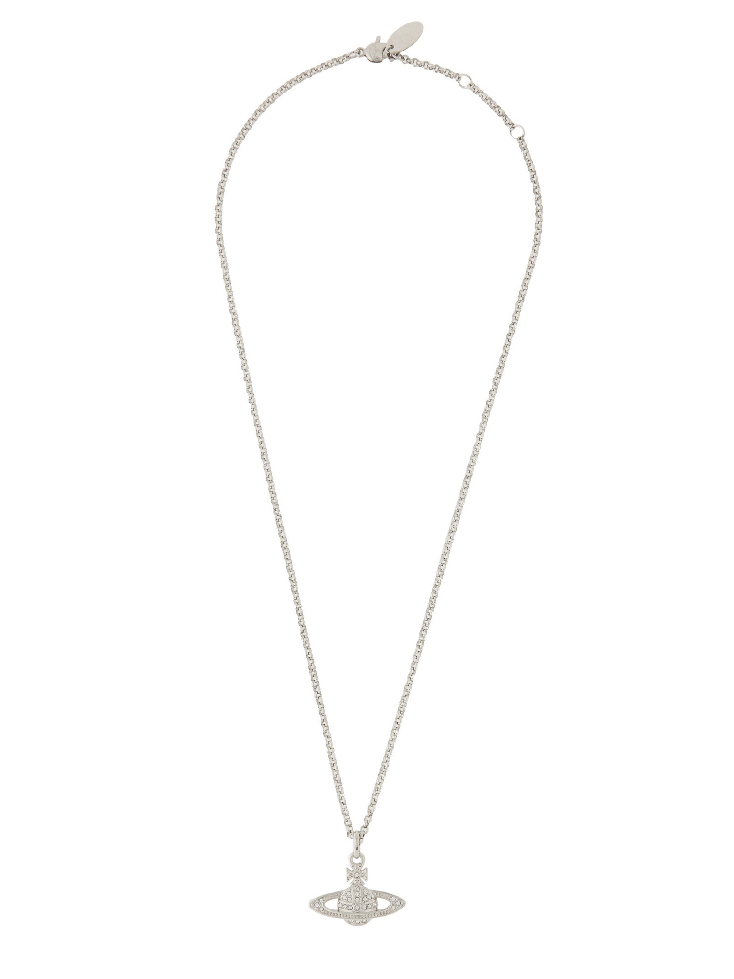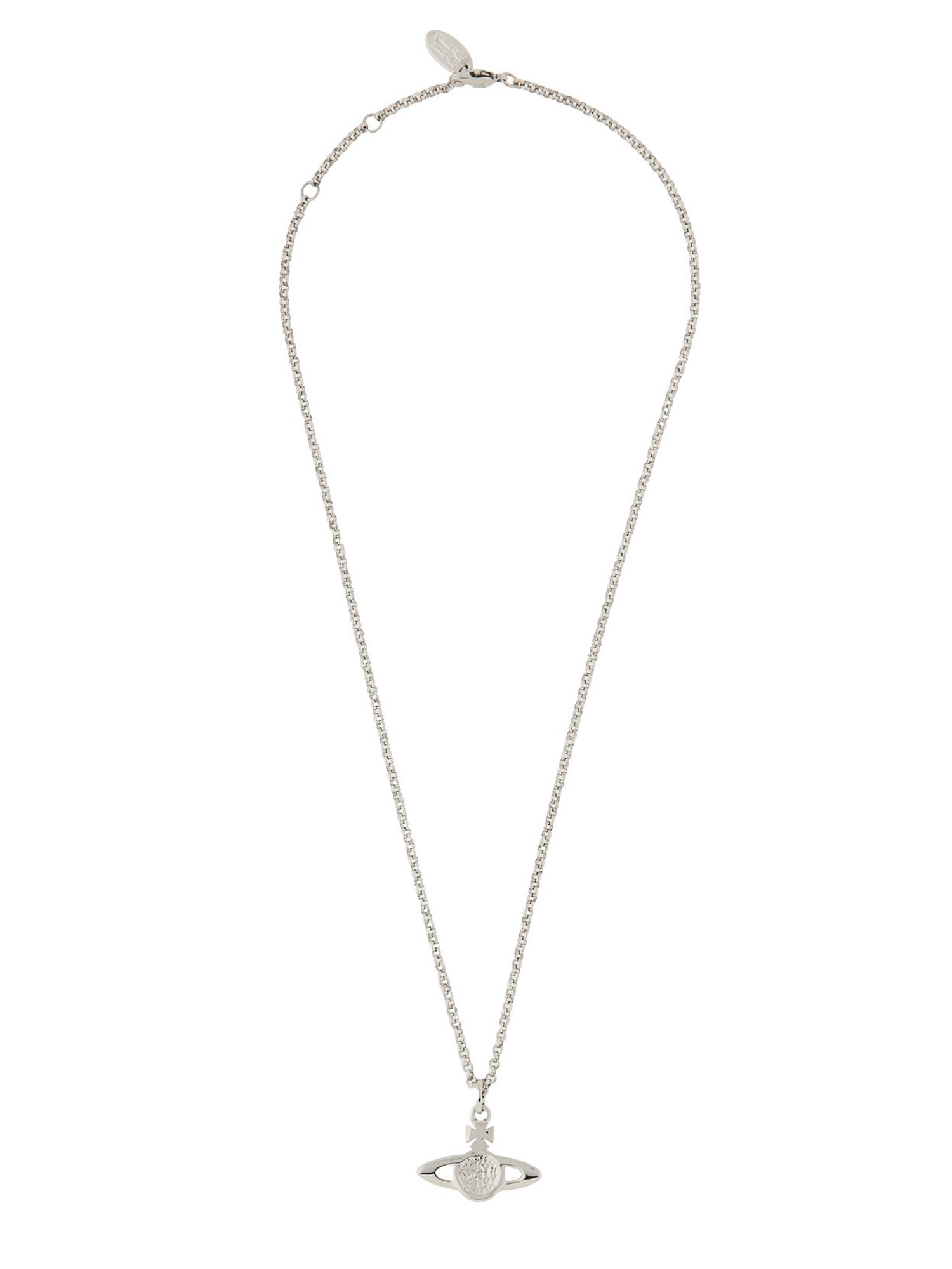 This exquisite piece of jewellery from Vivienne Westwood is meticulously crafted to add a touch of elegance and style to any outfit. The combination of the silver chain and the mini brass pendant creates a unique and eye-catching contrast that is sure to capture attention. Made with high-quality materials, this necklace is designed to last and withstand everyday wear. The silver chain is sleek and lightweight, ensuring a comfortable fit around your neck.