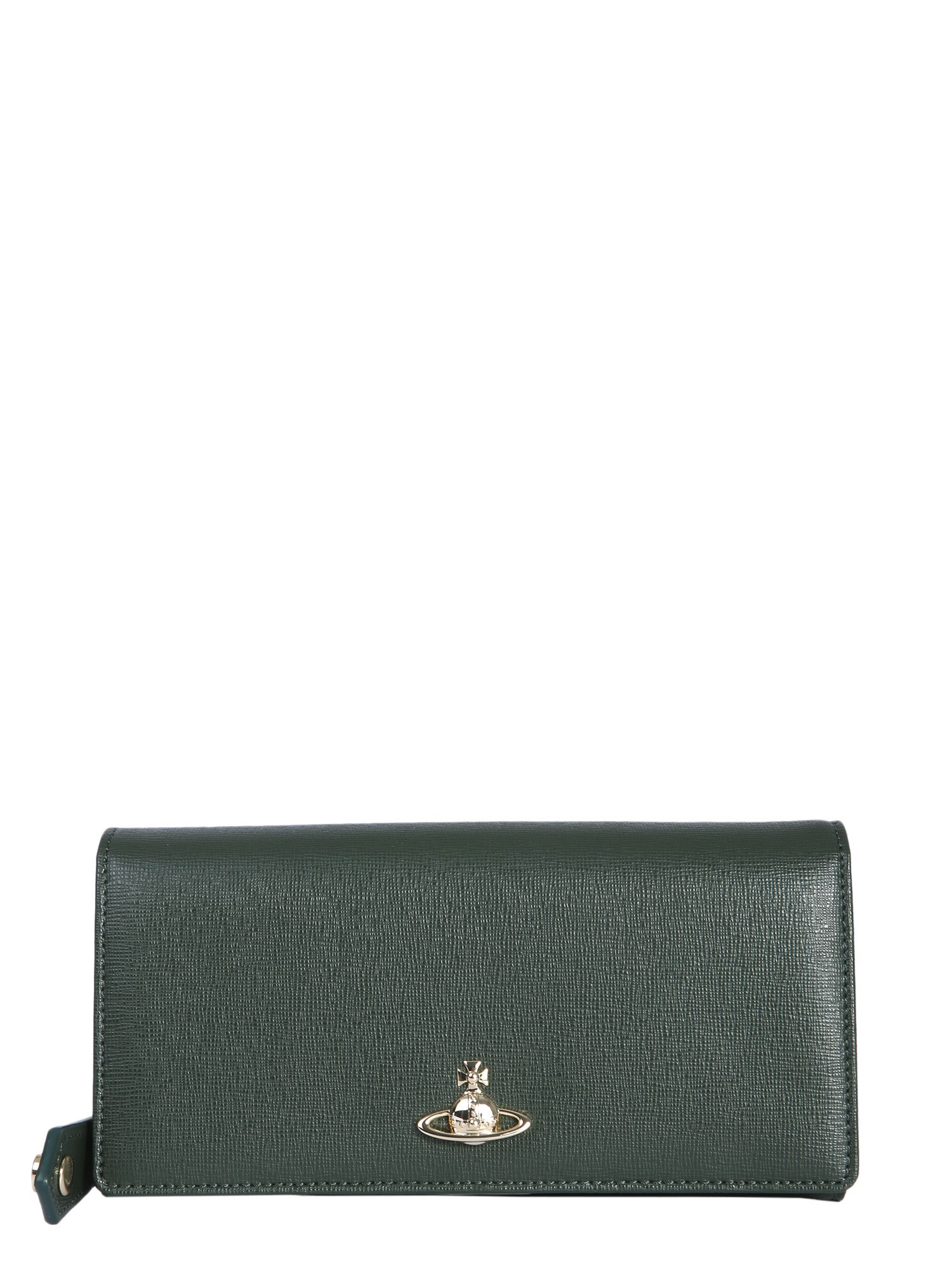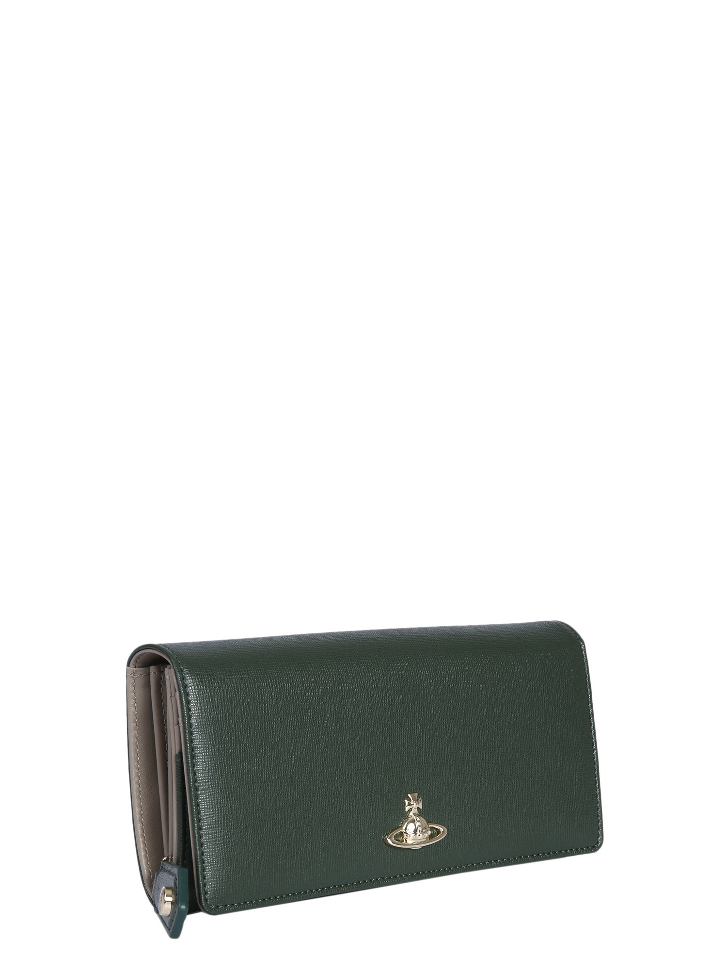 Vivienne Westwood has designed its Continental Victoria wallet in calf leather with satin lining. As many as eighteen compartments, one central pockets, and three other pocket sleeves together make this wallet a terrifically purposeful accessory to get your cards, cash, and ID organized. Its zip around closure assures security, while the signature Orb on the bottom front gets the wallet all styled up.