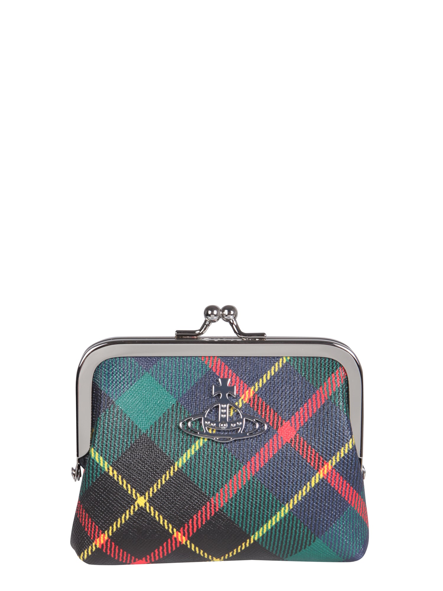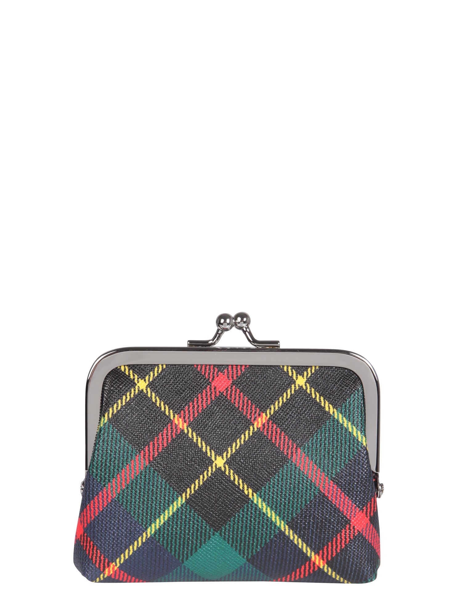 Perfect for everyday use, carry your essentials in style with the Derby Hunting Tartan purse from Vivienne Westwood. The purse has a pressure closure and features a line inner and logo on the front. Crafted from a blend of recycled polyester, polyester, and cotton, the purse includes a silver finish metal accessory.