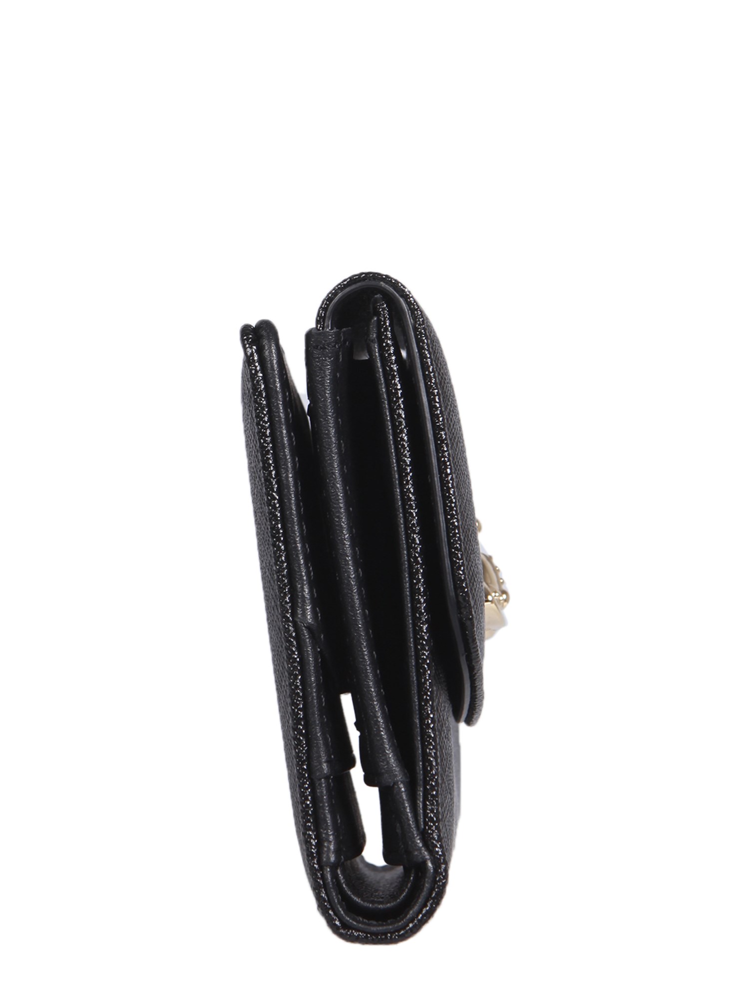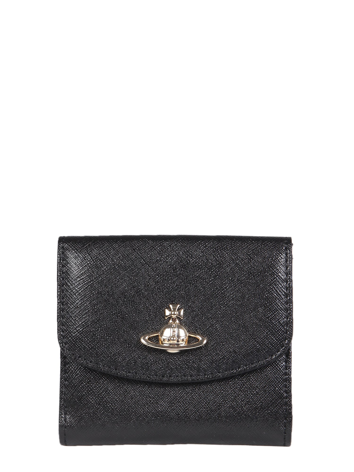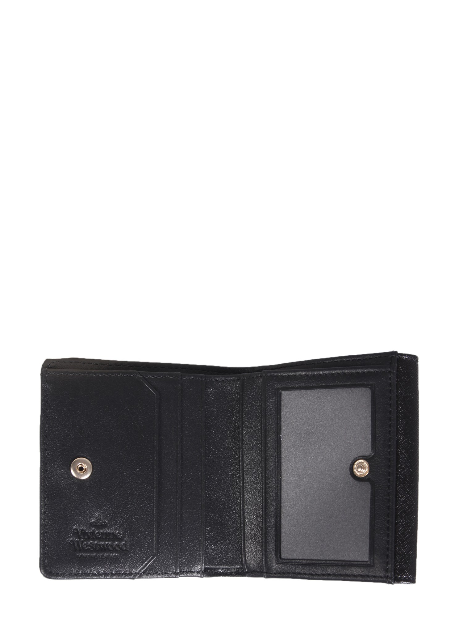 Experience fine craftsmanship and keep your belongings safe in a small Victoria Saffiano leather wallet from Vivienne Westwood. The leather construction wallet features four card compartments, a window pocket for documents, a banknote pocket, coin pocket with a snap button. It has a snap button closure and the front is adorned with a gold finish metal logo.