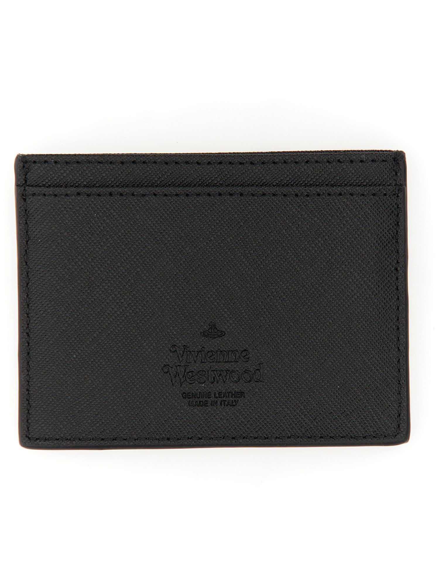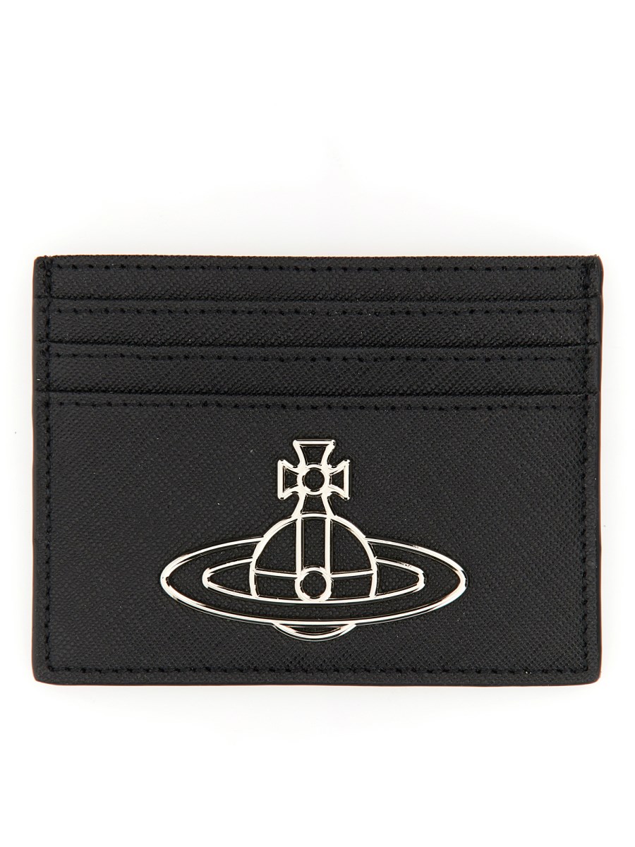 The Vivienne Westwood leather card holder is a small, elegant and chic accessory that can be used as a clutch, as a wristlet, or as a wallet. It features a sturdy leather construction with a soft interior. It features a central compartment, four card slots and a logo detail.