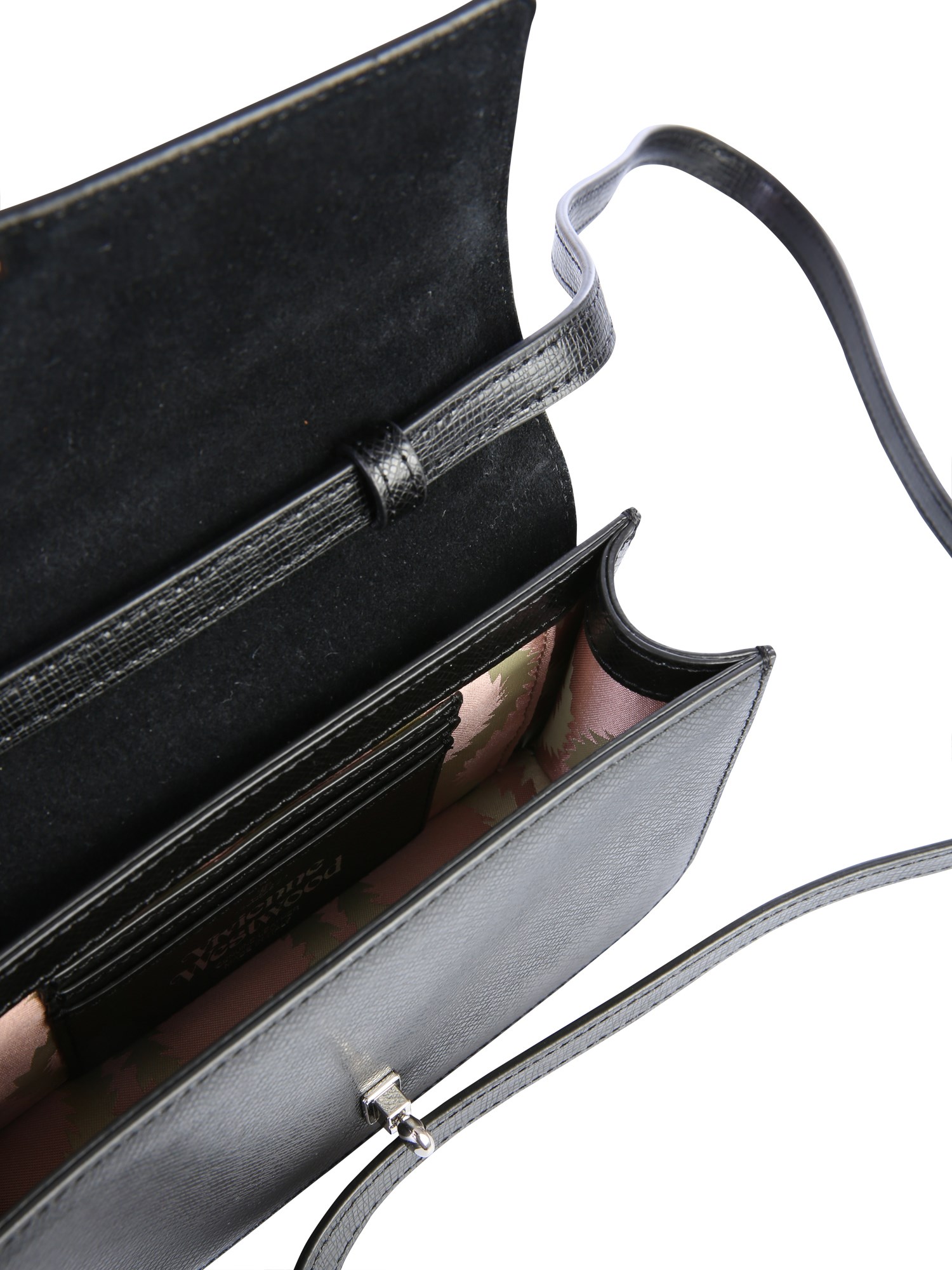 Want to have a bag that not only suits your bold personality but also your wardrobe? Then this "Sofia" bag by Vivienne Westwood is the one you should get. It can be carried as a shoulder bag or a pouch, all you need is to adjust the strap a bit. Designed with bold black leather fabric, the bag looks attractive.