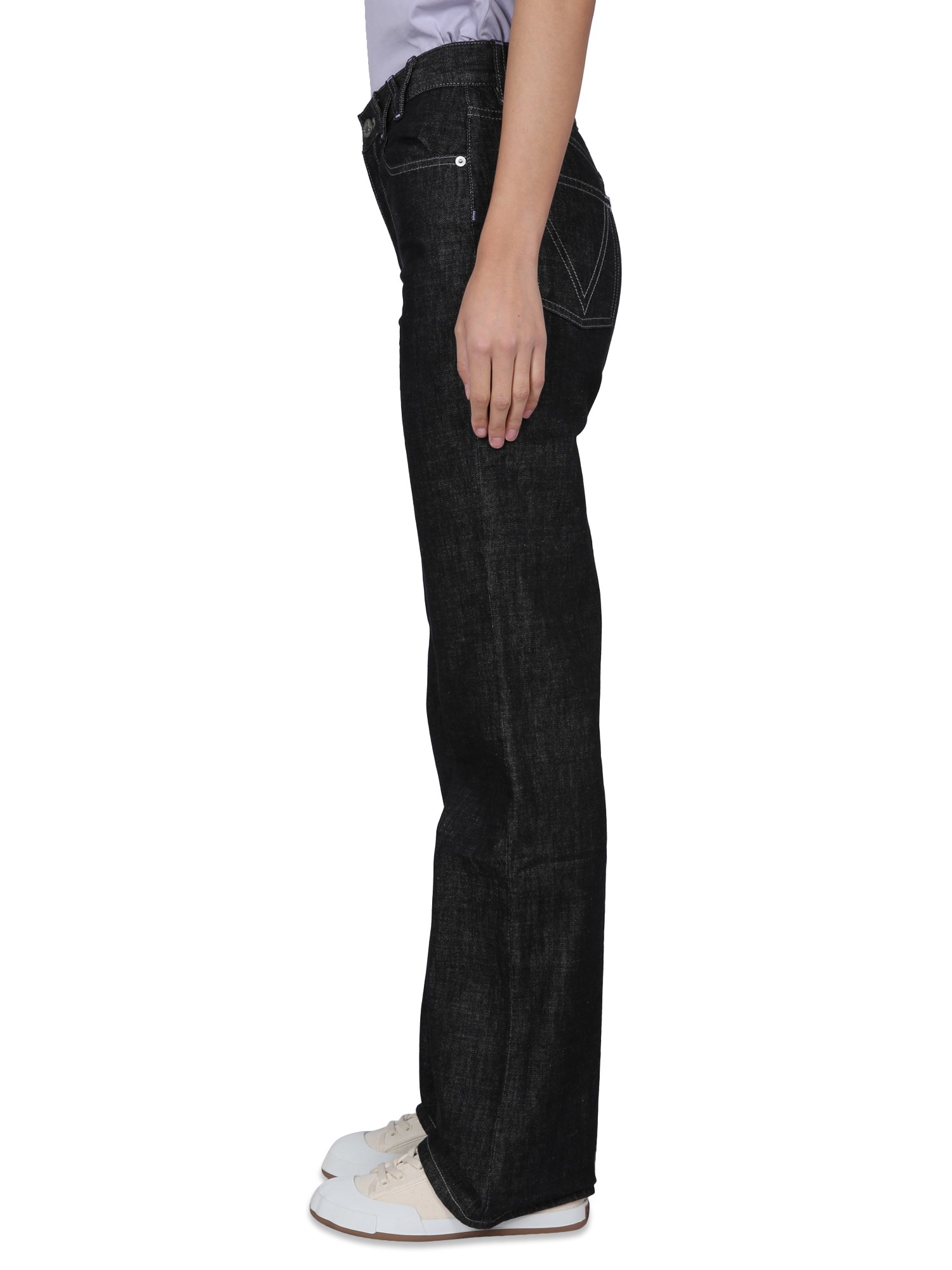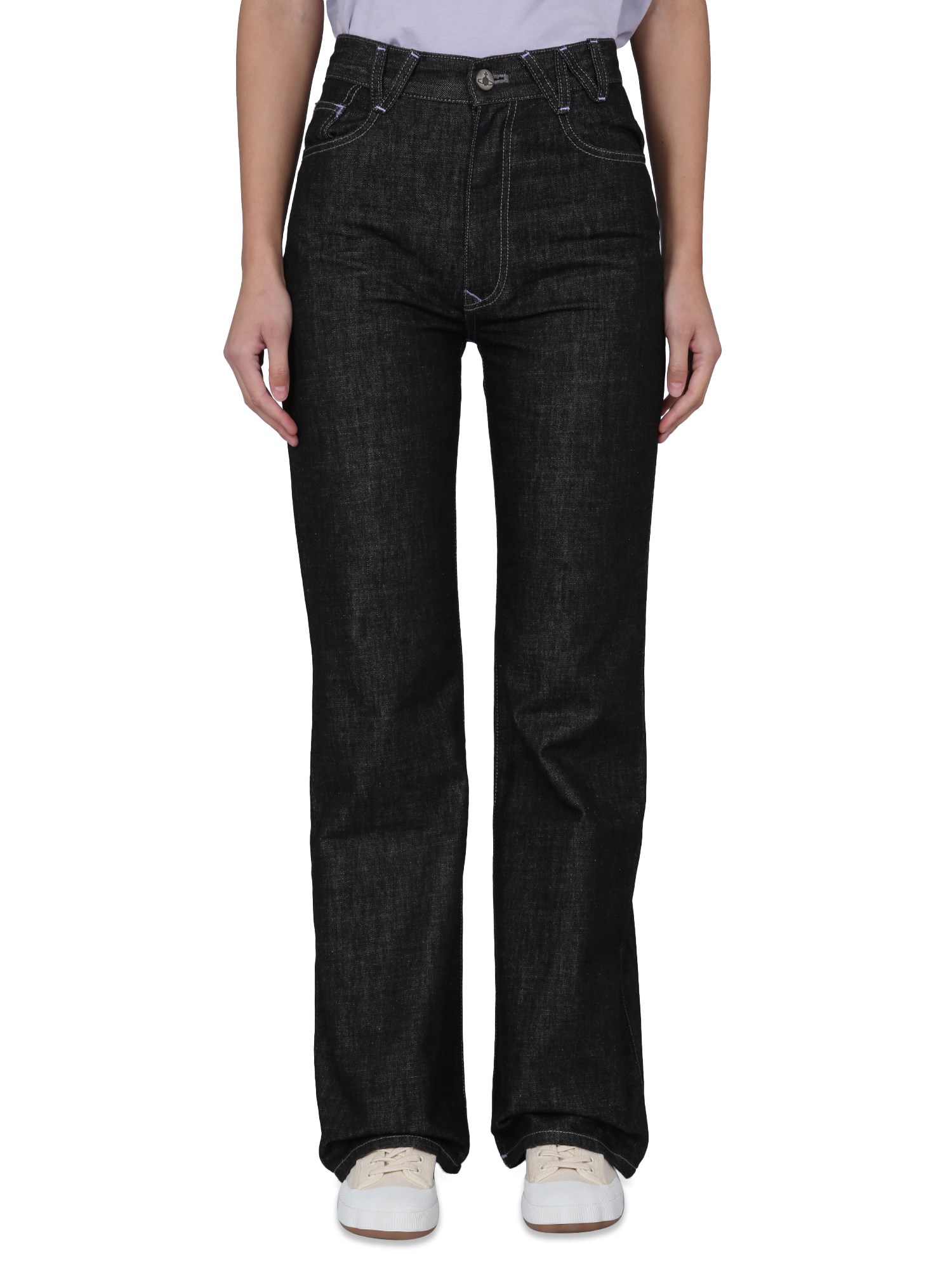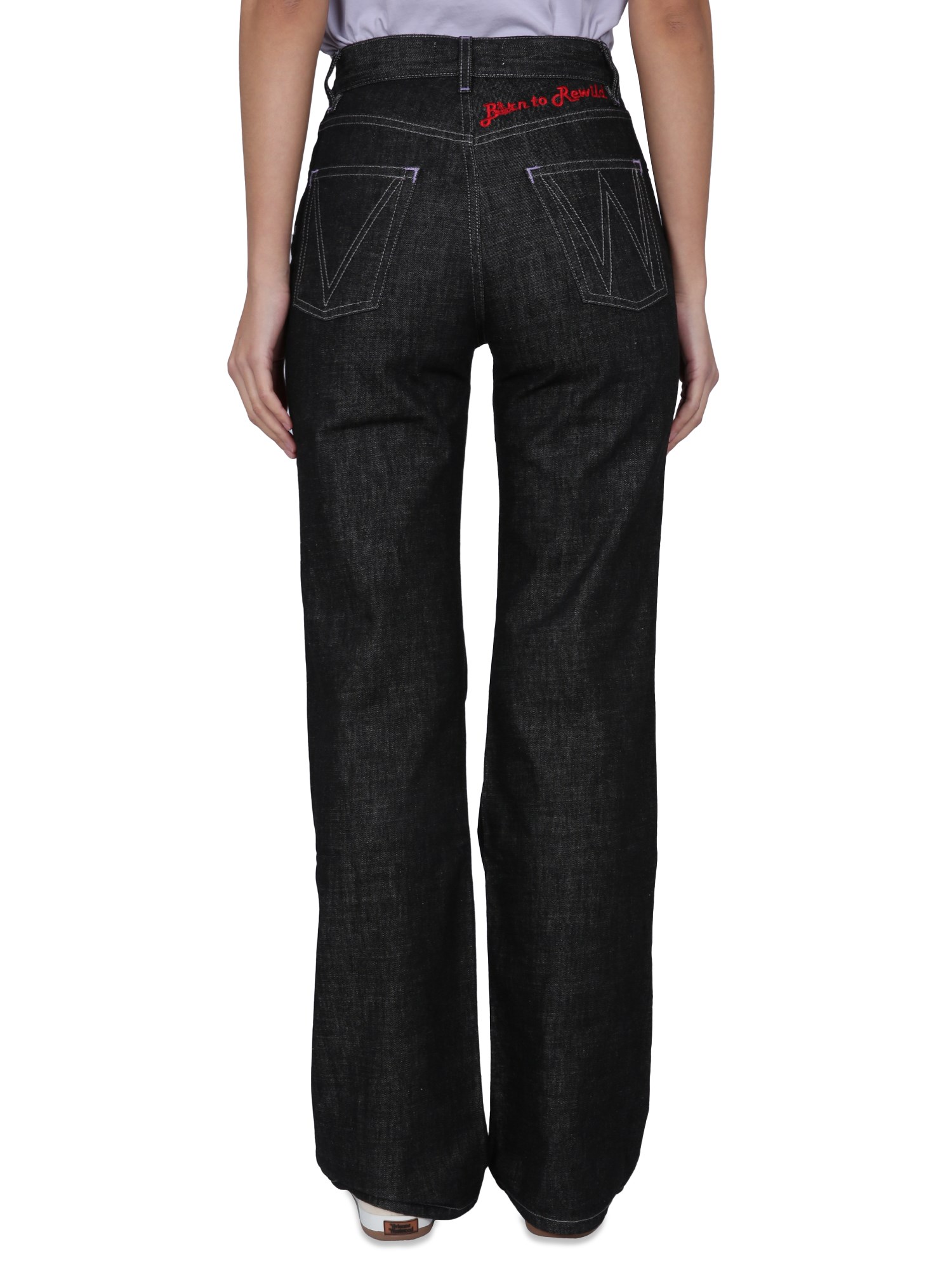 Durable and stylish, these pair of jeans from Vivienne Westwood are a must-have for your wardrobe. They feature a button and zipper closure, a logo loop, five pockets, and a flare fit. Made from 100% recycled cotton, these jeans are the perfect choice for the eco-conscious consumer.