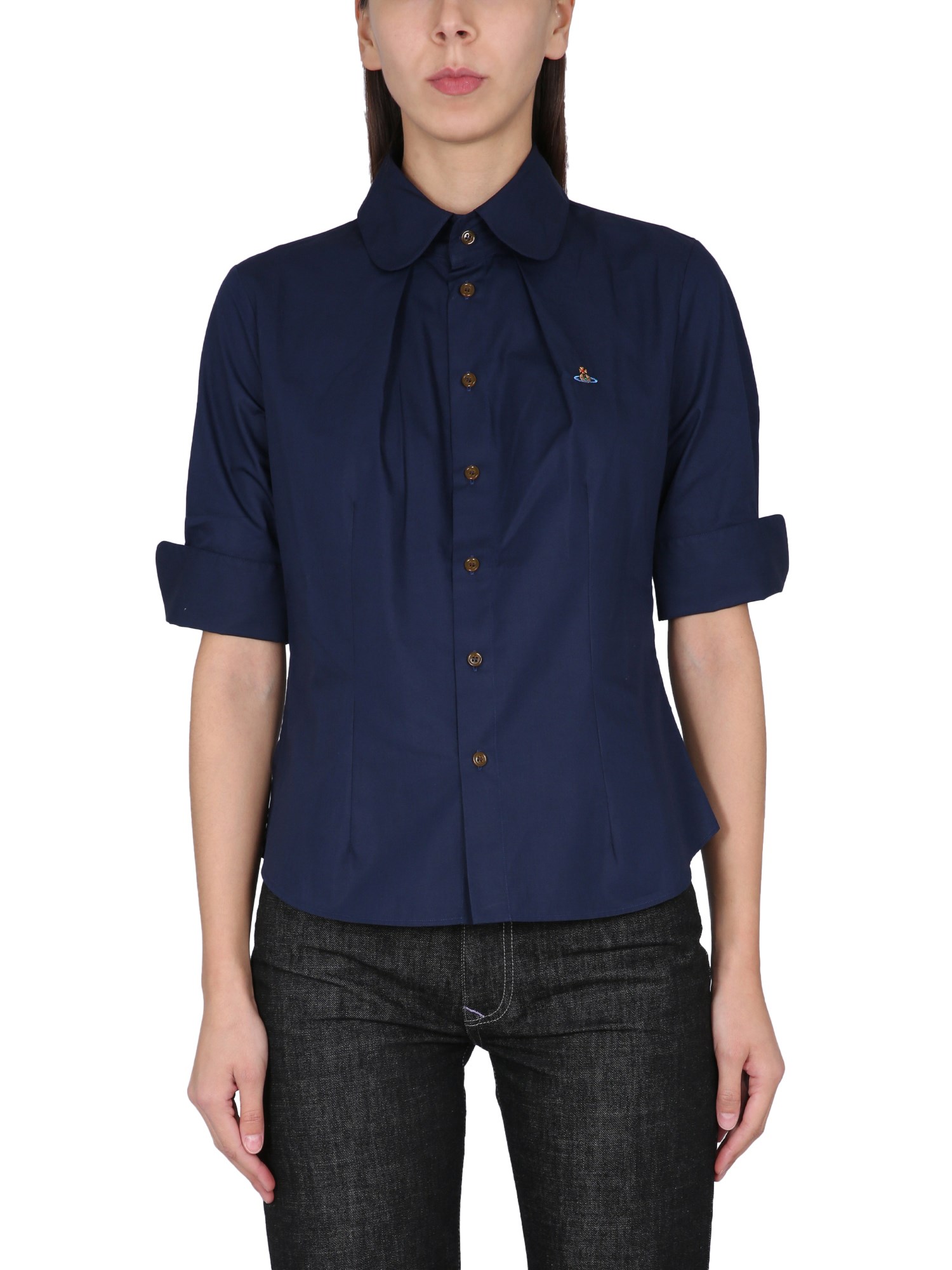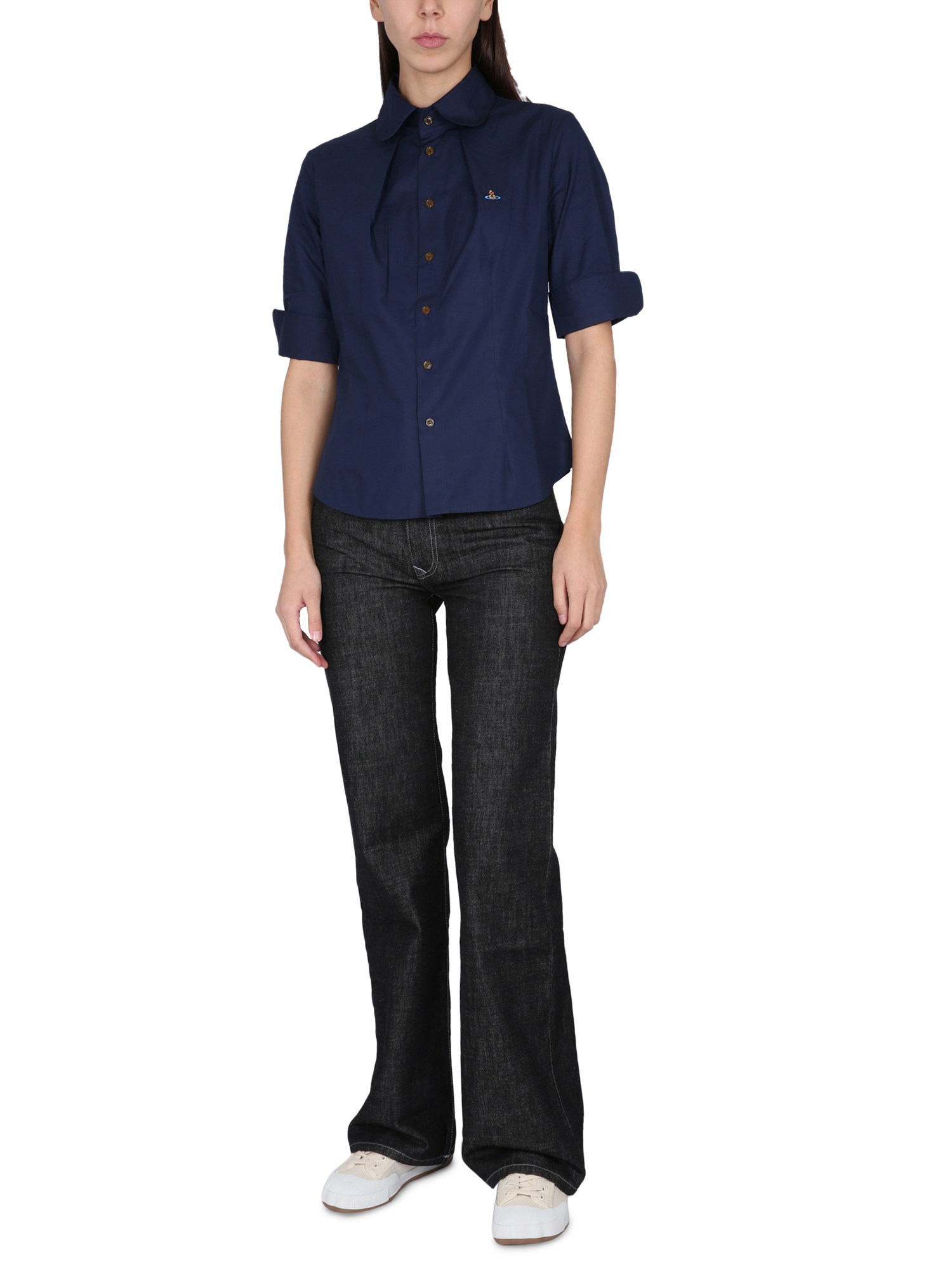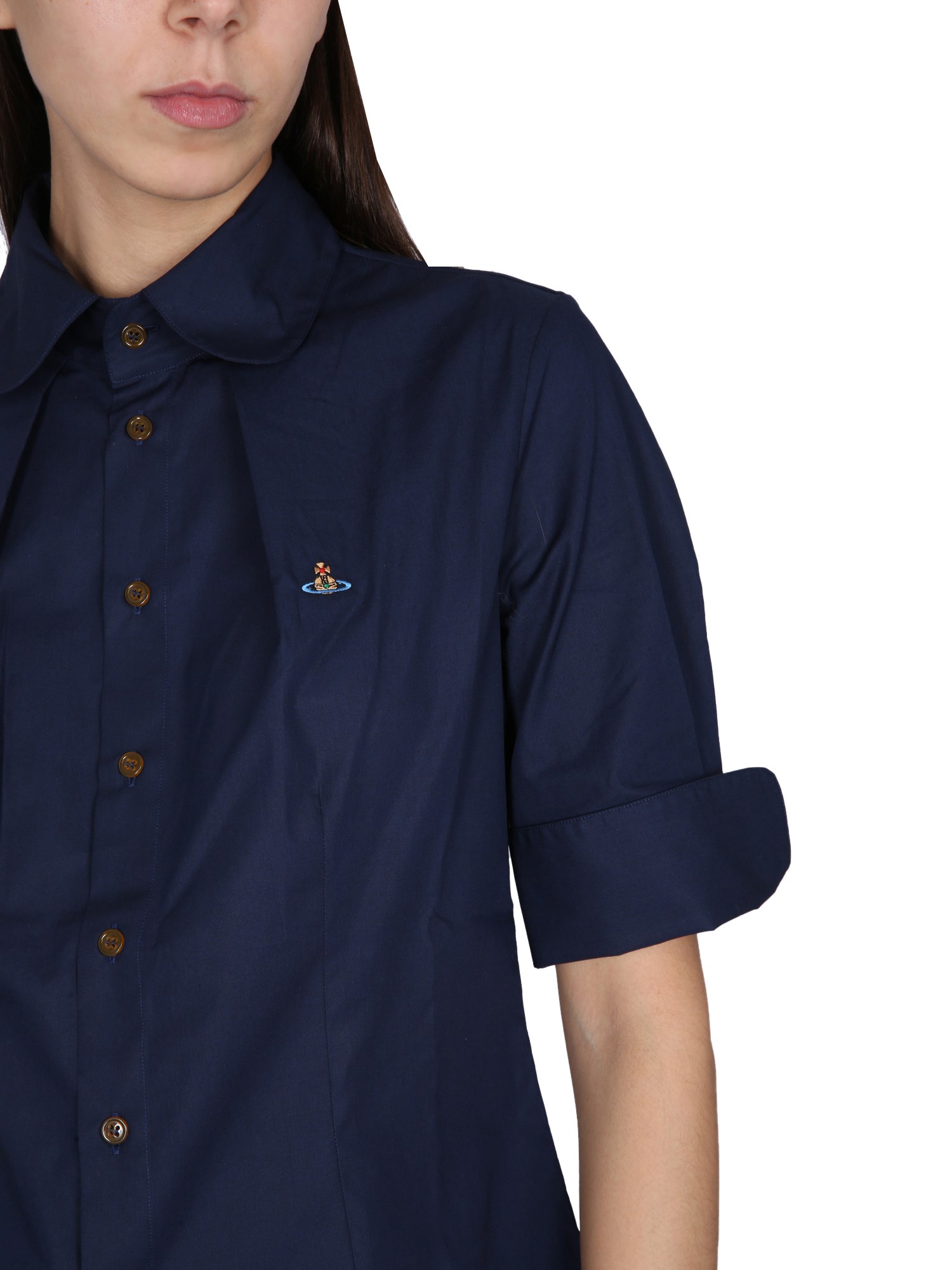 This cotton shirt from Vivienne Westwood is the perfect way to keep you cool in the summer. With an embroidered orb at the front, this shirt is the perfect way to show your love for the brand. With a classic collar and button closure, this shirt is perfect for the office or casual wear.