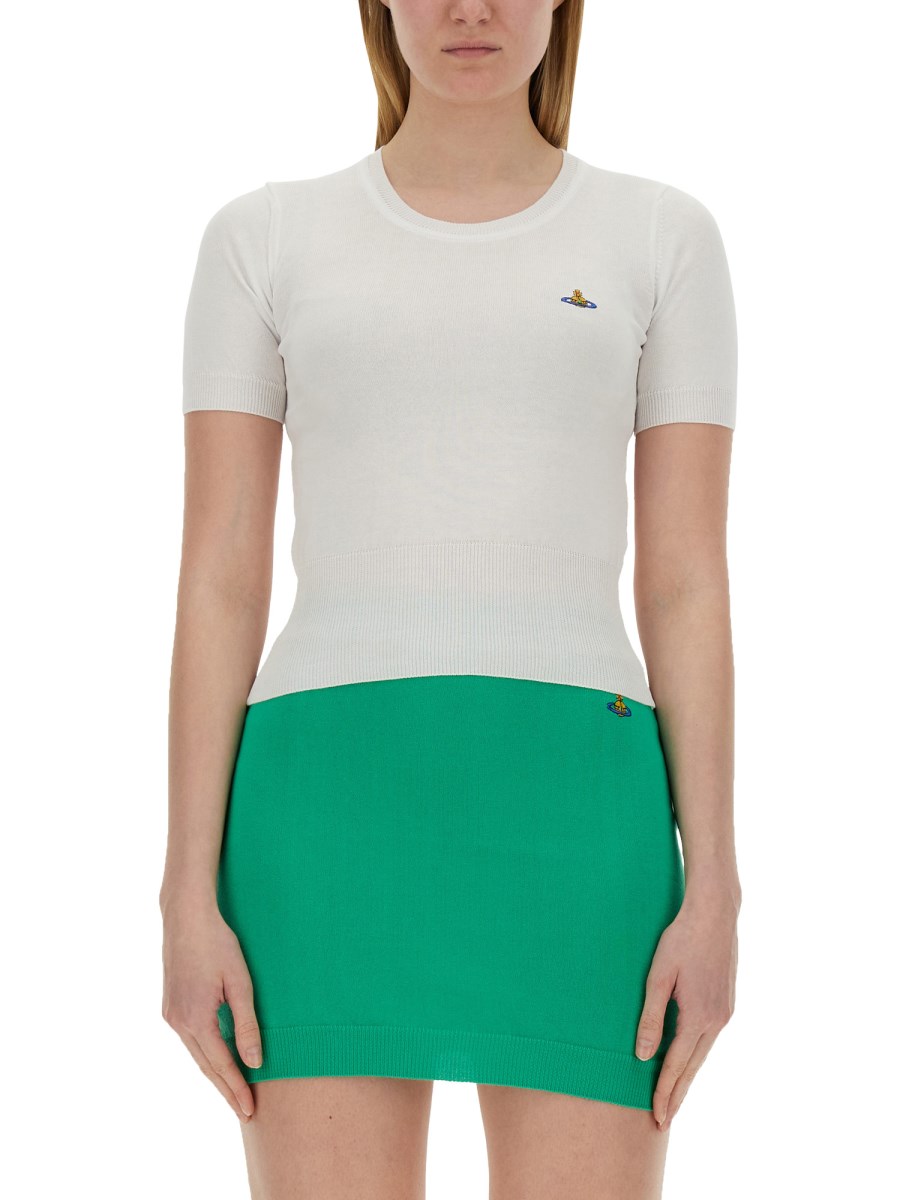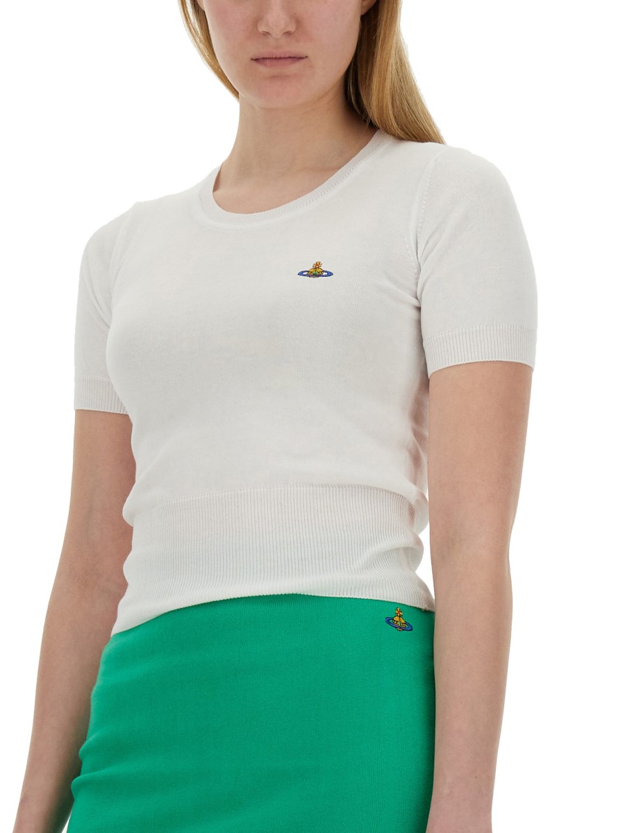 This trendy top from Vivienne Westwood is a perfect addition to your wardrobe, offering both comfort and fashion-forward style. Made from high-quality, breathable fabric, this top provides a soft and comfortable fit all day long. The crew neck design adds a touch of elegance, making it suitable for both casual and formal occasions.