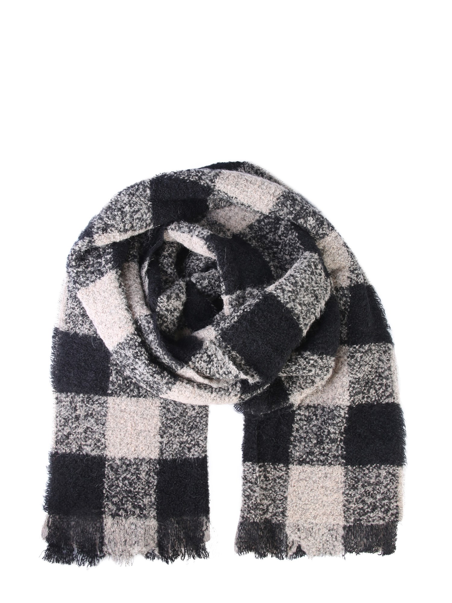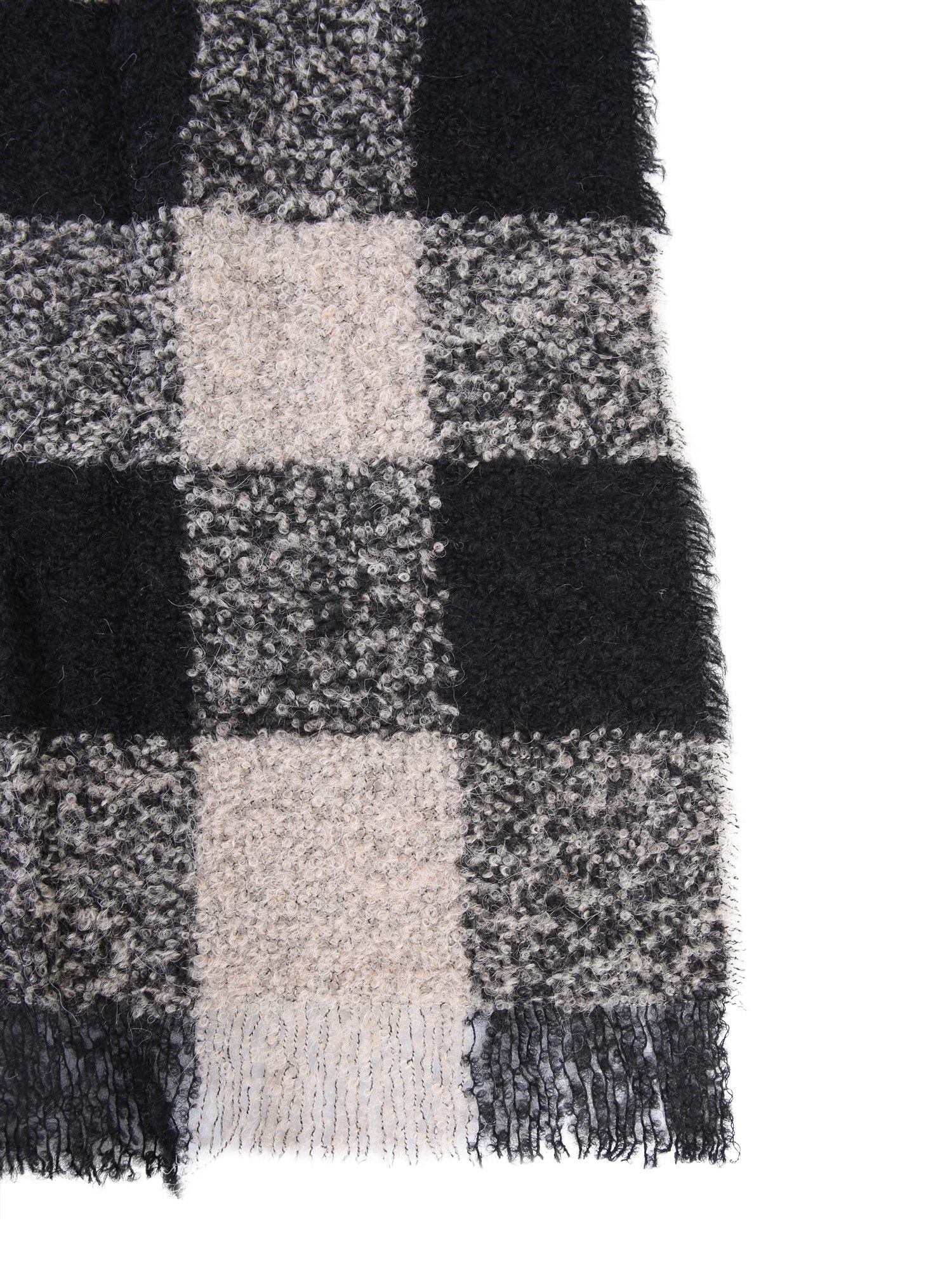 The Bouclè scarf from Woolrich has a furry texture made with a combination of virgin wool, alpaca mohair wool and polyamide materials. It is super soft yet strong and easy to maintain for a long time. The plaid design, along with fringes adds a classic touch to your with grace.