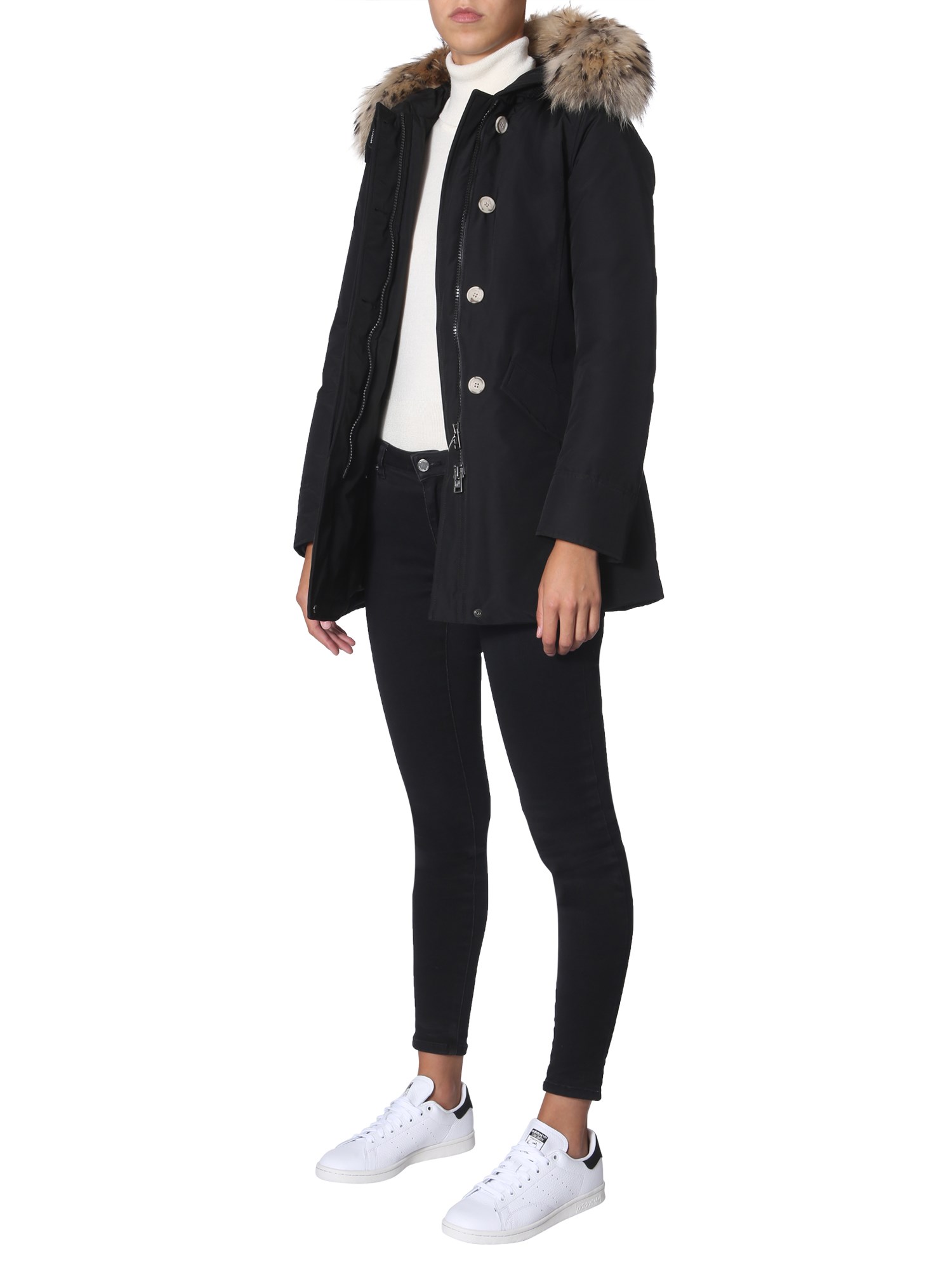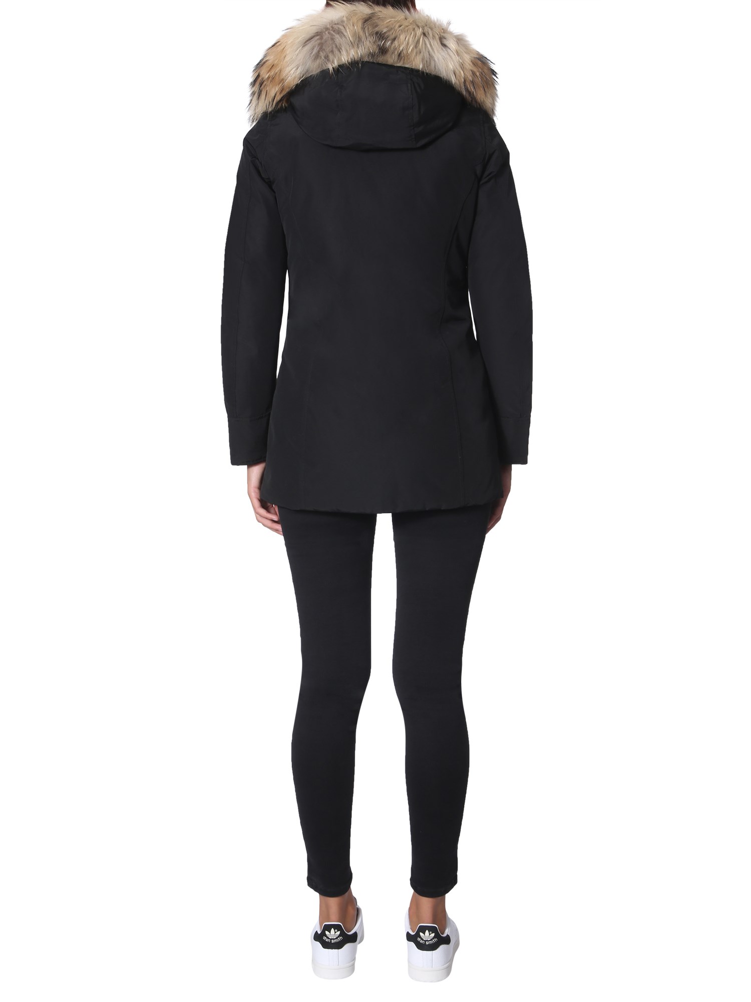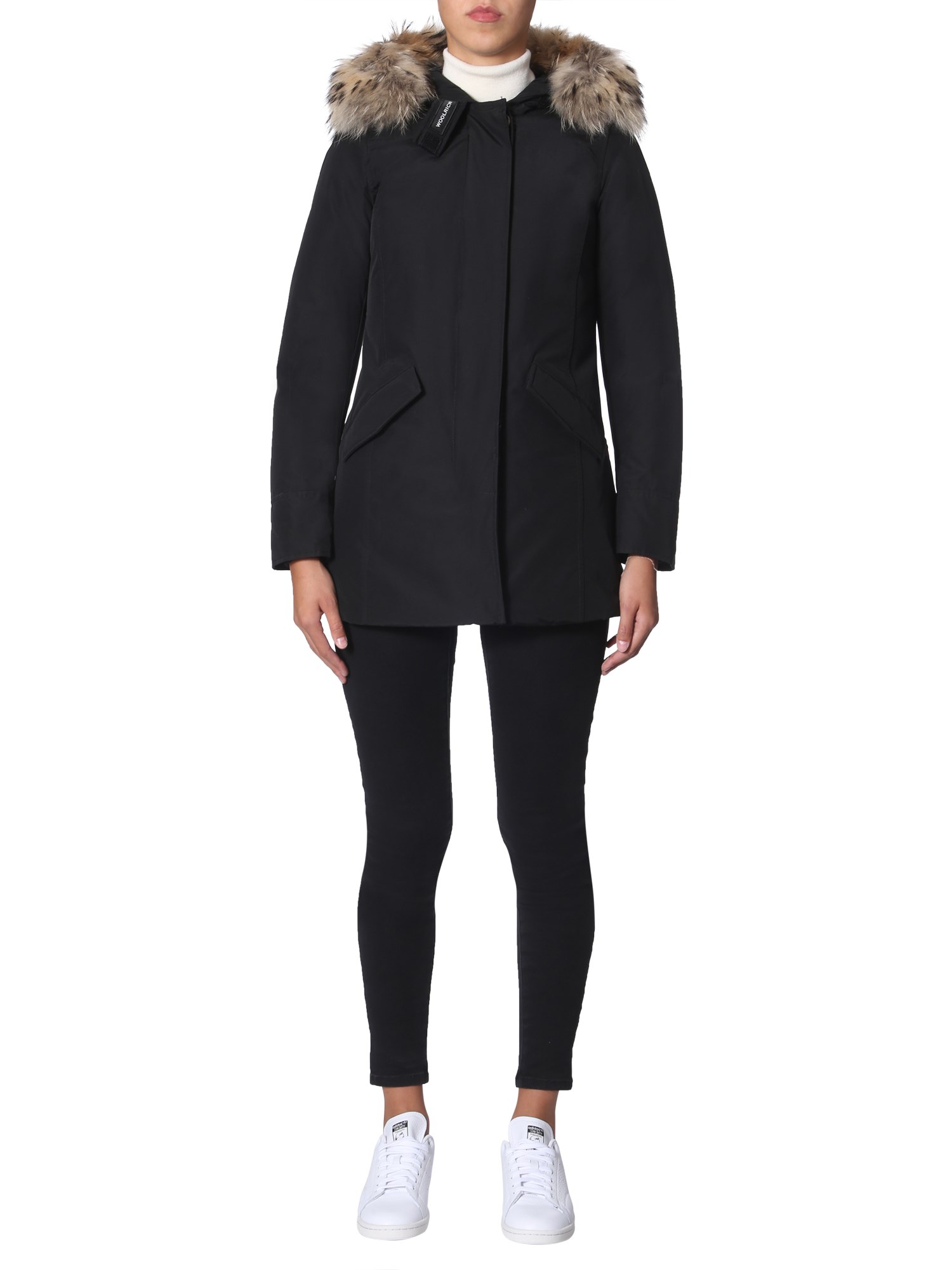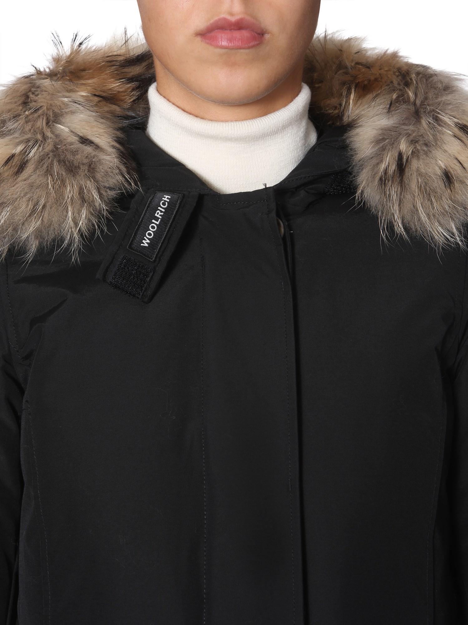 This winter add the "arctic" down jacket presented by Woolrich. The surface of the jacket is made of cotton and polyamide which is stuffed with soft down fabric for utmost warmth. Its murmasky fur border enhances the cosiness. The practical design of this jacket makes it a perfect companion for your winter adventures and trips.