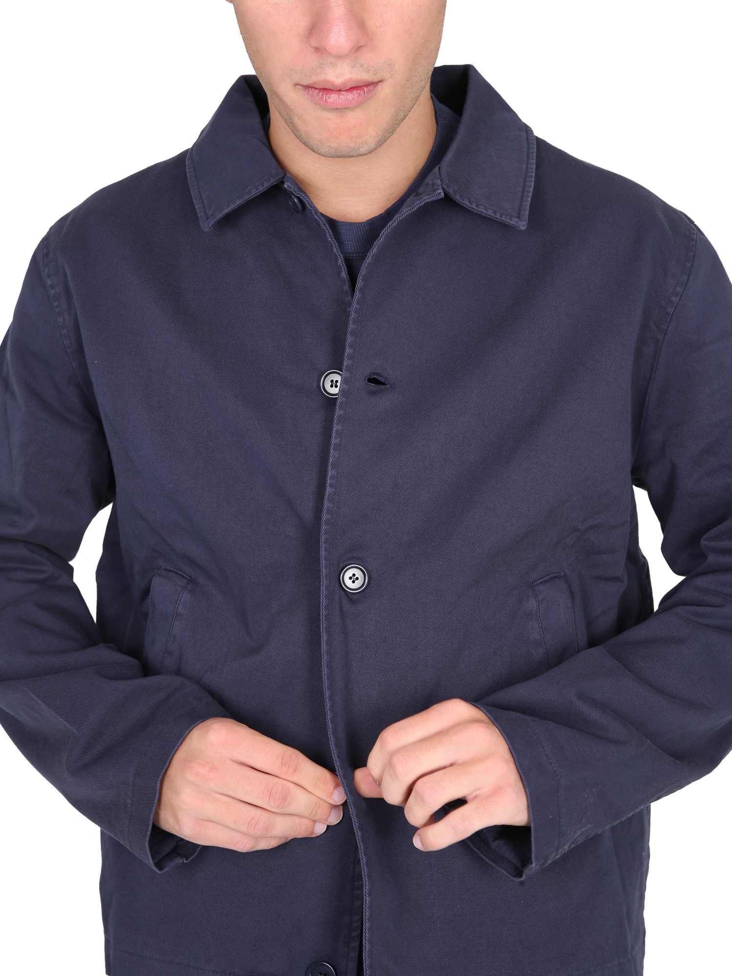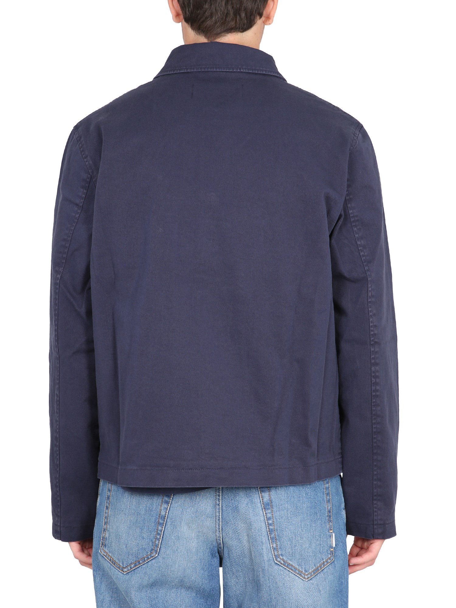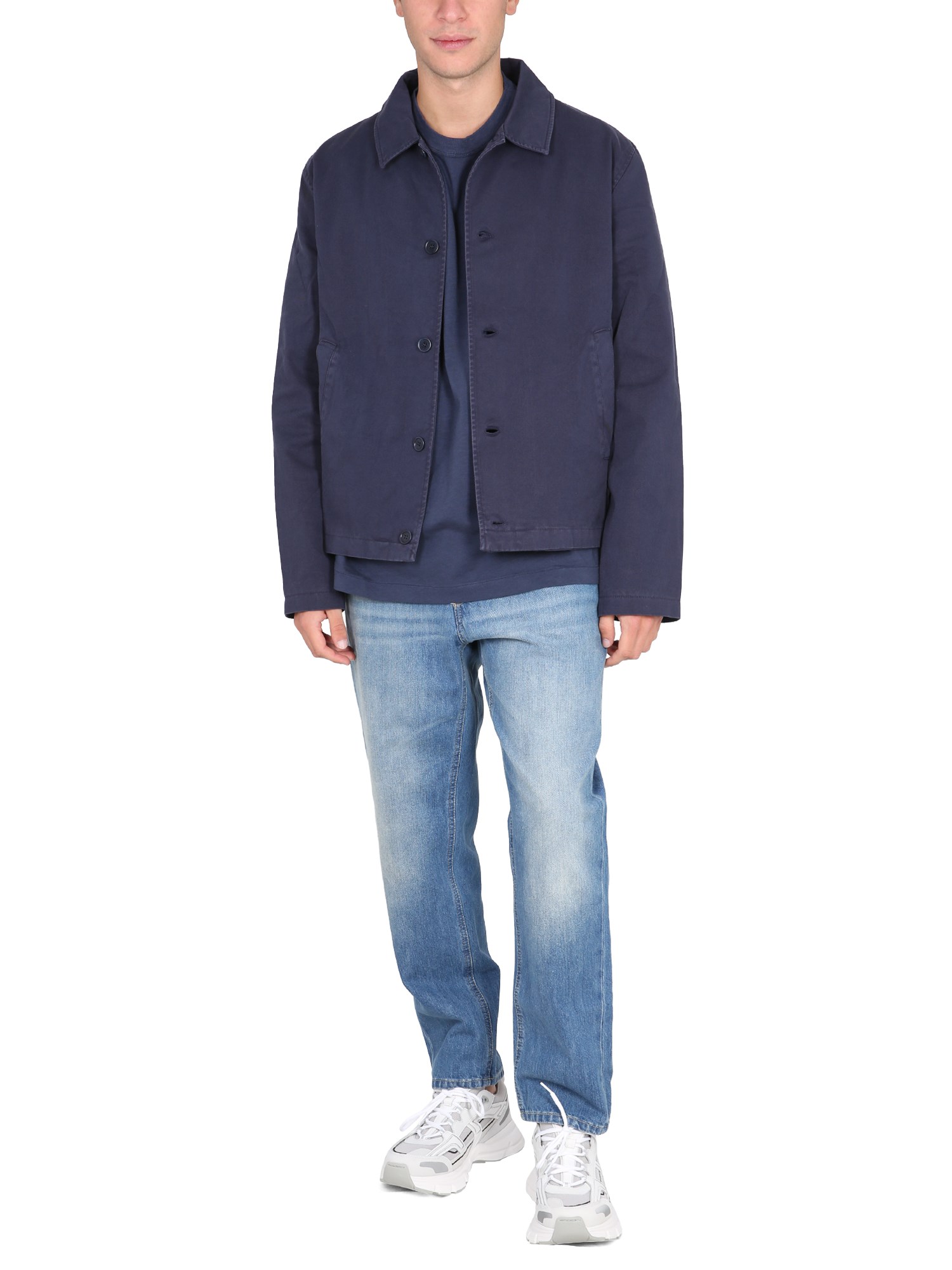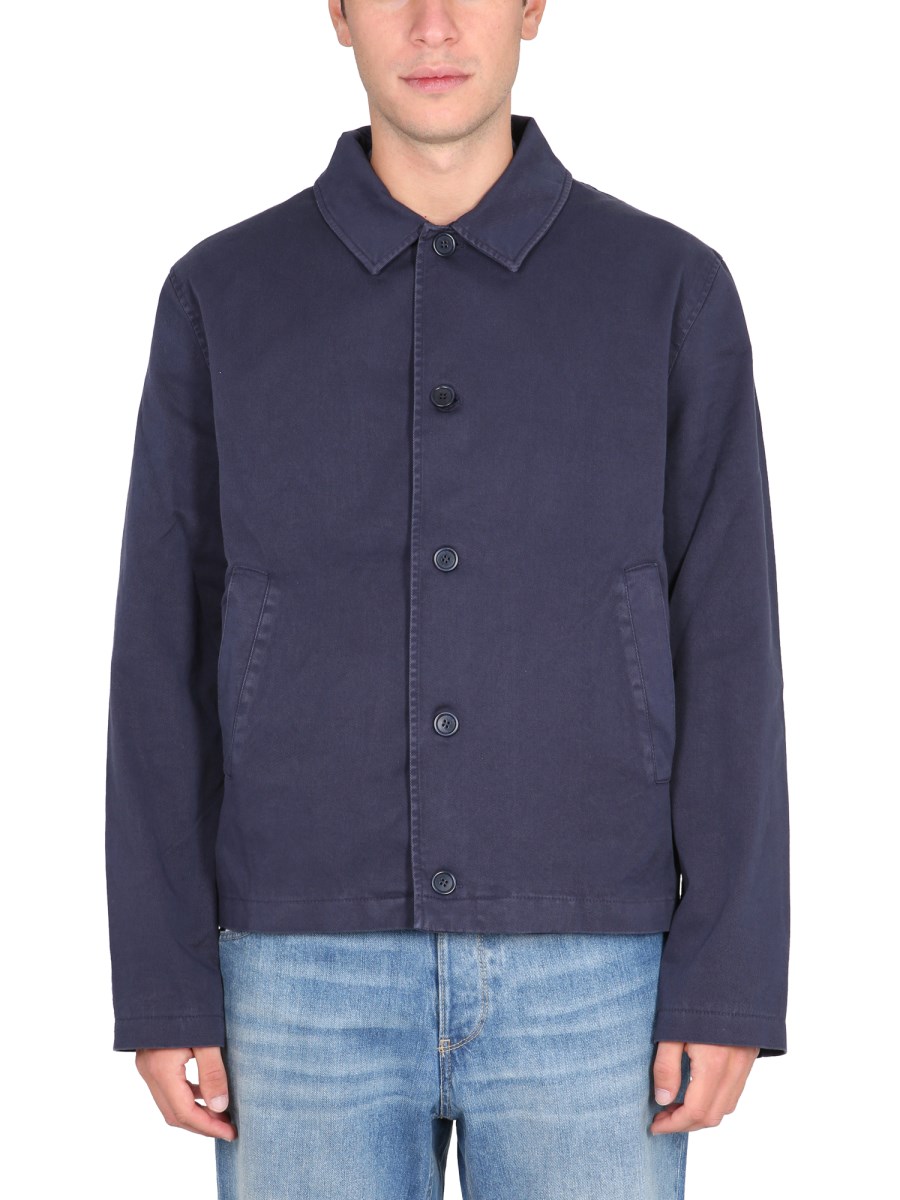 This jacket by YMC can be paired with any look, whether you're going to a formal event or just want to be cosy at home. The jacket is the perfect transitional piece. It is made of a thin fabric, has classic collar and a front button closure. The jacket is a great addition to your wardrobe and is great for any season.