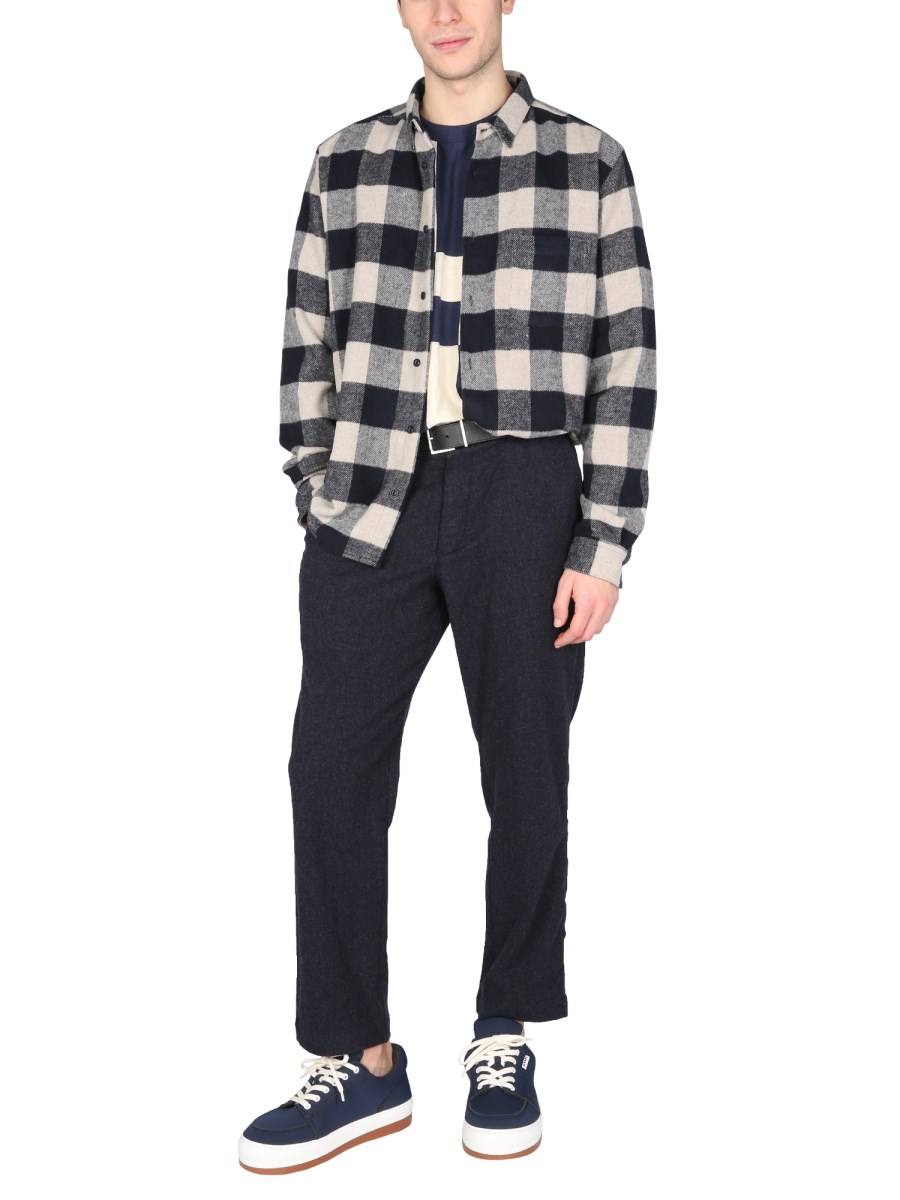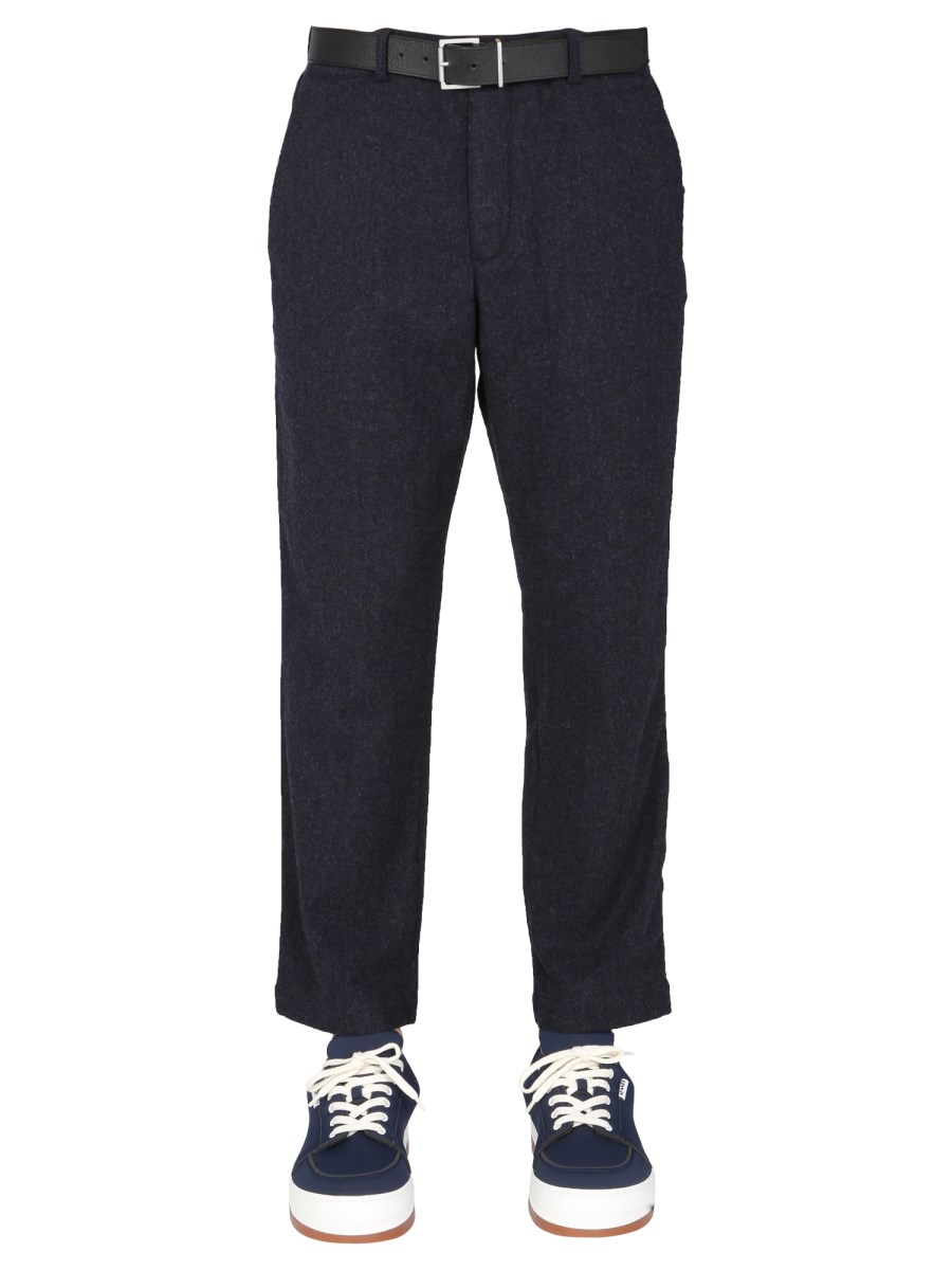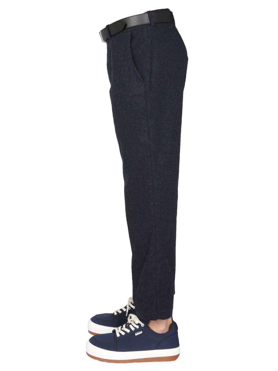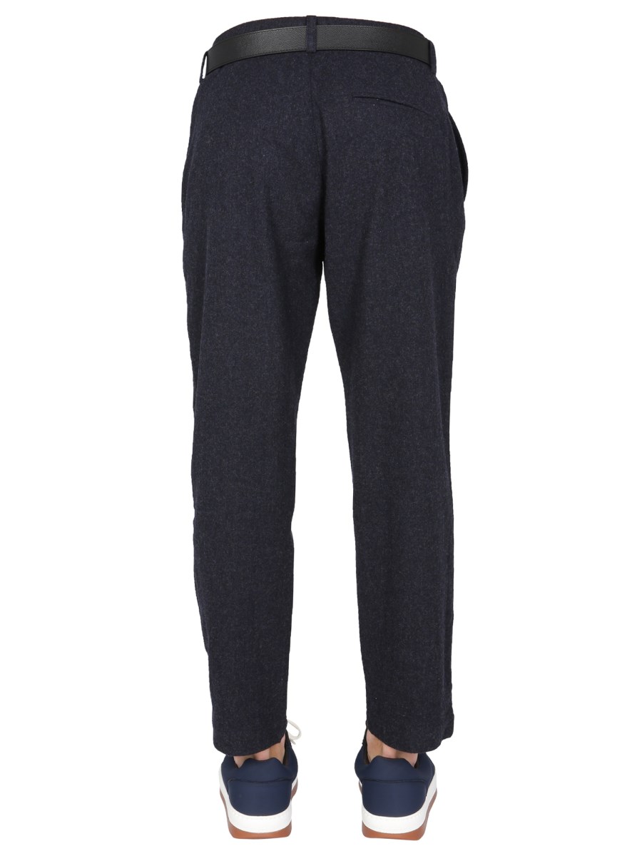 - FRONT BUTTON CLOSURE- BELT LOOP AT THE WAIST- TWO SIDE POCKETS- BACK POCKET- 69% WOOL, 25% POLYAMIDE, 5% OTHER FIBERS, 1% ELASTANE- MODEL IS 185 CM TALL AND WEARS SIZE 32