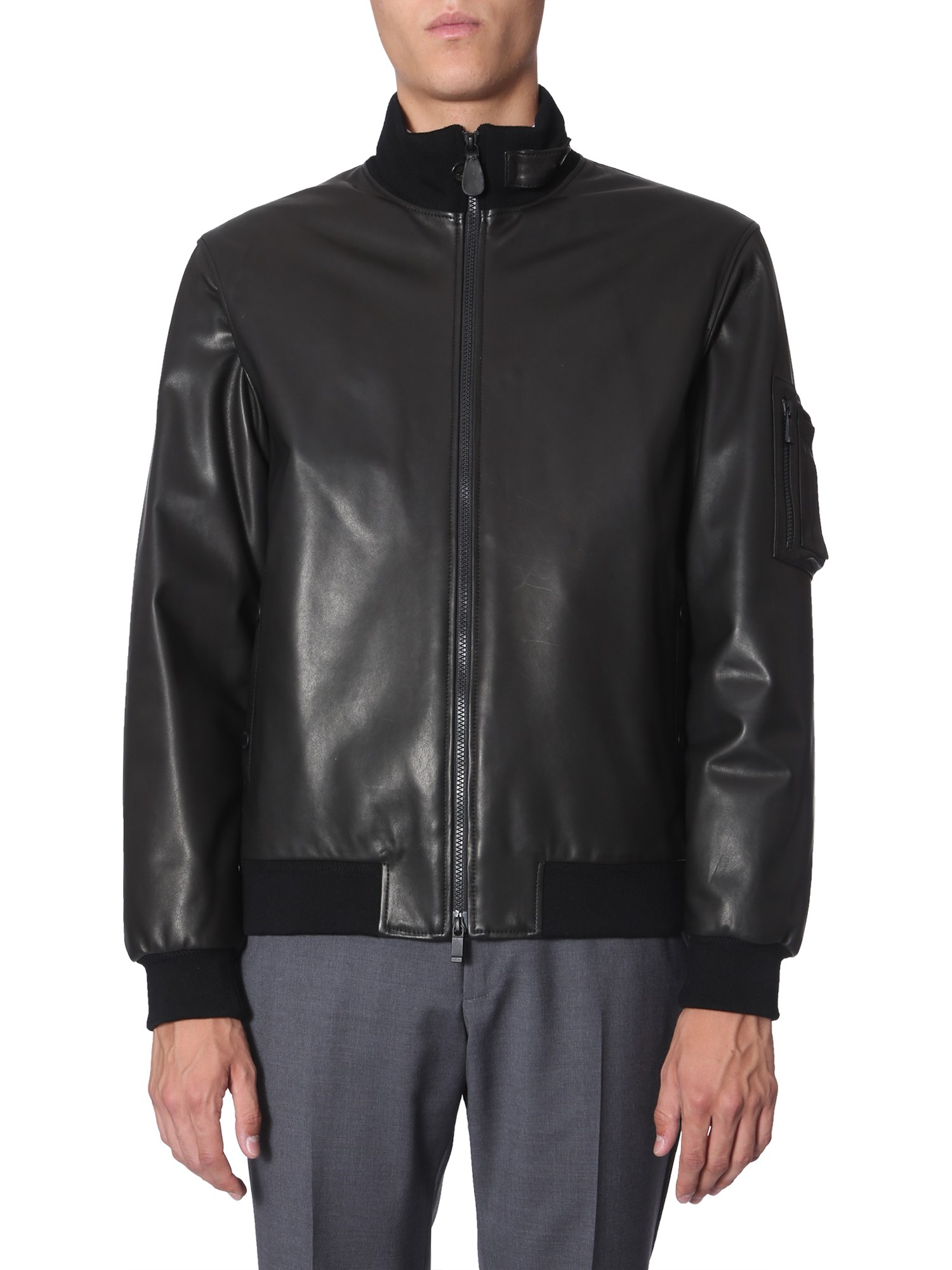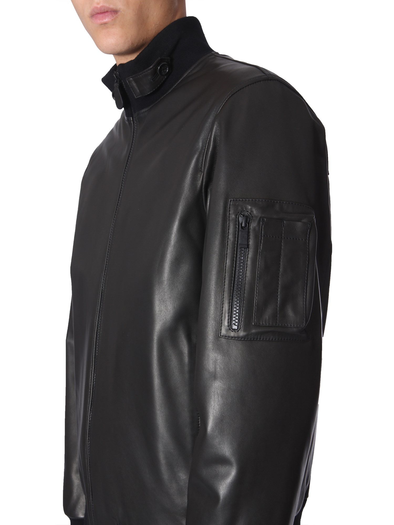 Redefine your wardrobe with this padded jacket from Z Zegna. The bomber is made from 100% lamb skin leather and padded with a polyester filling. This combination not only makes it durable but also ensures warmth to protect you from cold weathers. To enhance your look, this jacket is adorned with an attractive pattern.
