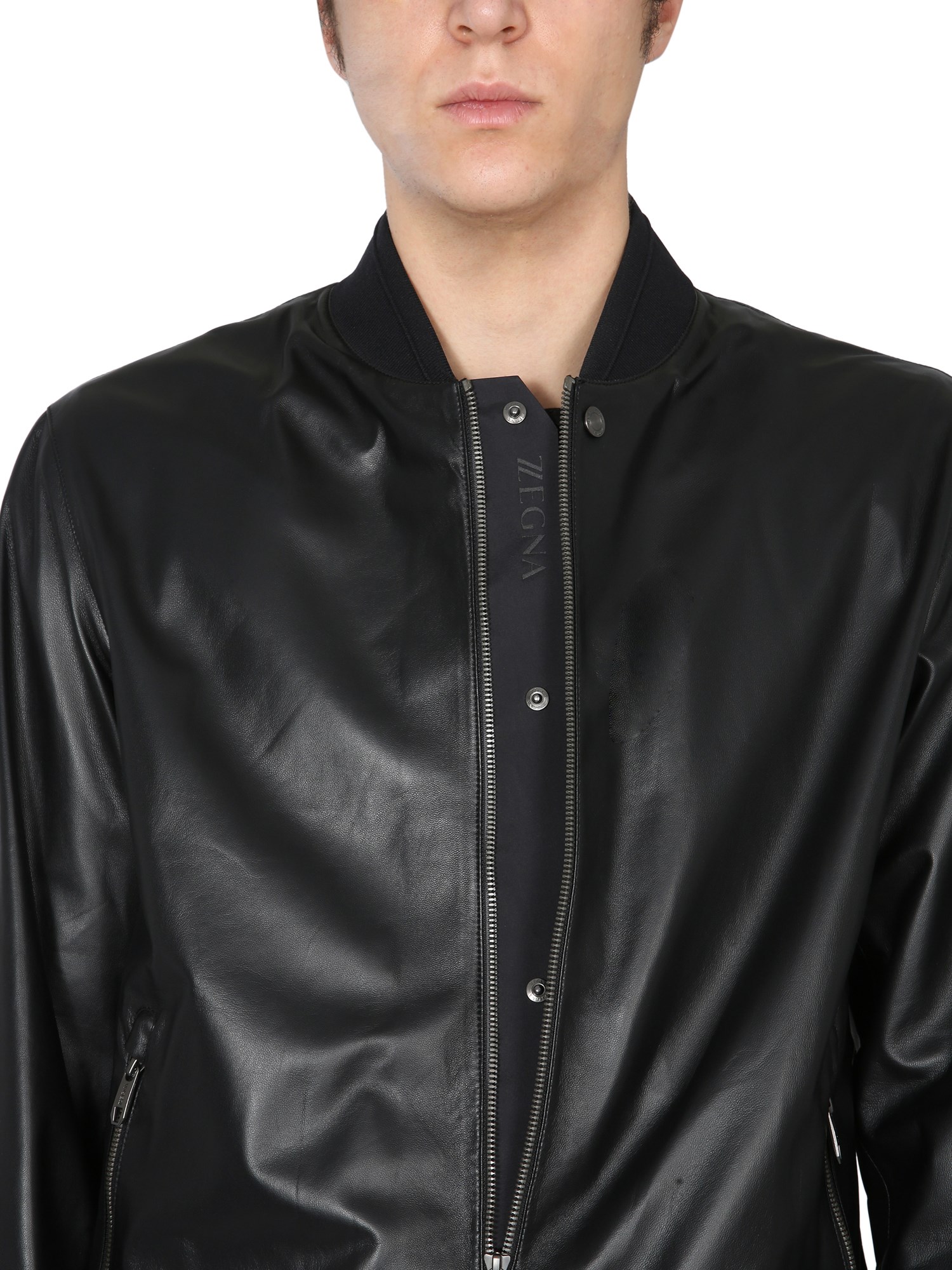 A premium, classic leather jacket by Z Zenga with a trendy, embroidered logo on the front. This premium, classic leather jacket is sure to be a great addition to any wardrobe. Made of high-quality lamb leather, this piece has two side pockets, an inner zip pocket, ribbed neck, cuffs, and bottom. With a stylish, embroidered logo on the front, this jacket is sure to get plenty of compliments.