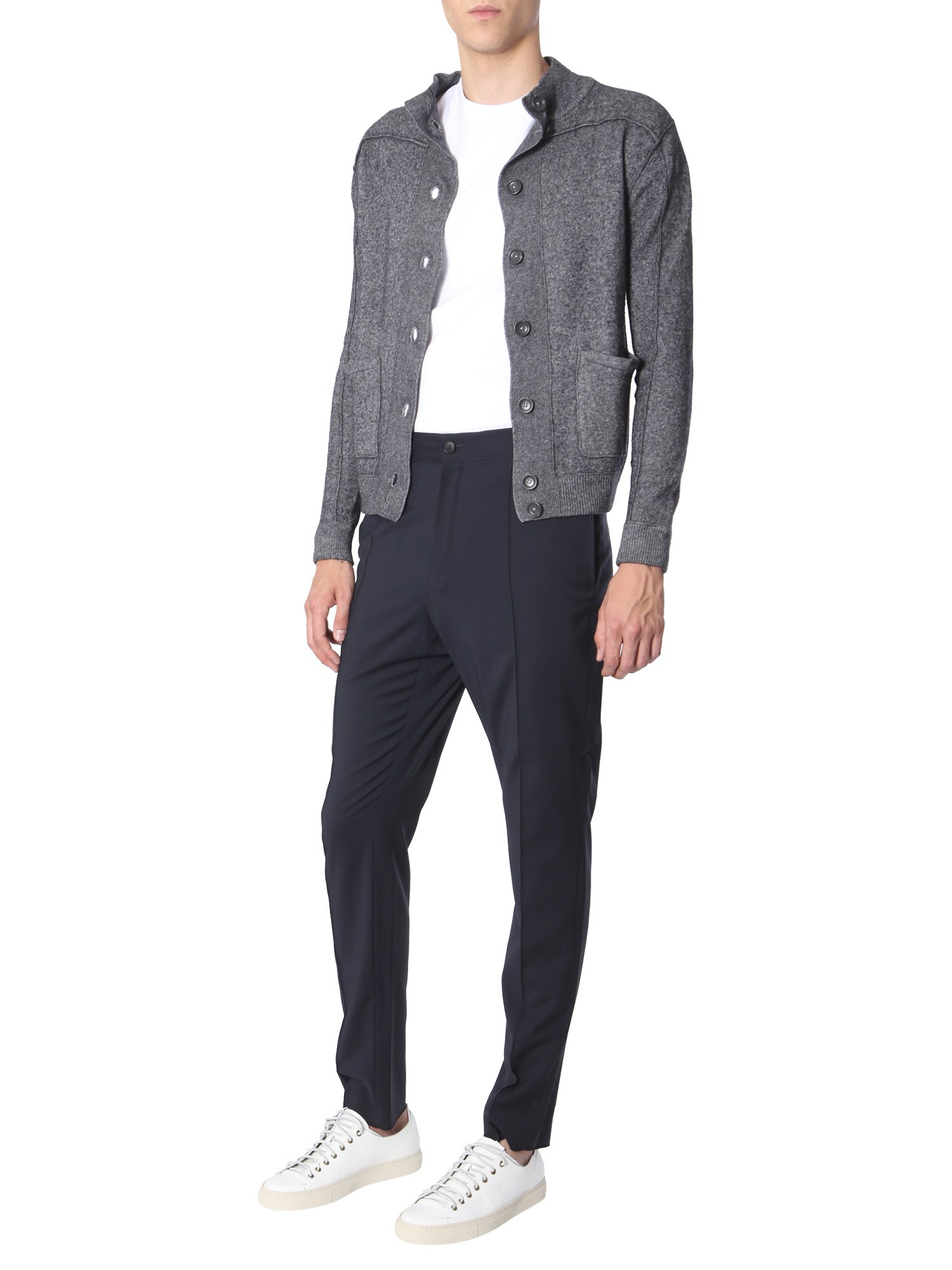 - COLLO ALTO- CHIUSURA FRONTALE CON BOTTONI- DUE TASCHE LATERALI- 35% VISCOSA, 30% LANA, 25% ELASTAN, 10% CASHMERE- IL MODELLO È ALTO 190 CM E INDOSSA LA TAGLIA L