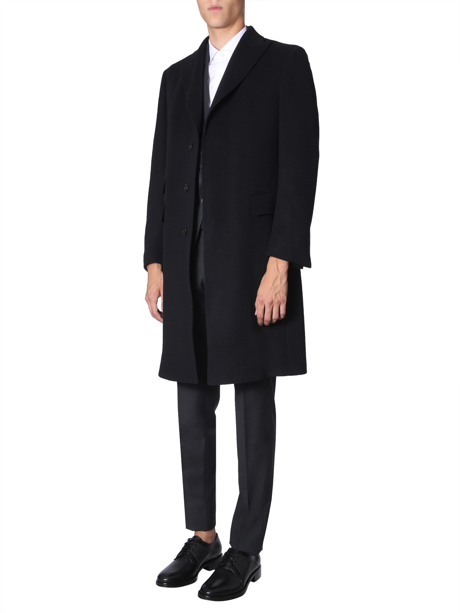 Head out for dinner on a winter night in the coat from Z Zegna. This coat is made of 100% wool to keep you warm and cosy throughout the time. It has three side and two inner pockets to securely keep the essentials. There are four buttons for closure that give you a tight and comfortable fit.