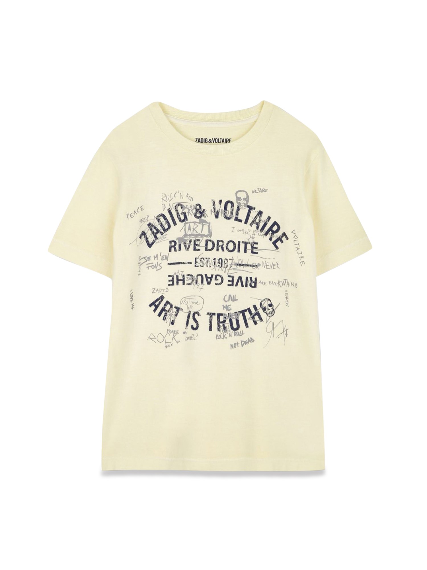 Elevate your casual wardrobe with the Zadig & Voltaire T-shirt, a perfect blend of comfort and chic style. Crafted from premium, soft cotton, this tee features a relaxed fit that flatters every body type while ensuring all-day comfort. The signature graphic print adds a touch of edgy sophistication, making it a versatile piece that pairs effortlessly with jeans or skirts. Embrace effortless style and make a statement with this must-have addition to your collection.