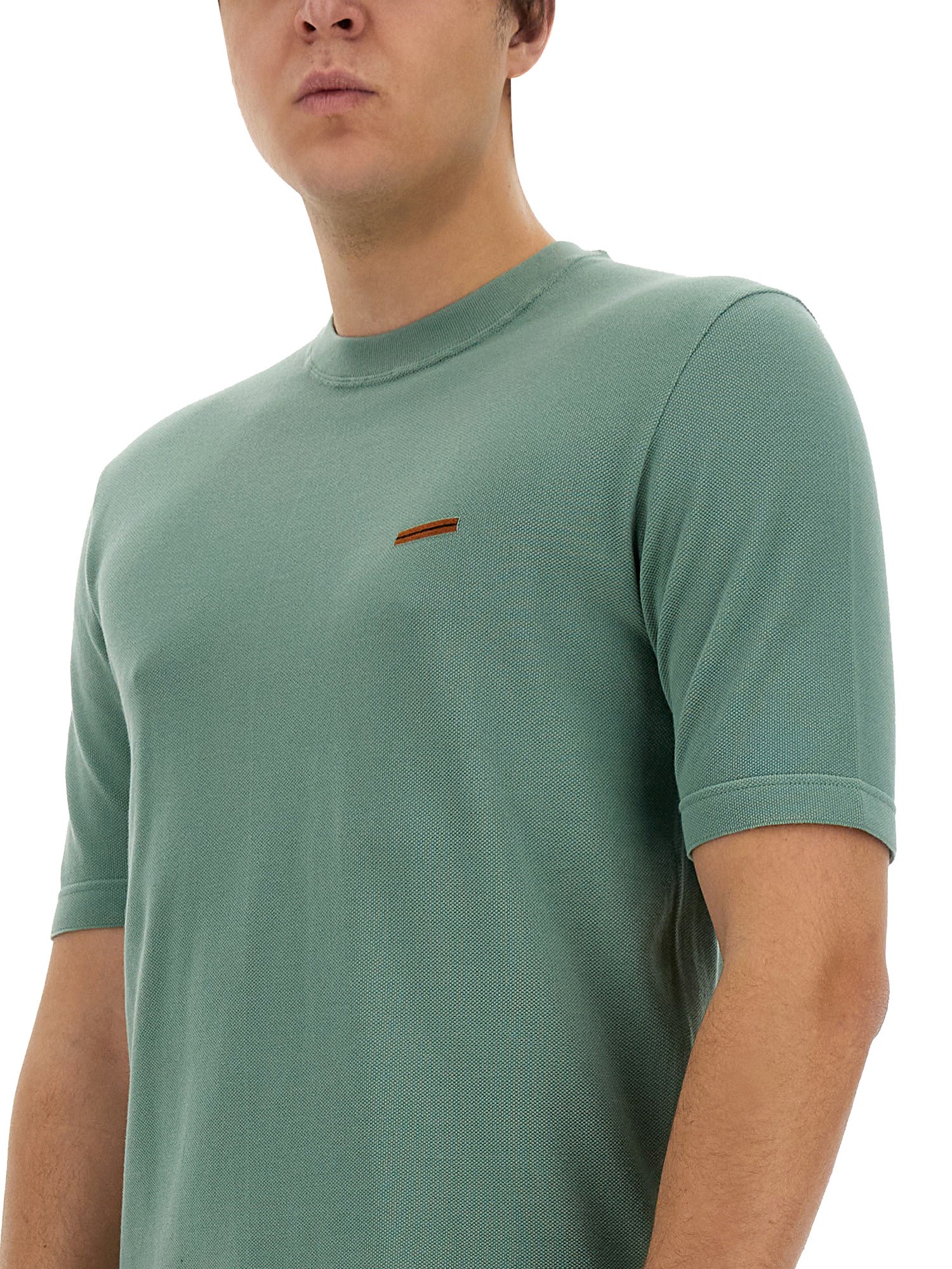 This green cotton T-shirt from Zegna features a sleek design with the brand's logo prominently displayed. Made from high-quality cotton, this T-shirt is both comfortable and stylish, making it a versatile addition to any wardrobe. Perfect for casual outings or layering under a jacket, this T-shirt is a must-have for those who appreciate quality and luxury in their clothing choices.