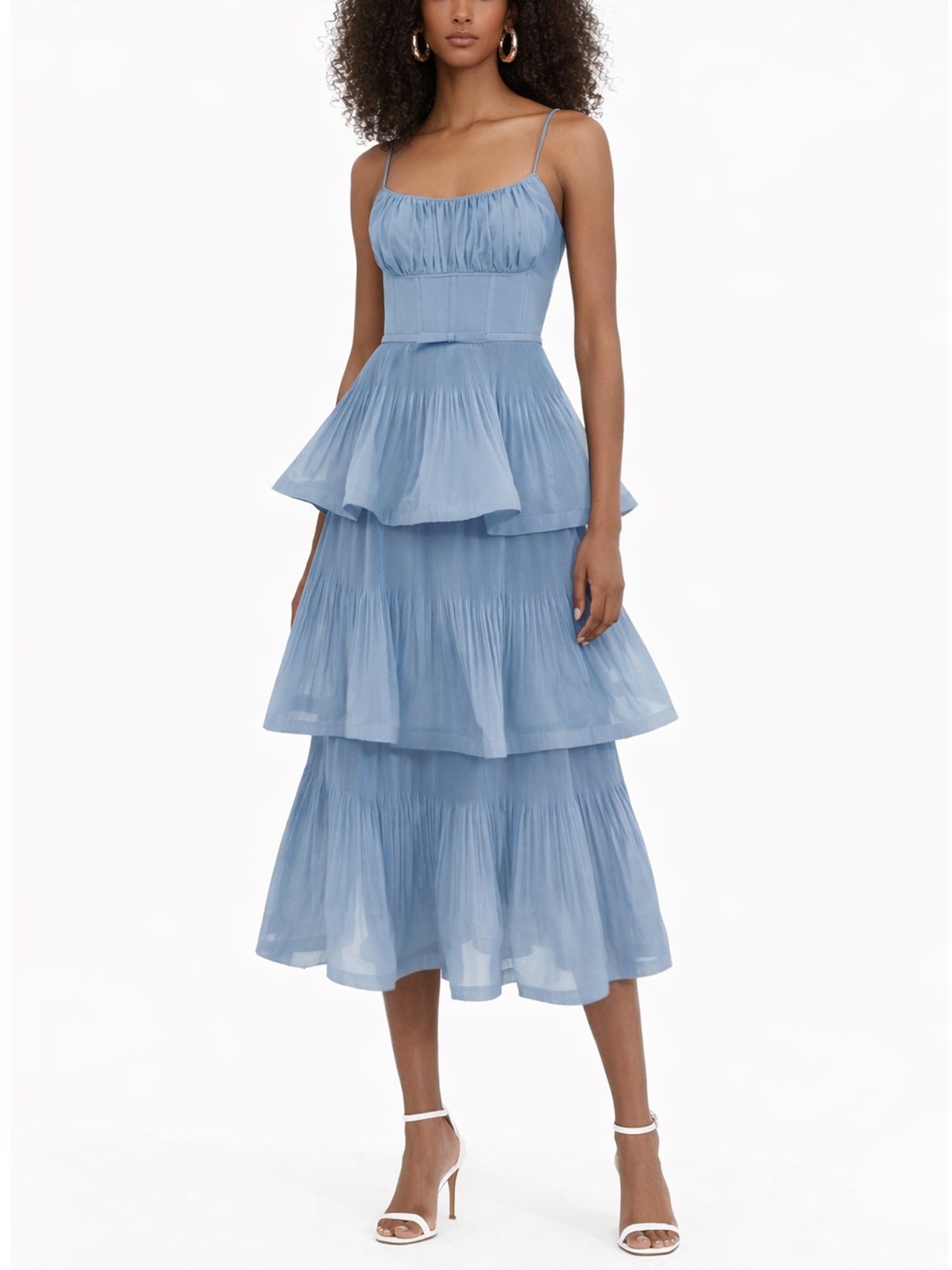 PLEATED RUFFLE MIDI DRESS