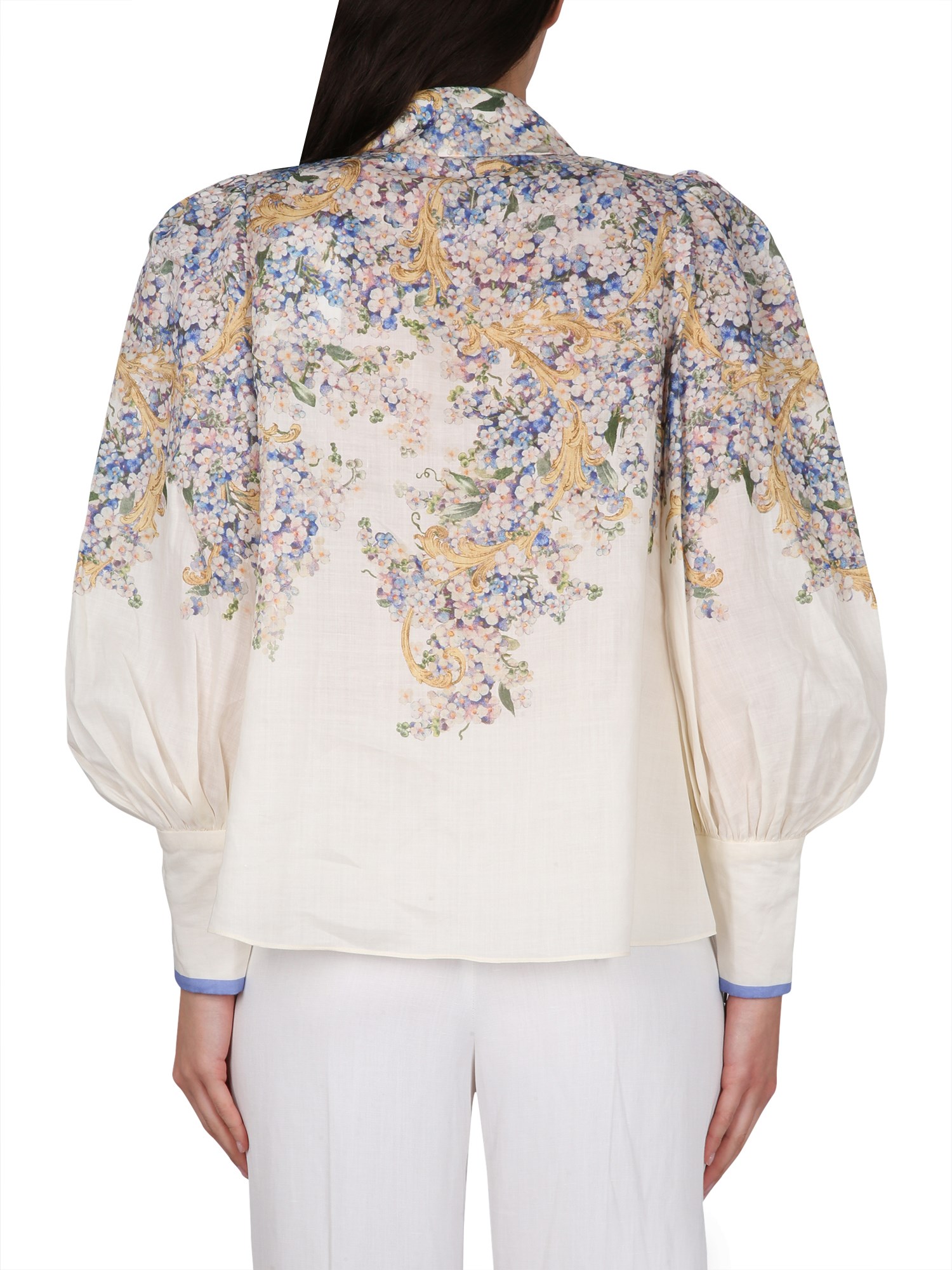- ROUND NECK- FRONT BUTTON CLOSURE- FLORAL PRINT- 100% RAMIE'- THE MODEL IS 180 CM TALL AND WEARS SIZE 2