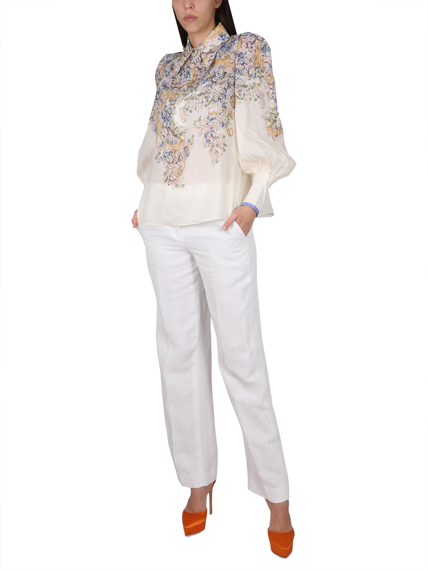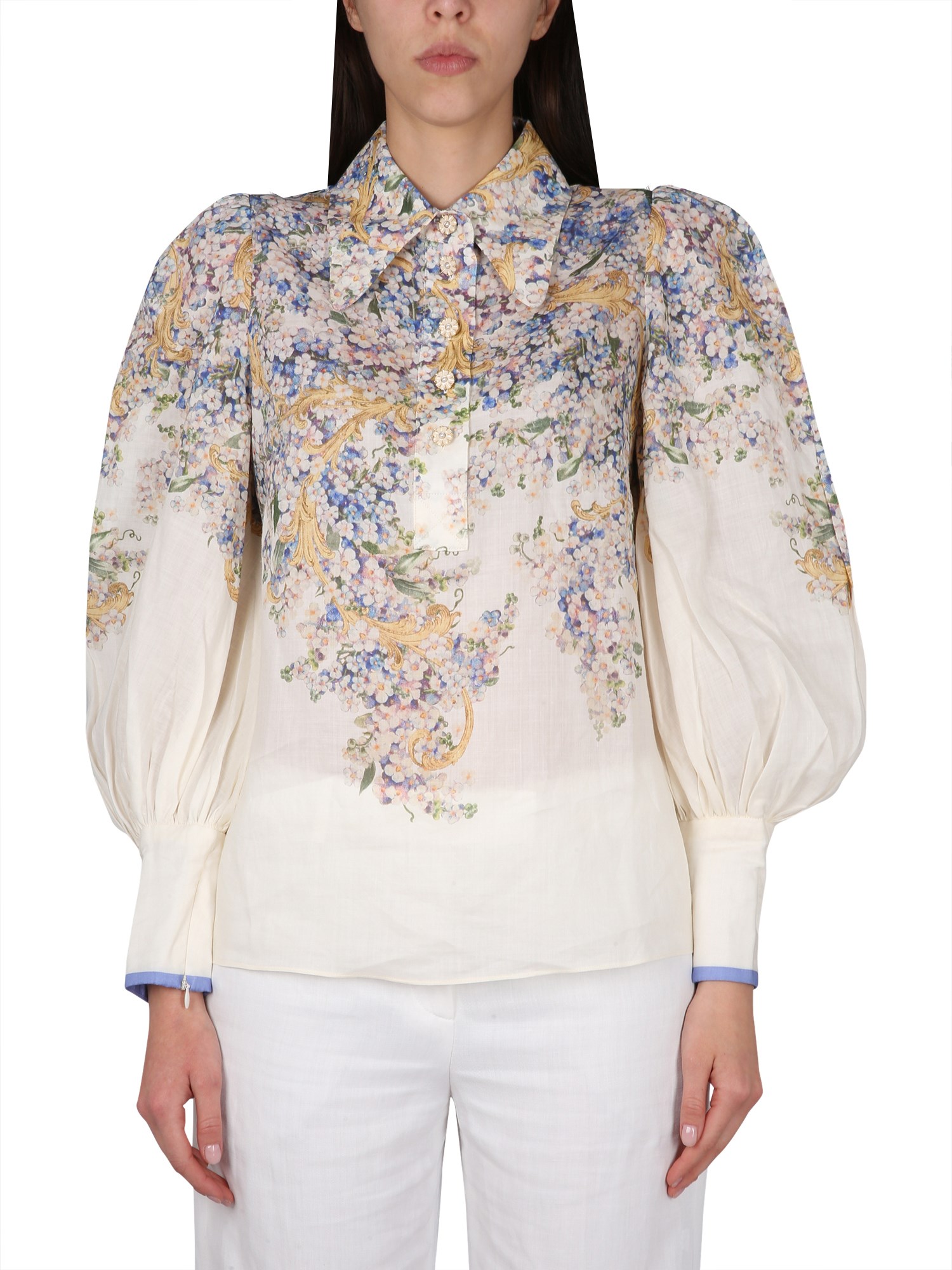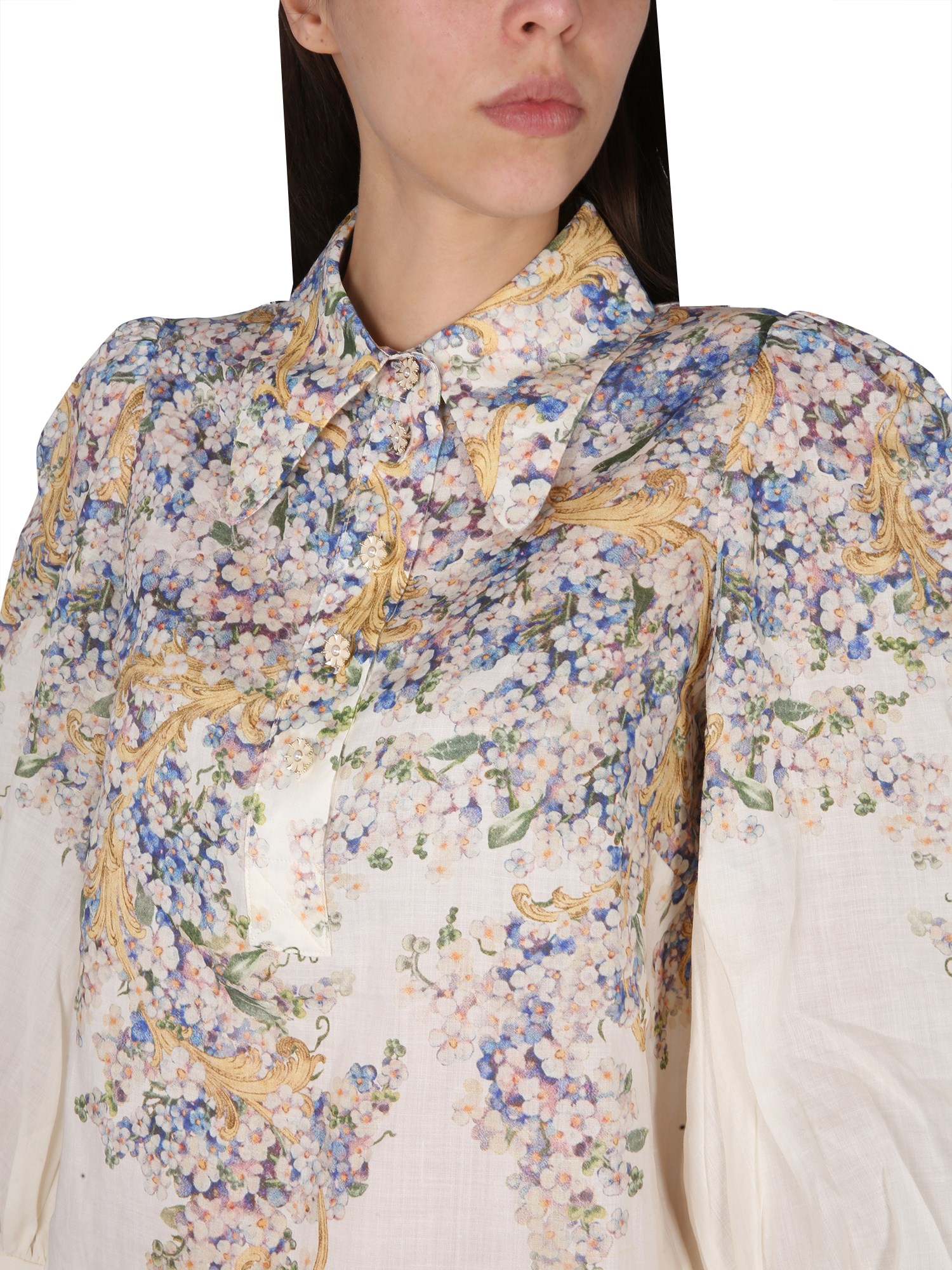 - ROUND NECK- FRONT BUTTON CLOSURE- FLORAL PRINT- 100% RAMIE'- THE MODEL IS 180 CM TALL AND WEARS SIZE 2