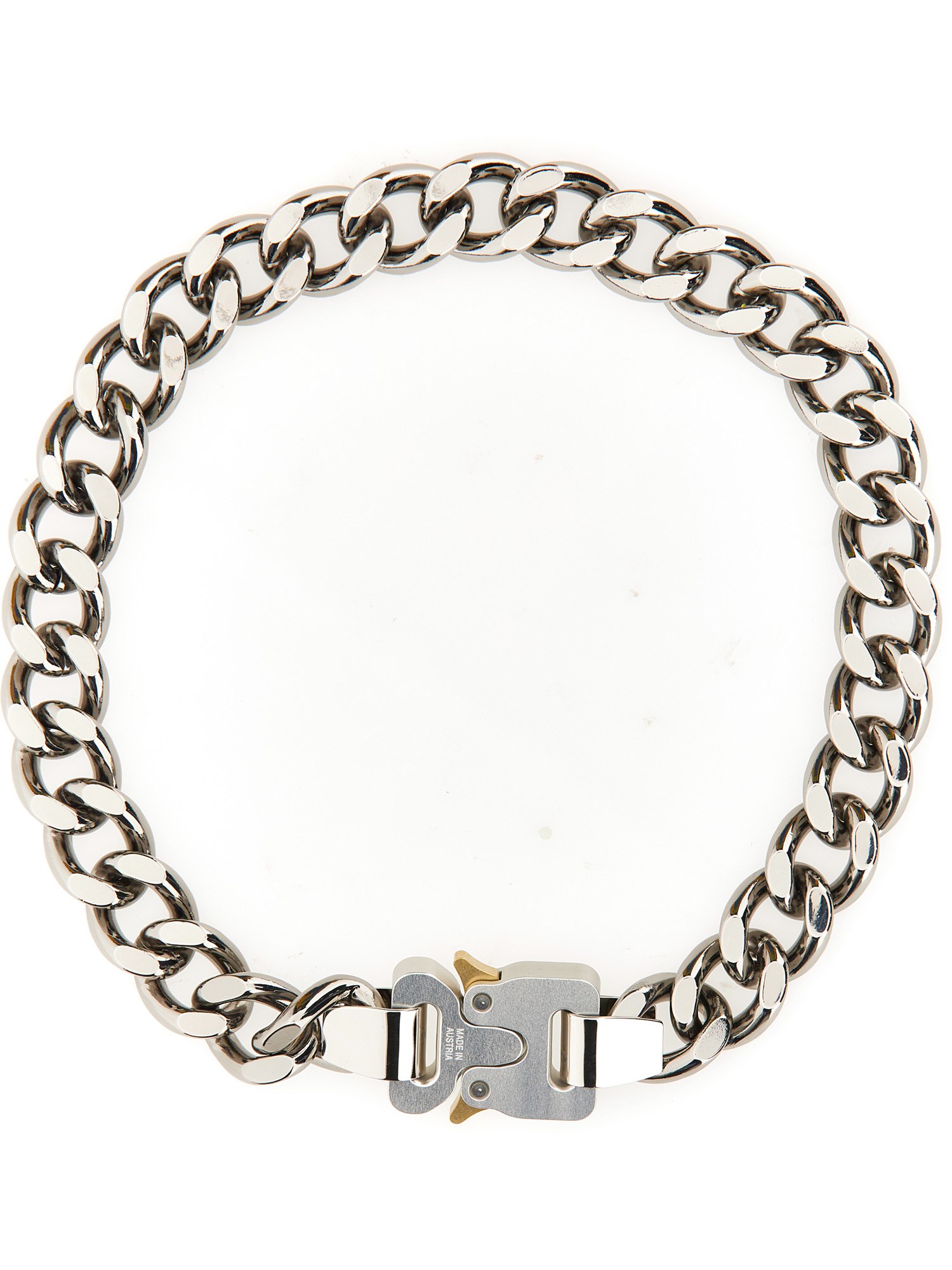 Questa collana a catena in acciaio inossidabile di 1017 ALYX 9SM è sia alla moda che resistente. È resistente grazie all'acciaio inossidabile di alta qualità. È alla moda perché ha una catena in acciaio inossidabile resistente, completata da una chiusura a fibbia unica ed elegante.