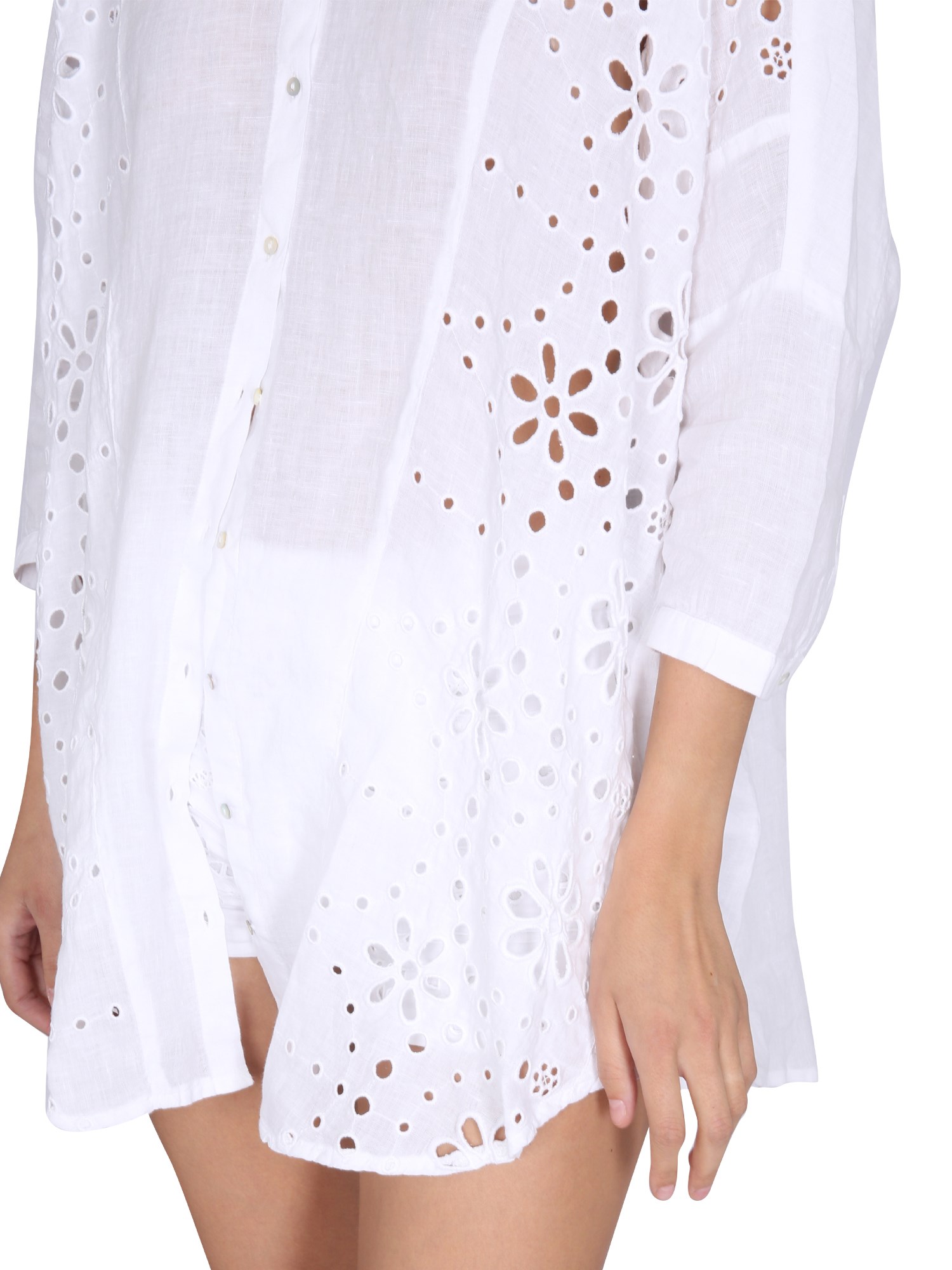 La camicia in lino con ricamo floreale di 120% Lino è una bella ed elegante camicia button-down con colletto classico. Il tessuto è leggero e arioso, perfetto per la primavera e l'estate. Questa camicia di lino è l'aggiunta perfetta a qualsiasi armadio. Con una vestibilità sartoriale, questa camicia di lino è il capo perfetto da indossare con una gonna e dei tacchi.