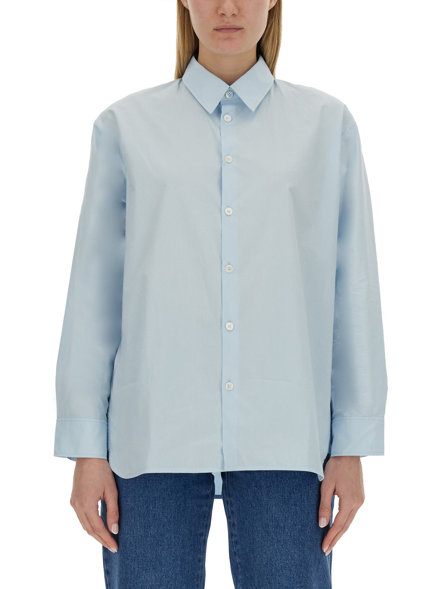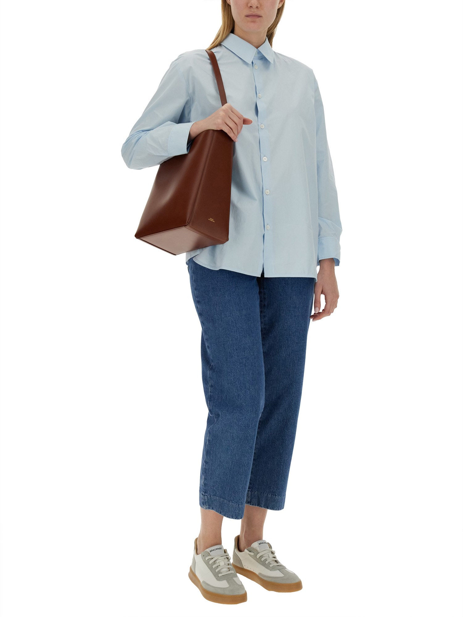 Questa camicia in cotone blu con colletto classico di A.P.C. presenta un design senza tempo con chiusura frontale a bottoni, che la rende un capo versatile ed essenziale per ogni guardaroba. Realizzata in cotone di alta qualità, questa camicia offre comfort e stile, perfetta sia per le occasioni casual che per quelle formali. Il colletto classico aggiunge un tocco di raffinatezza, mentre il colore blu aggiunge un tocco di colore a qualsiasi outfit. Indossata con i jeans per un look casual o abbinata ai pantaloni per un insieme più raffinato, questa camicia è un must-have per ogni individuo alla moda.