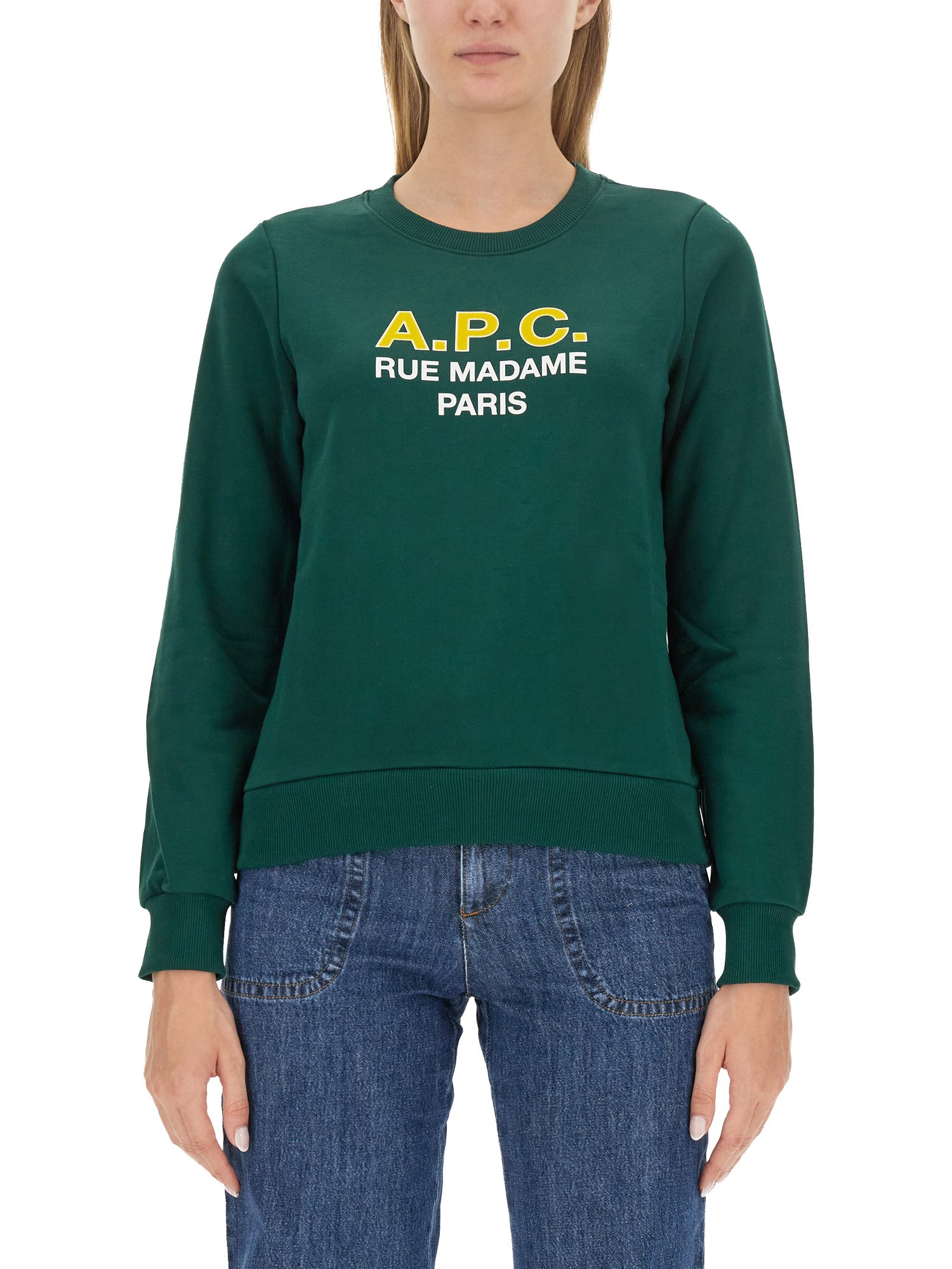 Questa felpa verde a girocollo di A.P.C. è perfetta per la stagione. Con una stampa del logo sul davanti, questa felpa è perfetta sia per le occasioni casual che per quelle eleganti. È un capo comodo, traspirante e resistente che diventerà un punto fermo nel vostro armadio. È una felpa fresca e casual che può essere indossata con un paio di jeans e stivali o con dei leggings e una gonna lunga.