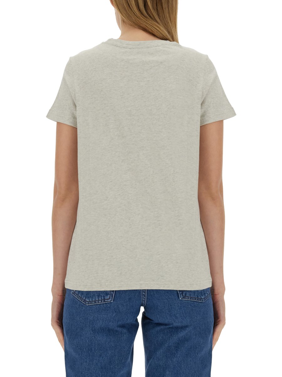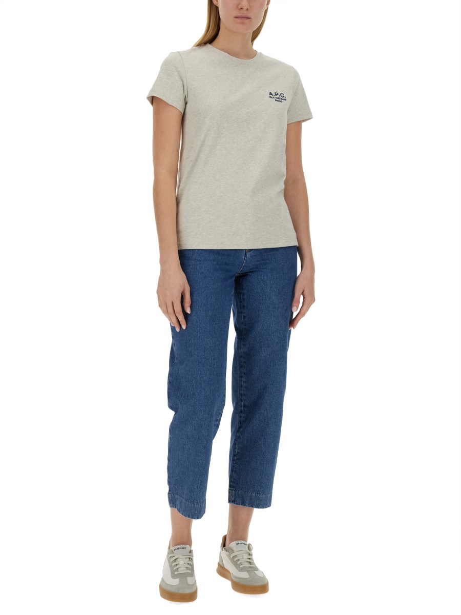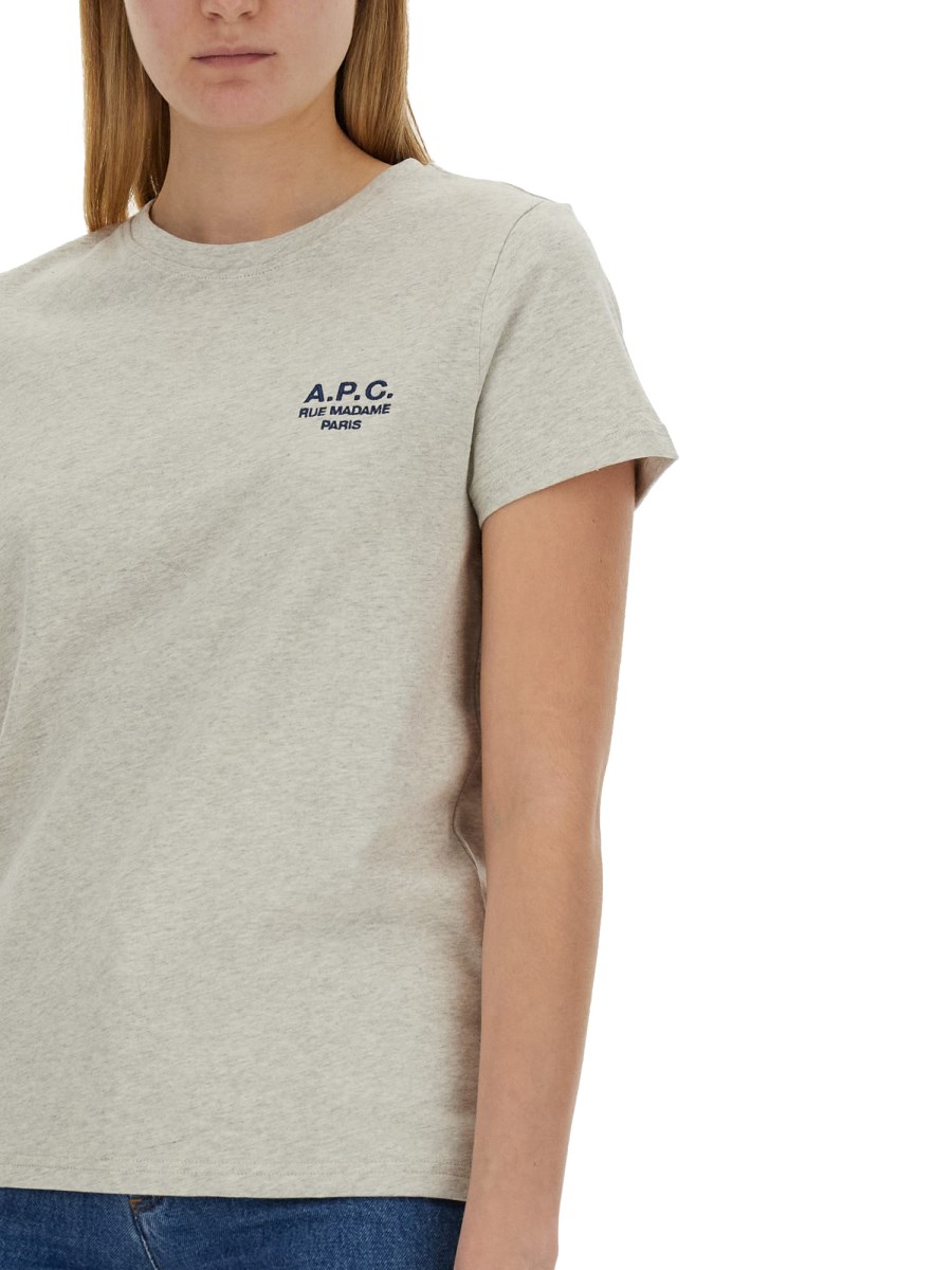 Questa T-shirt girocollo in cotone con ricamo frontale del logo di A.P.C. presenta un taglio elegante e moderno, ideale da indossare sotto giacche, maglioni e altro. Il tessuto morbido è sicuramente confortevole per essere indossato tutto il giorno. Ha una vestibilità regolare e uno stile snellente che sta benissimo abbinato a jeans, leggings o persino a una gonna.