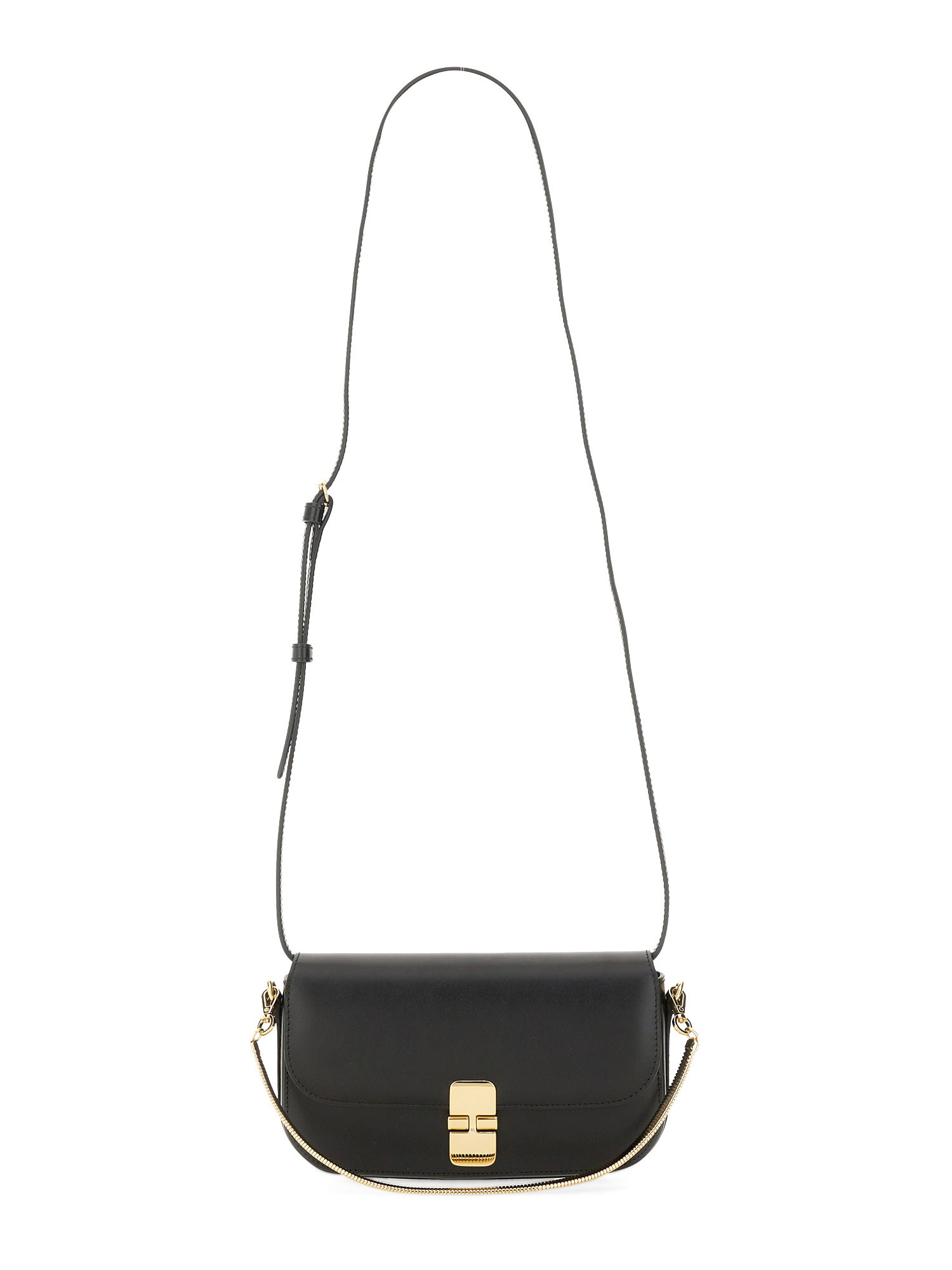 Questa borsa a tracolla nera di A.P.C. presenta un design elegante con chiusura a moschettone, che la rende elegante e sicura. La tracolla regolabile consente di indossarla comodamente, mentre le dimensioni compatte la rendono perfetta per trasportare gli oggetti essenziali in viaggio. L'estetica minimalista e la manifattura di alta qualità fanno di questa borsa un accessorio versatile e senza tempo, adatto a qualsiasi outfit o occasione.