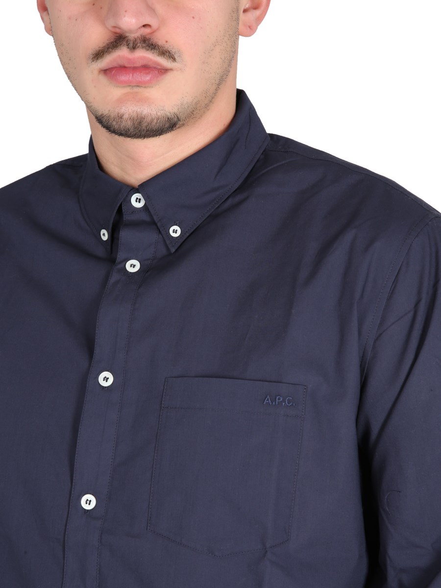 Una camicia classica per ogni occasione, questa camicia di A.P.C. presenta un colletto con chiusura frontale a bottoni e una vestibilità regolare. Realizzata in popeline di cotone, questa camicia è una scelta versatile per l'abbigliamento quotidiano. Se volete vestirvi bene per una giornata informale in ufficio, una giornata informale al parco o una giornata di relax, questa camicia è perfetta per voi.