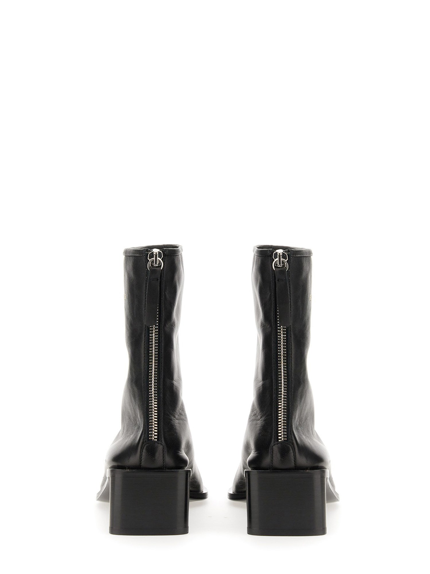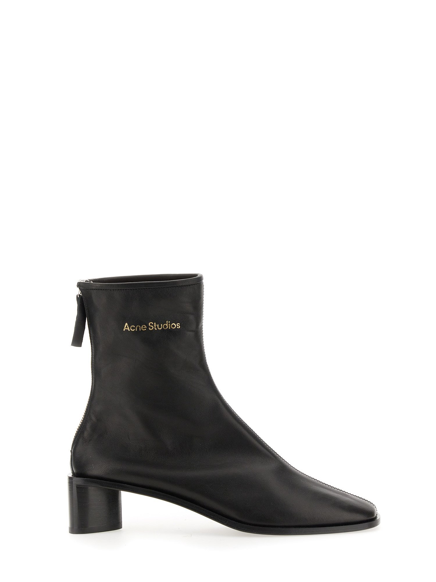 Gli stivaletti Acne Studios neri/neri sono realizzati in pelle, con logo Acne Studios e tacco a blocco. Completano una chiusura a cerniera sul retro e una punta a forma di quadrato. Tomaia in pelle, fodera traspirante e sottopiede imbottito per un comfort che dura tutto il giorno.