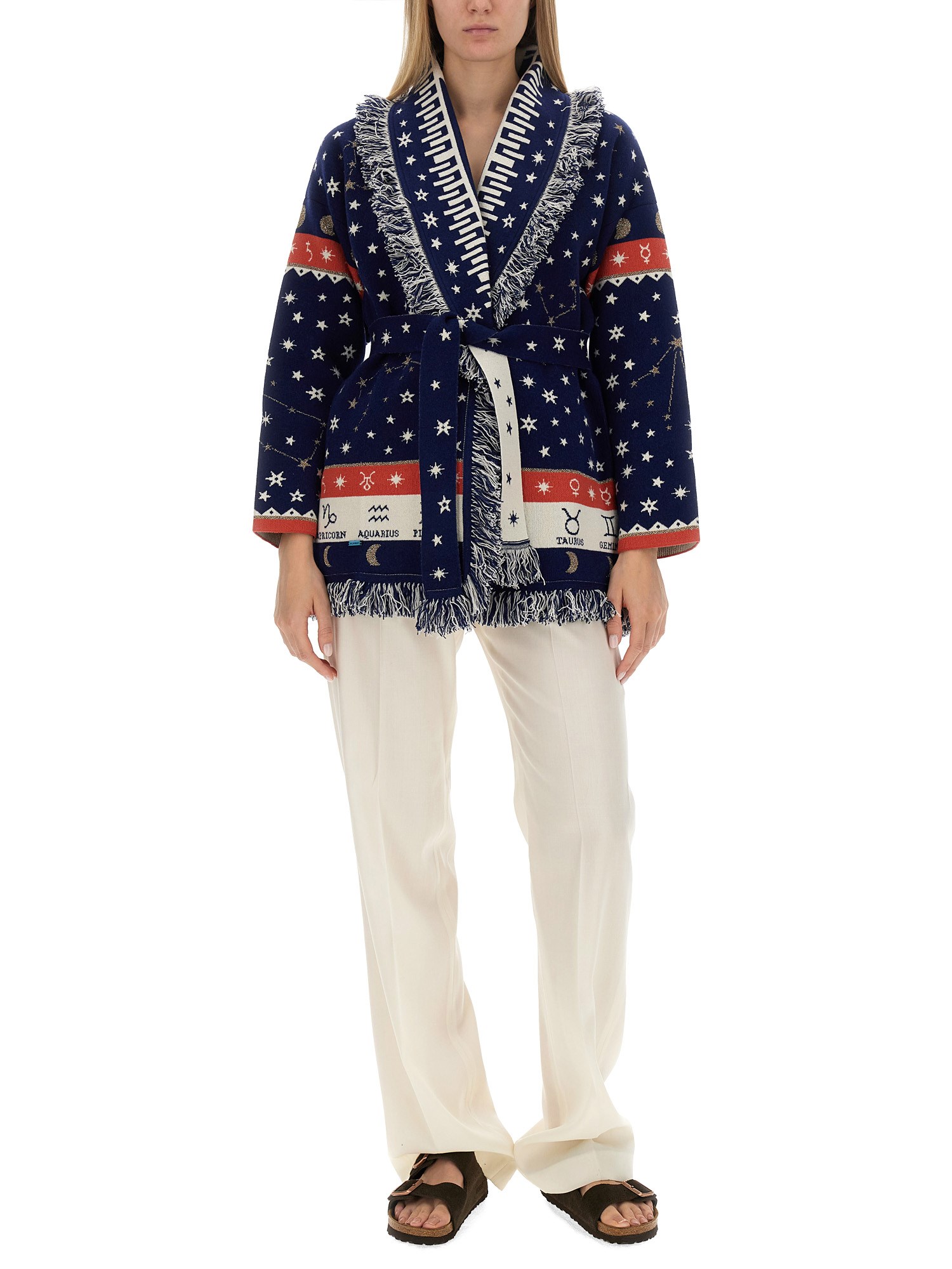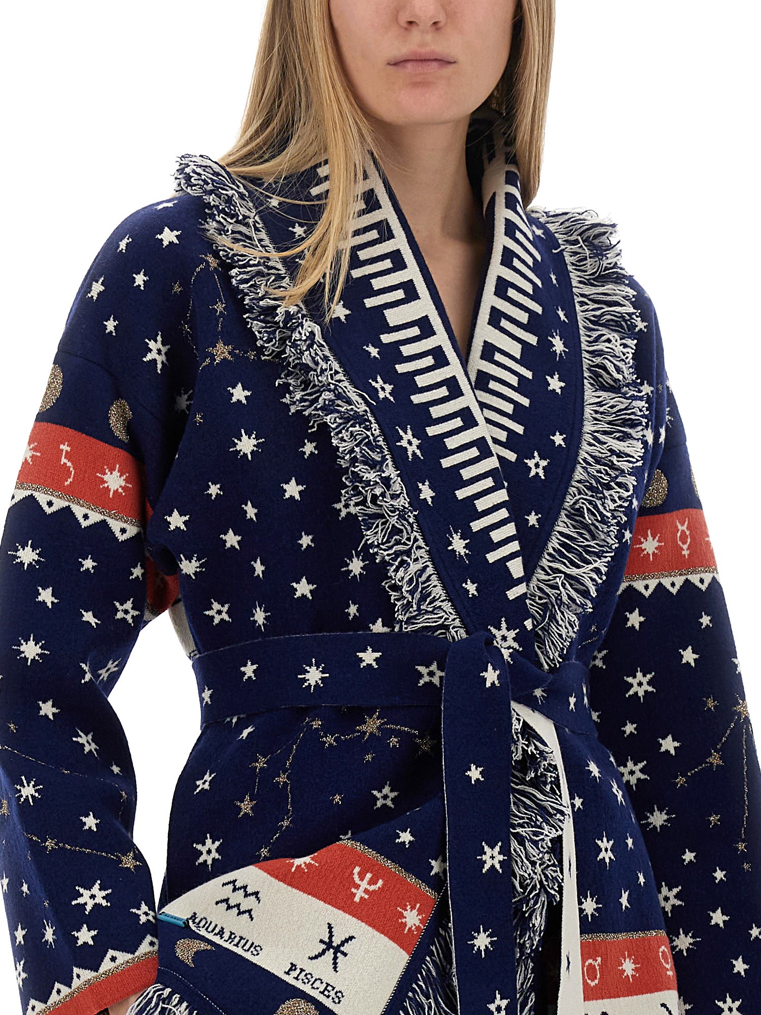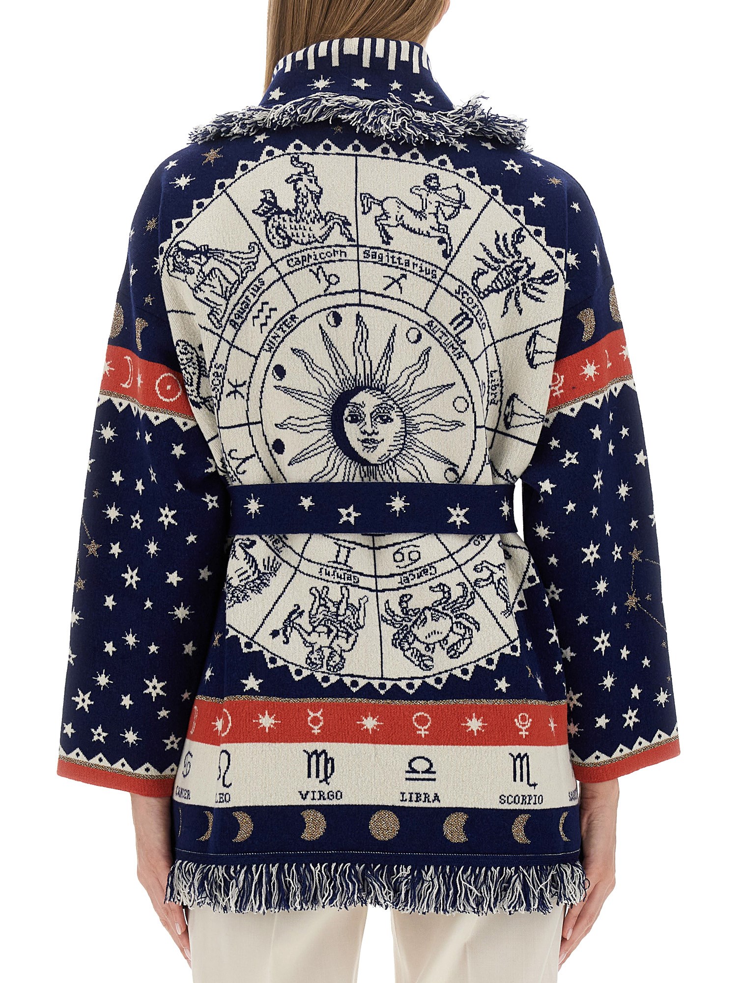 Aggiungete un tocco di fascino celeste al vostro guardaroba con il cardigan in lana Astrology wheel di Alanui. Progettato per accendere la vostra immaginazione, questo accogliente cardigan mette in mostra la delicata bellezza dei segni zodiacali in un accattivante motivo a ruota astrologica. Realizzato in lana pregiata, offre calore e stile in ogni occasione.