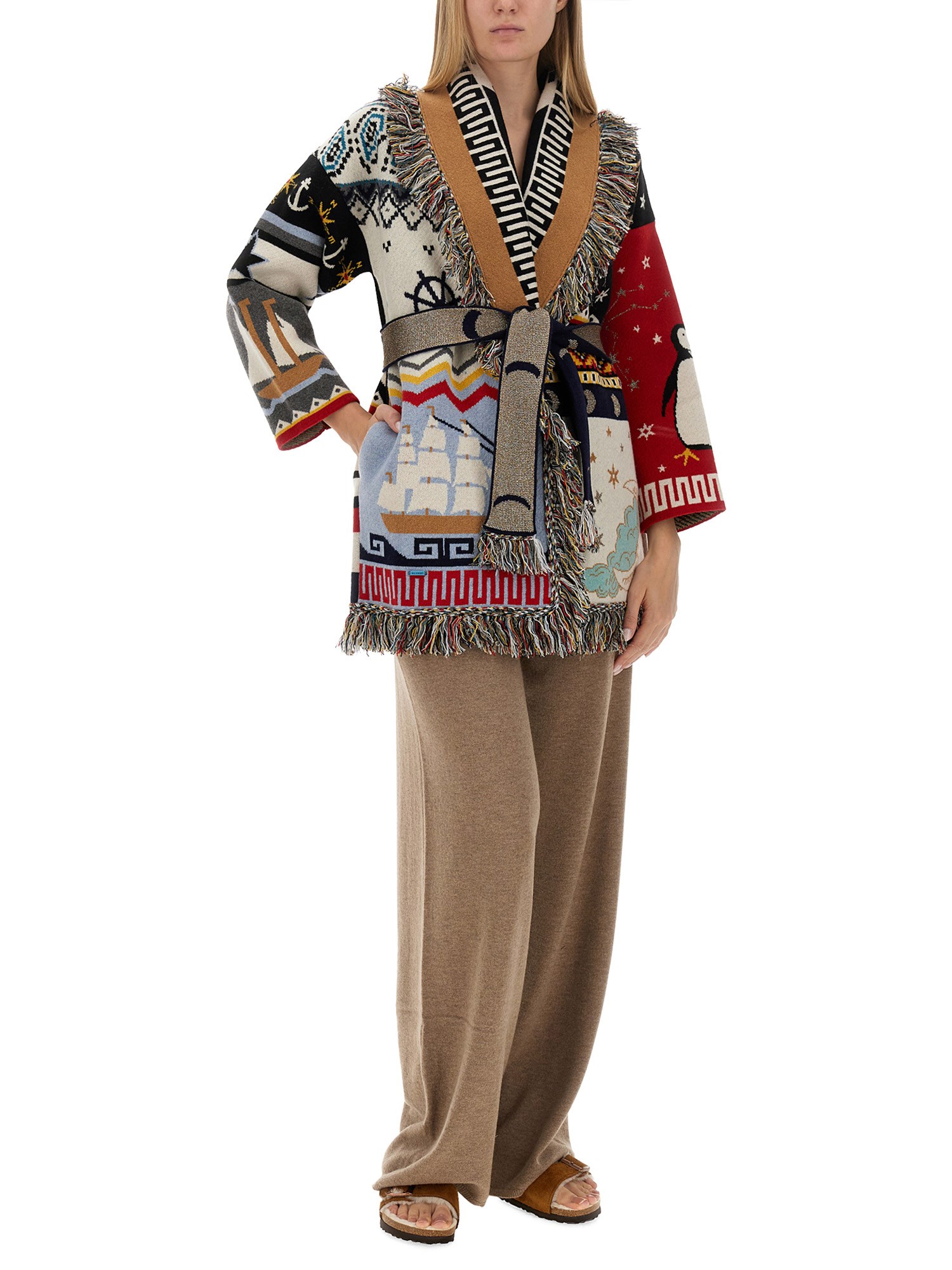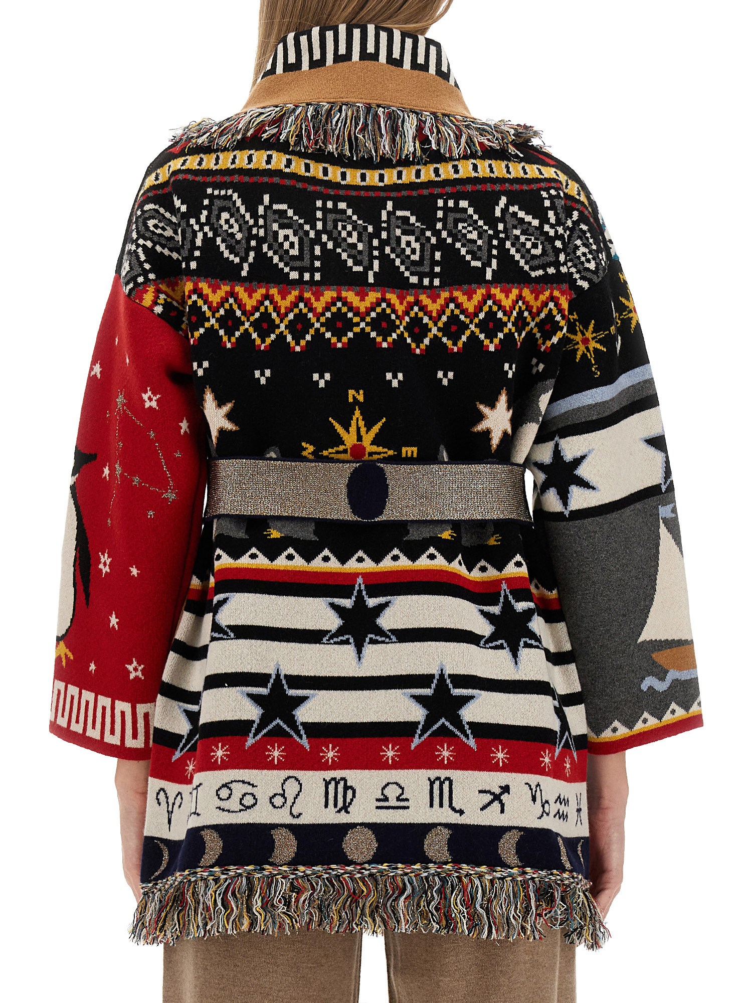 Sveliamo il cardigan Patchwork Mysteries di Alanui - una vera meraviglia per gli appassionati di moda! Abbracciate la bellezza dell'artigianato con questo splendido cardigan che fonde elegantemente vari tessuti e motivi in un accattivante arazzo di stile. Realizzato a mano con amore, ogni cardigan di questa collezione racconta una storia unica. La sua struttura leggera ma calda offre un comfort impeccabile, perfetto per le fresche serate primaverili o le fredde giornate autunnali.