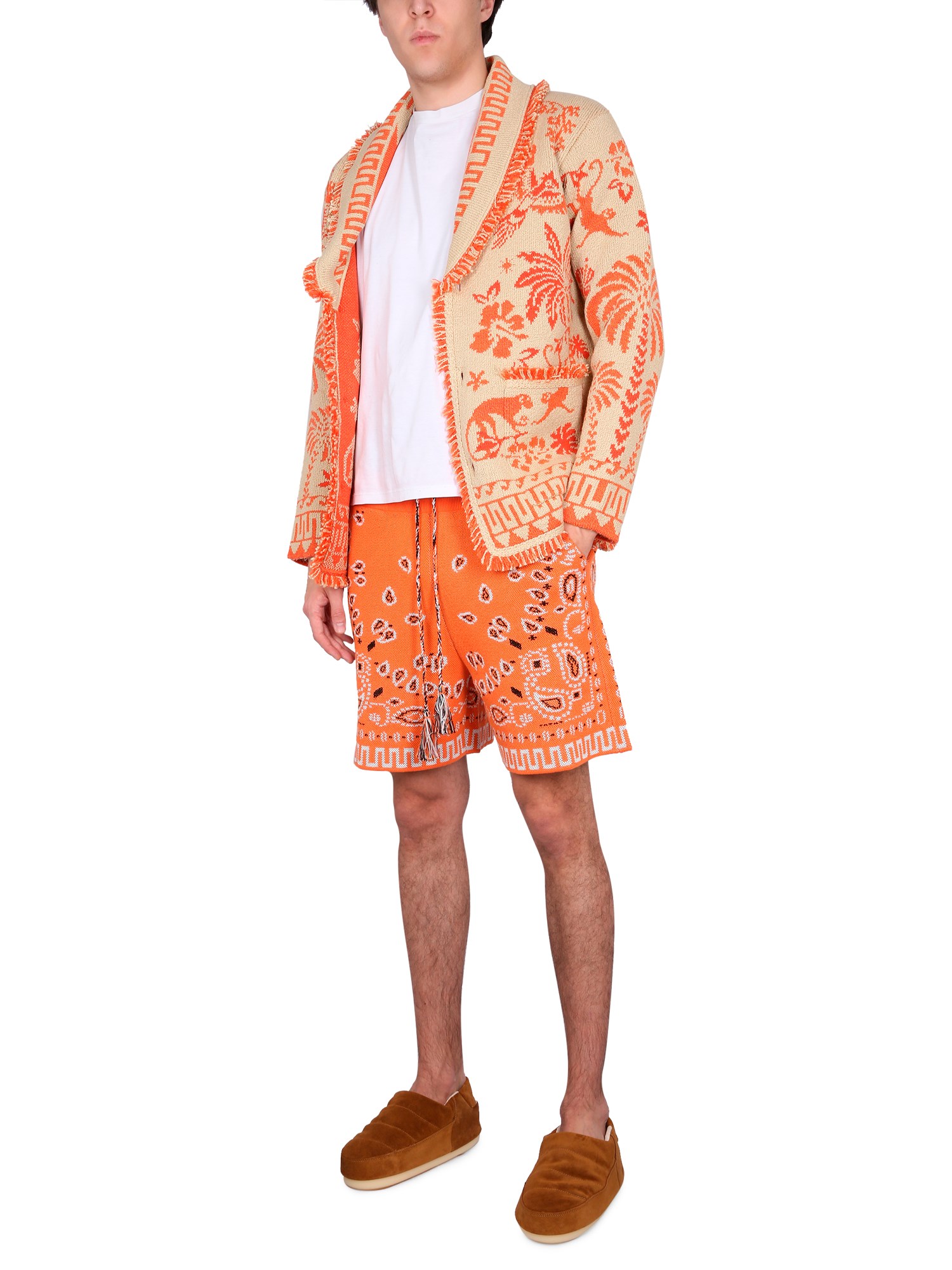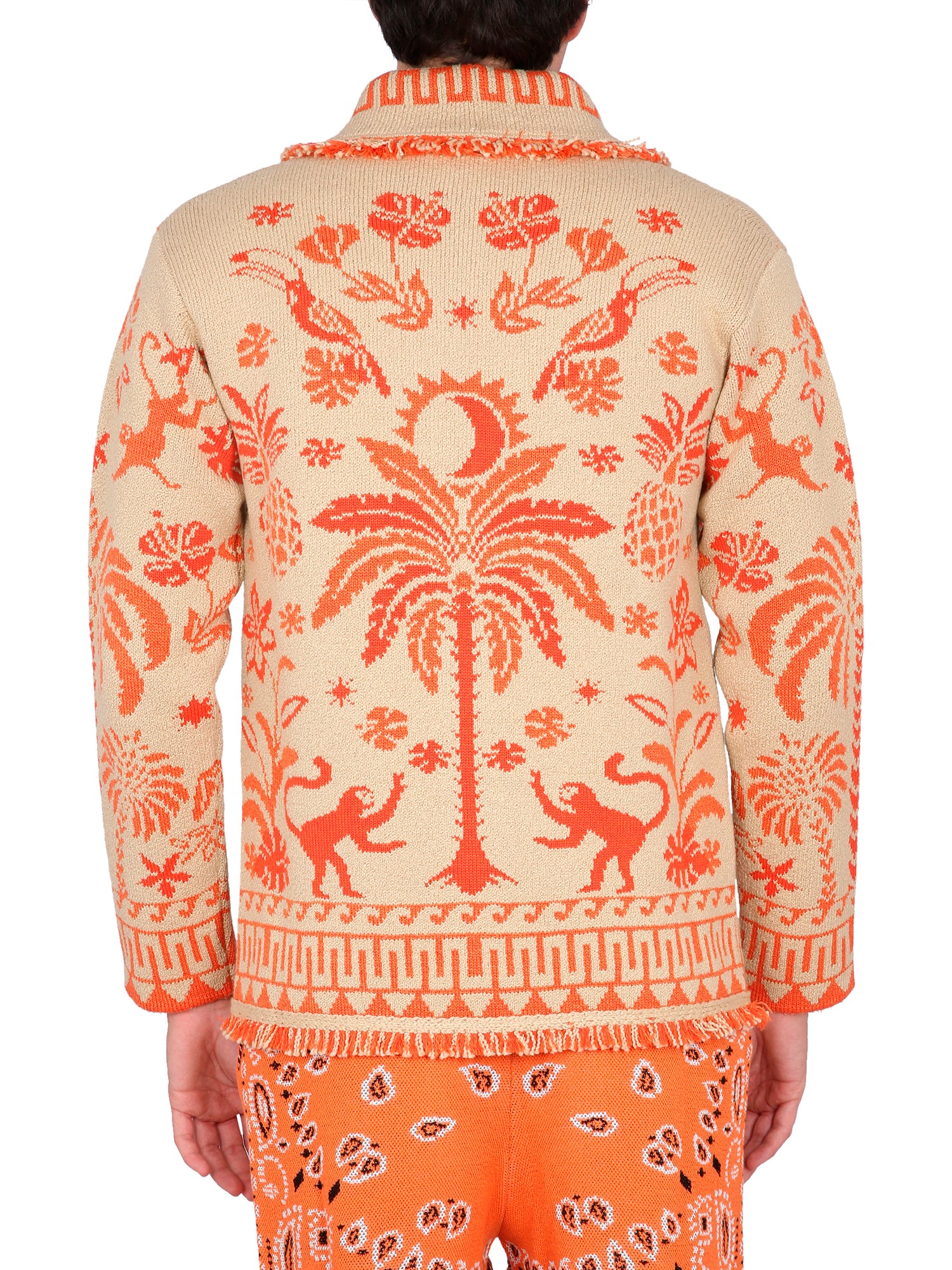 Firma dello stile Alanui e compagno di viaggio per eccellenza, il cardigan Explosion of Nature Foulard è il capo che vi accompagnerà in innumerevoli avventure. Abbinando l'originale vestibilità Icon a un nuovo motivo foulard ispirato alla natura, ogni cardigan pesa 1,45 kg, richiede più di nove ore per essere completato ed è meticolosamente realizzato in una miscela di filati con una maglia jacquard doppia.