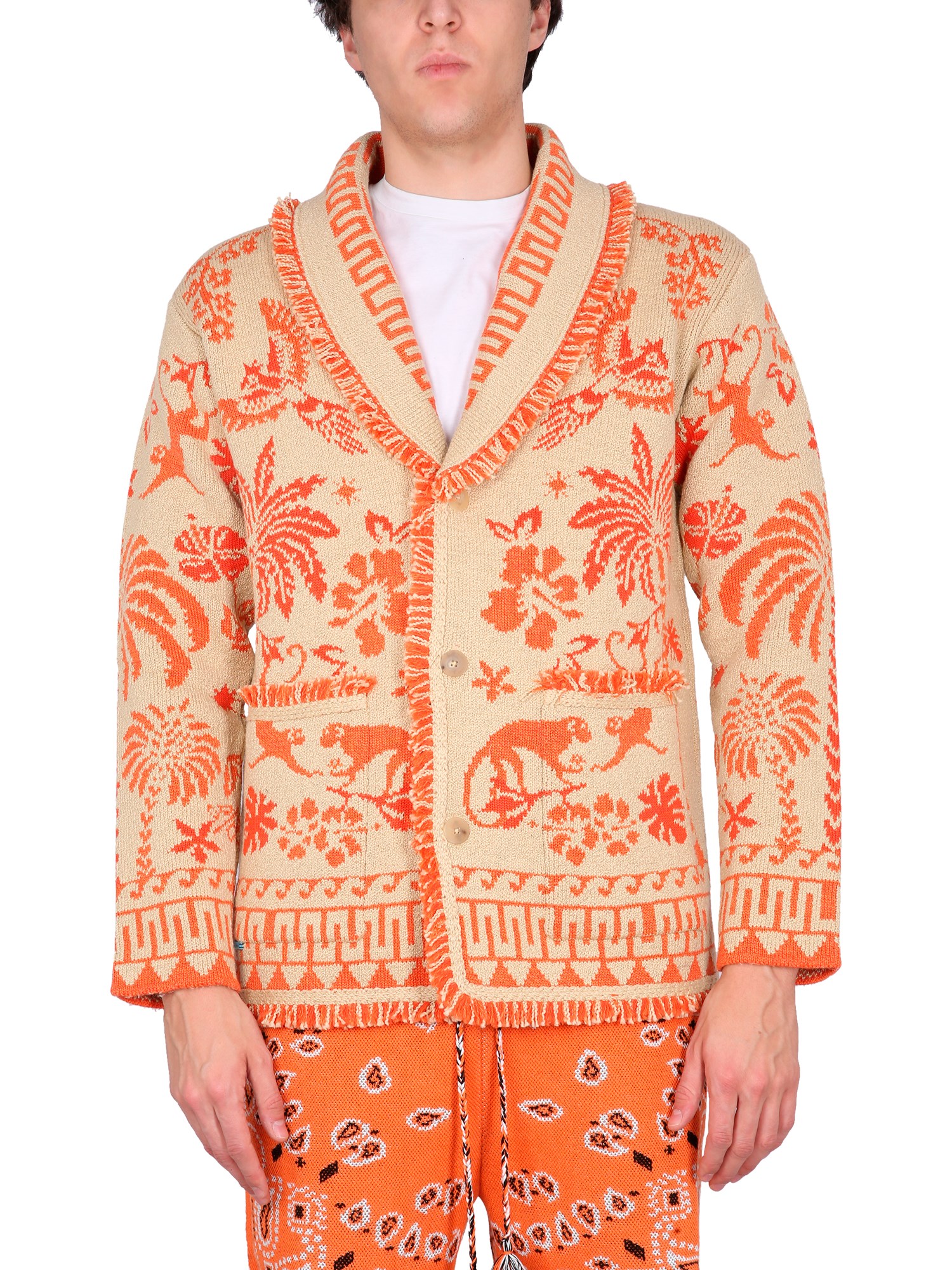 Questo splendido cardigan jacquard di Alanui vi terrà al caldo nelle giornate più fredde. Il morbido misto cotone e lana è accogliente e il collo a scialle vi terrà al caldo nelle notti più fredde. Questo cardigan è un must per le giornate fredde d'autunno o d'inverno. Presenta un collo a scialle con frange, chiusura frontale con bottoni e un tessuto jacquard in cotone e lana.