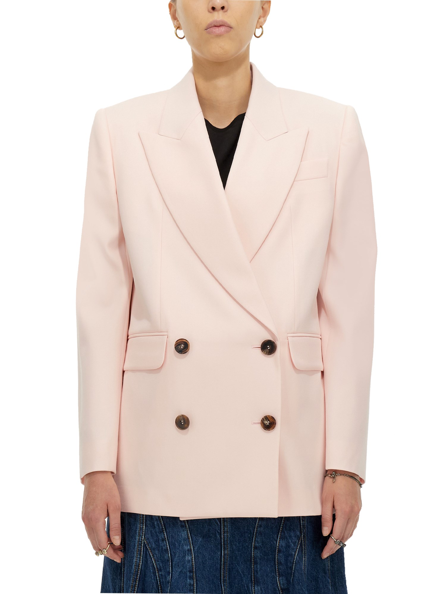 Questa giacca elegante e raffinata di Alexander McQueen vi piacerà. I revers a lancia sono un dettaglio classico e anche lo stile doppiopetto è classico. Il tessuto è in lana, spesso e morbido. La vestibilità boxy è lusinghiera e la lunghezza la rende facile da indossare su abiti o gonne.