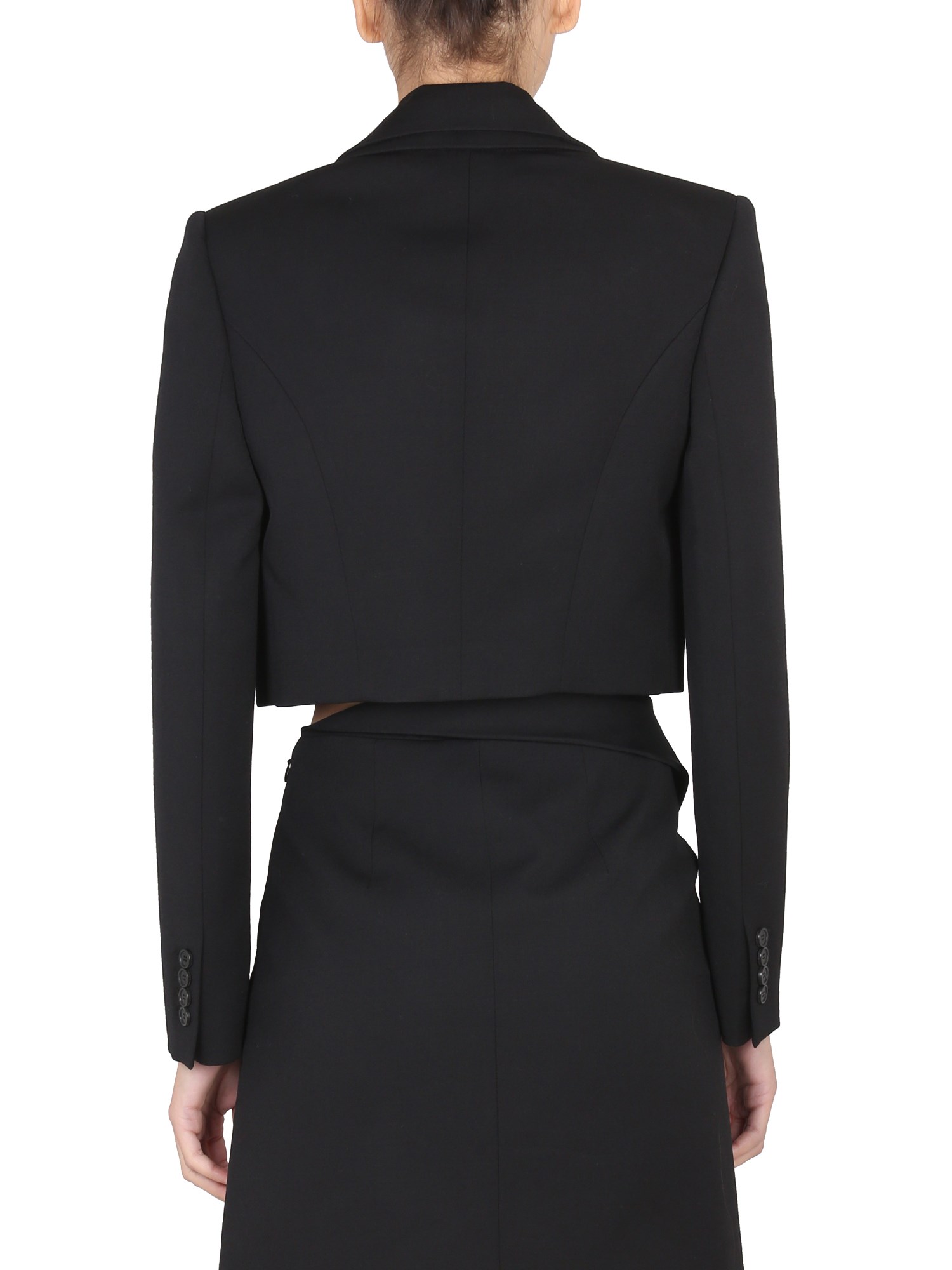 Questa giacca cropped in lana di Alexander McQueen presenta una chiusura a un bottone e dettagli cut-out. È un capo essenziale per la moda invernale. Il dettaglio del taglio è accattivante e la lunghezza ridotta è un'aggiunta perfetta a qualsiasi guardaroba per la stagione fredda. La giacca è realizzata in un tessuto di lana spesso e robusto, che la rende ideale per la stagione fredda.