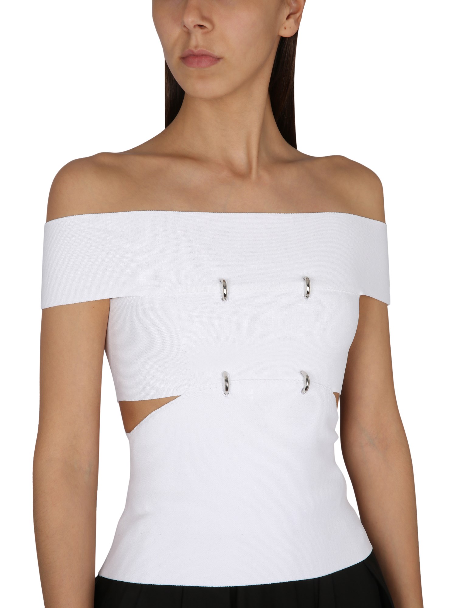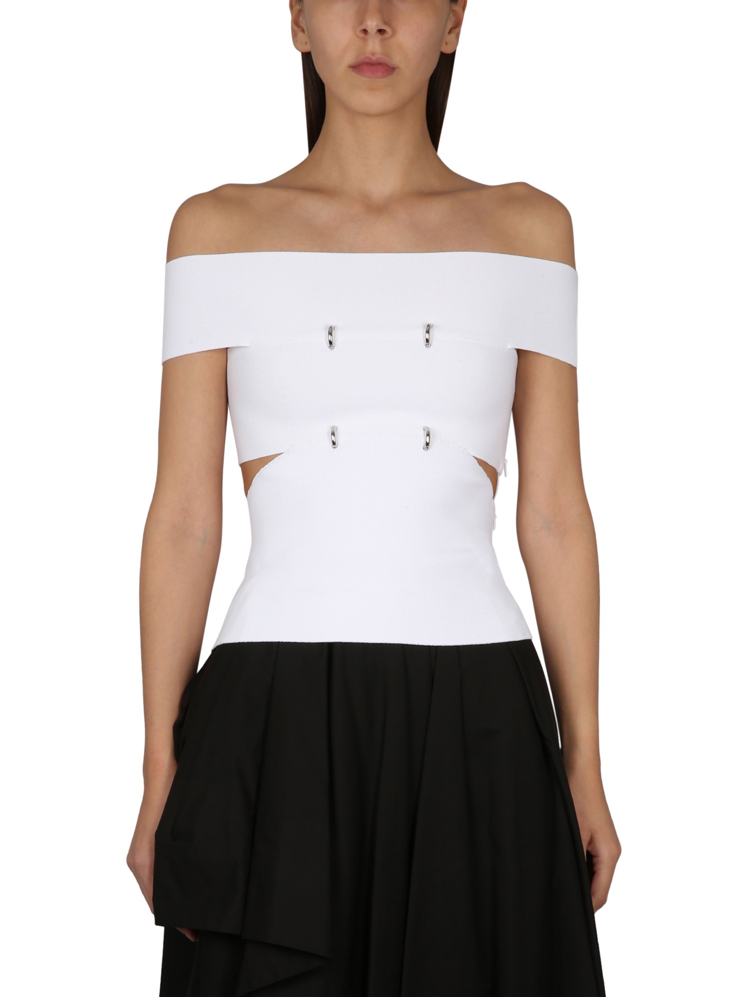 Il moderno top di Alexander McQueen ha una vestibilità slim e dettagli cut-out con tessuto a contrasto in viscosa e poliestere. Questa camicia alla moda è un must-have. È realizzata in viscosa e ha una vestibilità slim. Presenta un taglio corto e un colletto ampio. Questa camicia ha la giusta quantità di tagli per dare un tocco di classe.