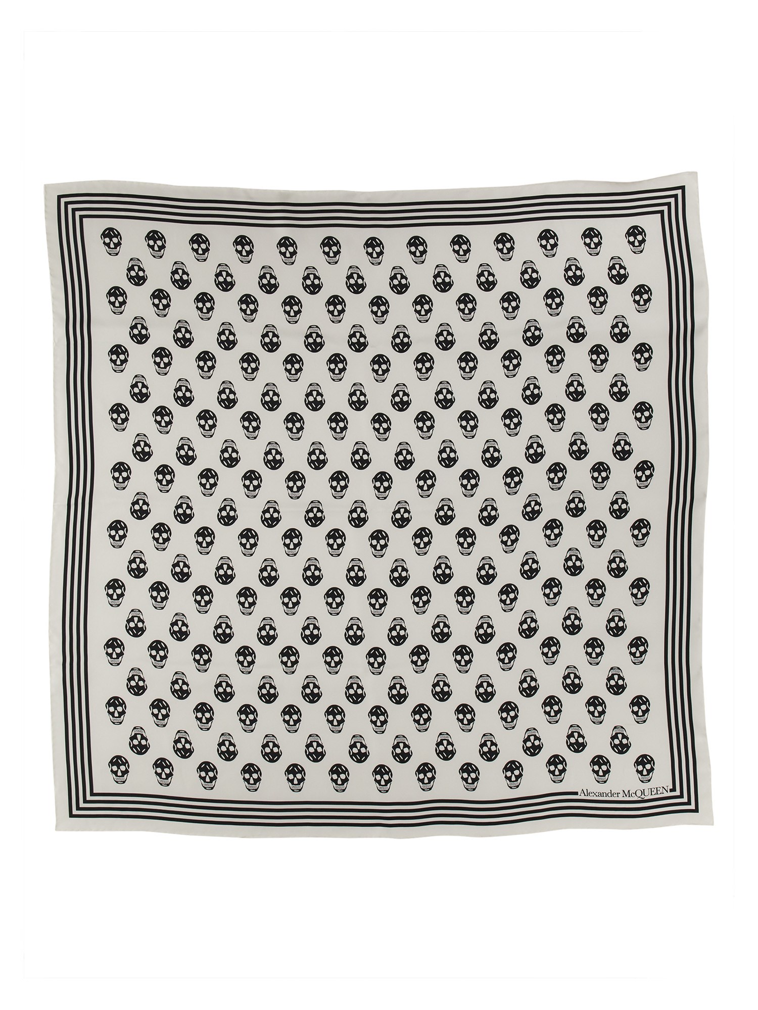 Questa sciarpa di Alexander McQueen mescola il lusso della seta con la ribellione della cultura motociclistica, rendendola perfetta per chi ama fare una dichiarazione di moda drammatica. Questa sciarpa di grande effetto vi farà distinguere dalla massa. La stampa dettagliata del teschio dà una spinta all'atteggiamento di qualsiasi ensemble.