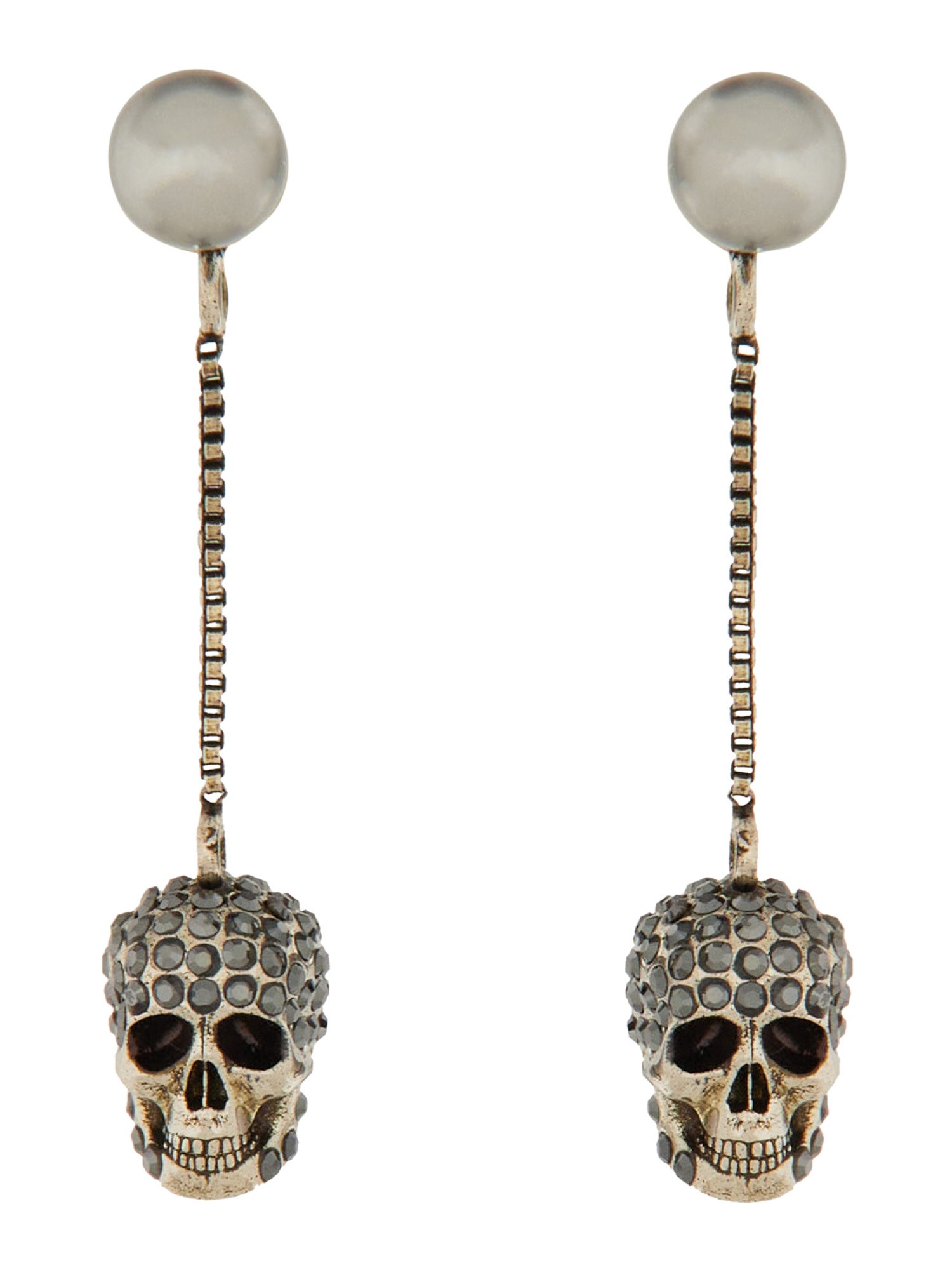 ORECCHINI PENDENTI SKULL CON PIETRE E PERLA