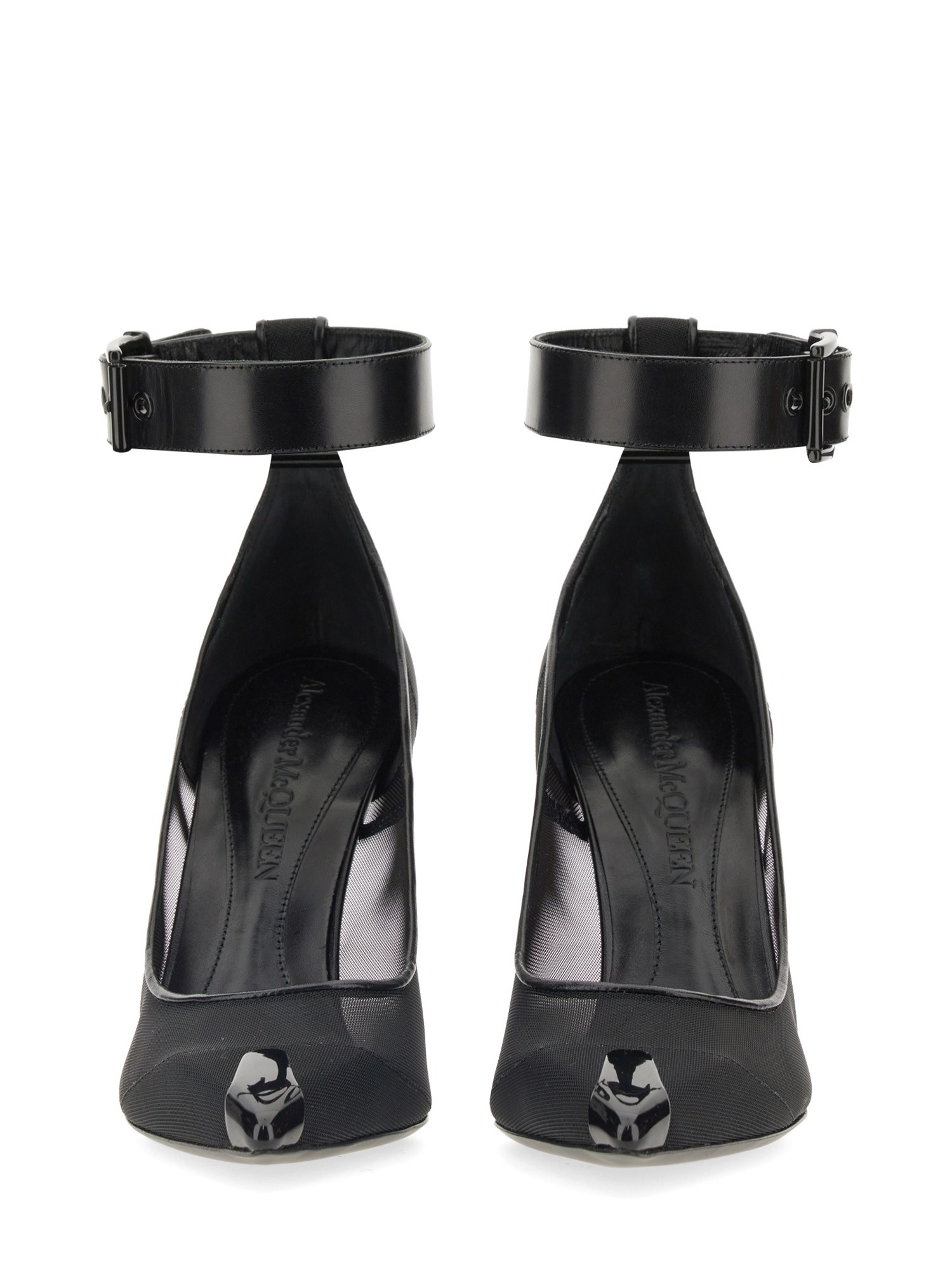 Le décolleté di Alexander McQueen fanno parte della collezione autunnale del marchio. Sono realizzate in pelle testurizzata con una finitura di classe e presentano un cinturino con fibbia alla caviglia. Il tacco è a spillo e la scarpa ha una punta sottile e appuntita. L'interno della scarpa è realizzato in rete con un design punk.