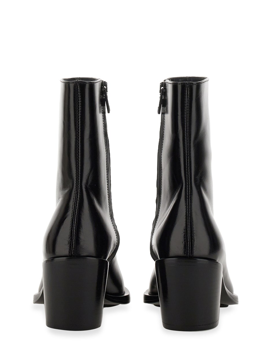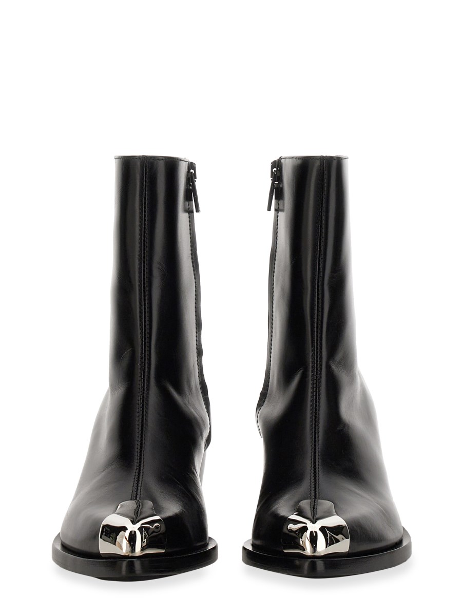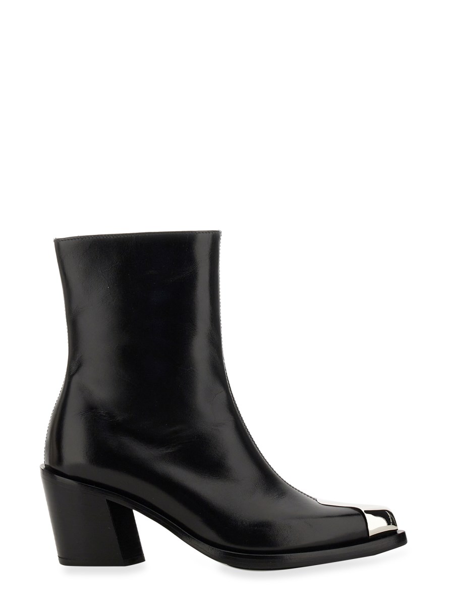 Lo stivale Punk della maison Alexander McQueen è la perfetta combinazione di stile e praticità. Questo pratico stivale è dotato di tomaia in pelle, collo imbottito, punta punk e chiusura con cerniera laterale. Sono realizzati per essere comodi e resistenti e sono facili da pulire e mantenere.