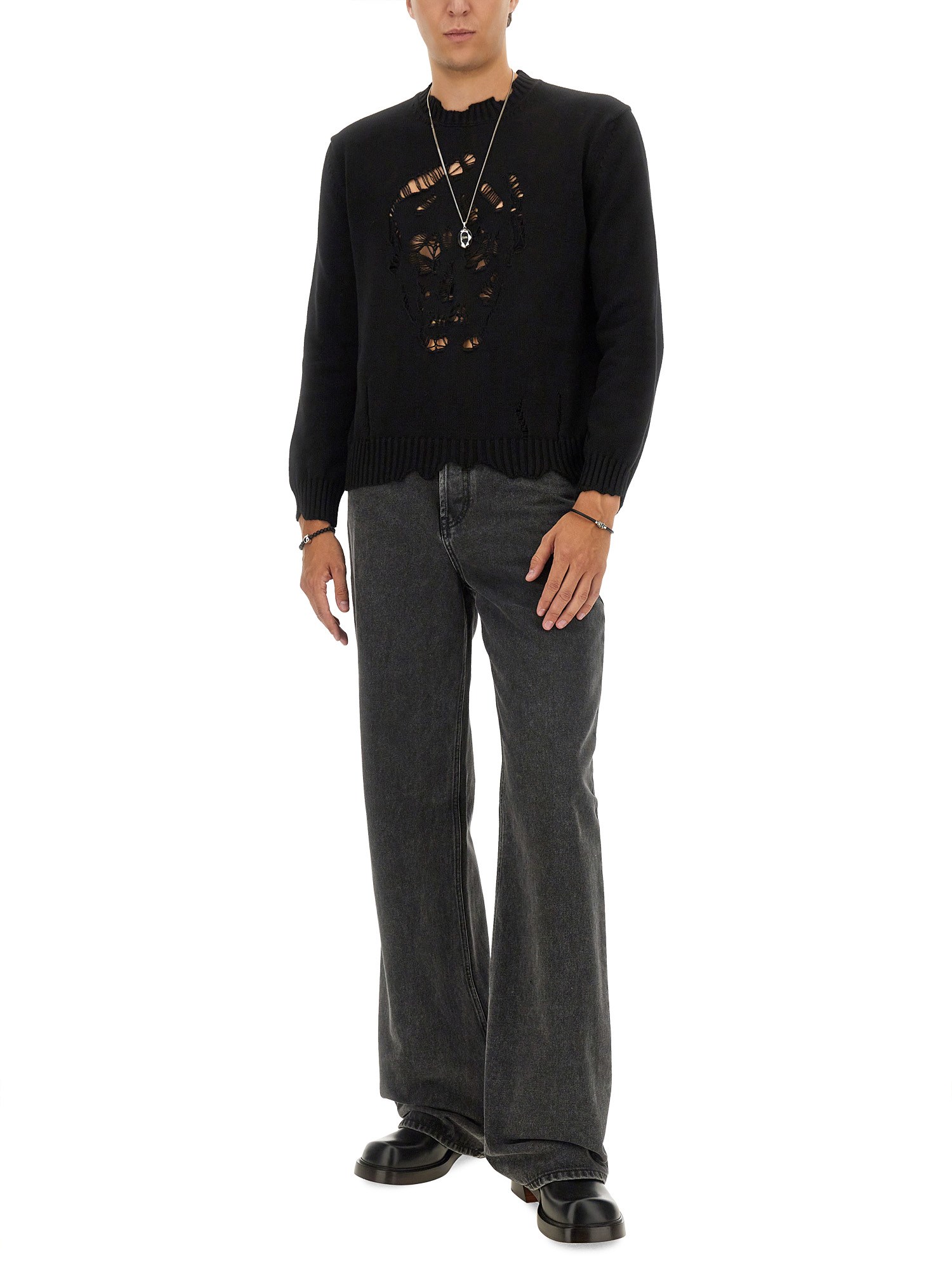 I jeans baggy di Alexander McQueen offrono un tocco contemporaneo al classico denim, con una vestibilità rilassata che unisce comfort e alta moda. Realizzati con materiali pregiati, questi jeans presentano un'attenzione meticolosa ai dettagli, tra cui cuciture distintive e il logo della maison. Ideali sia per le occasioni casual che per quelle più raffinate, offrono versatilità pur mantenendo un'estetica tagliente, sinonimo del marchio McQueen.