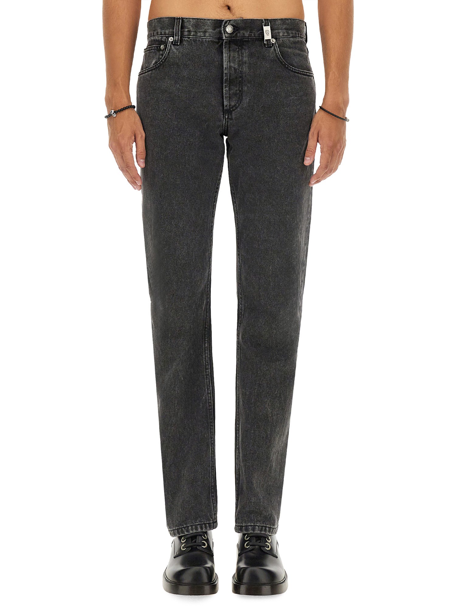 Scoprite l'epitome della moda contemporanea con questi jeans in denim di Alexander McQueen. Realizzati con precisione, presentano una vestibilità sartoriale che accentua la silhouette e assicura il comfort. Il denim di alta qualità offre resistenza e un fascino senza tempo, rendendo questi jeans un'aggiunta versatile a qualsiasi guardaroba. Con elementi di design distintivi che riflettono l'estetica avanguardista di McQueen, questi jeans sono perfetti per chi vuole fare una dichiarazione audace.