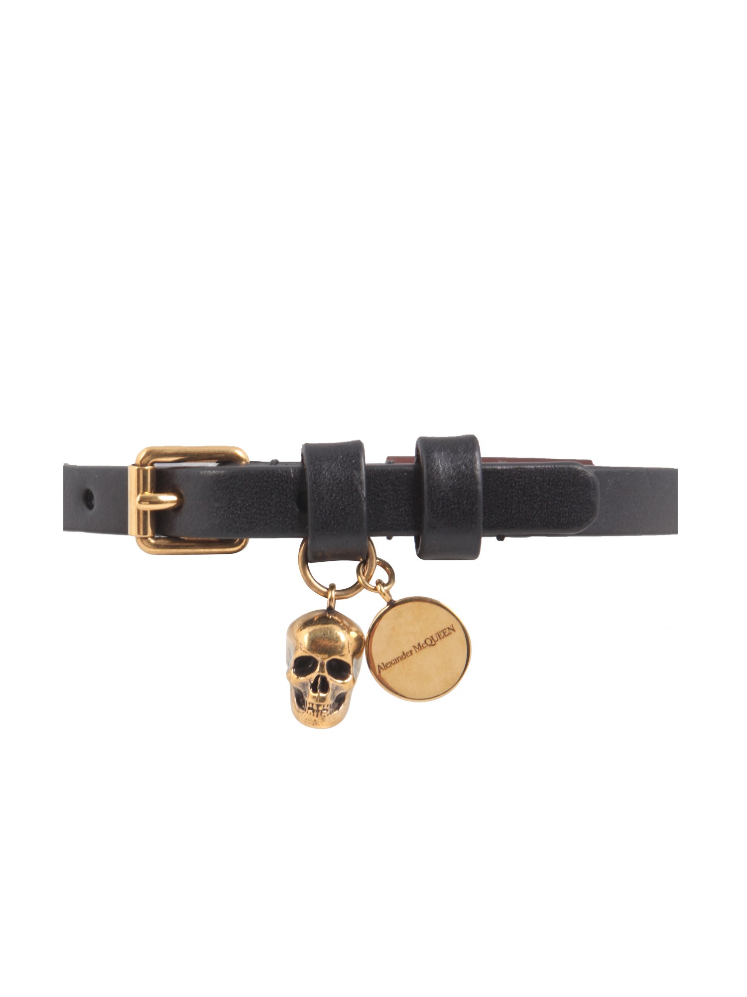 Il braccialetto in pelle di Alexander McQueen, di squisita fattura, presenta una chiusura a fibbia e un disegno a teschio. Questo articolo è molto sicuro e semplice da indossare e togliere grazie alla chiusura a fibbia. Questo capo versatile è ideale per la stagione in arrivo e si abbina a qualsiasi abbigliamento.