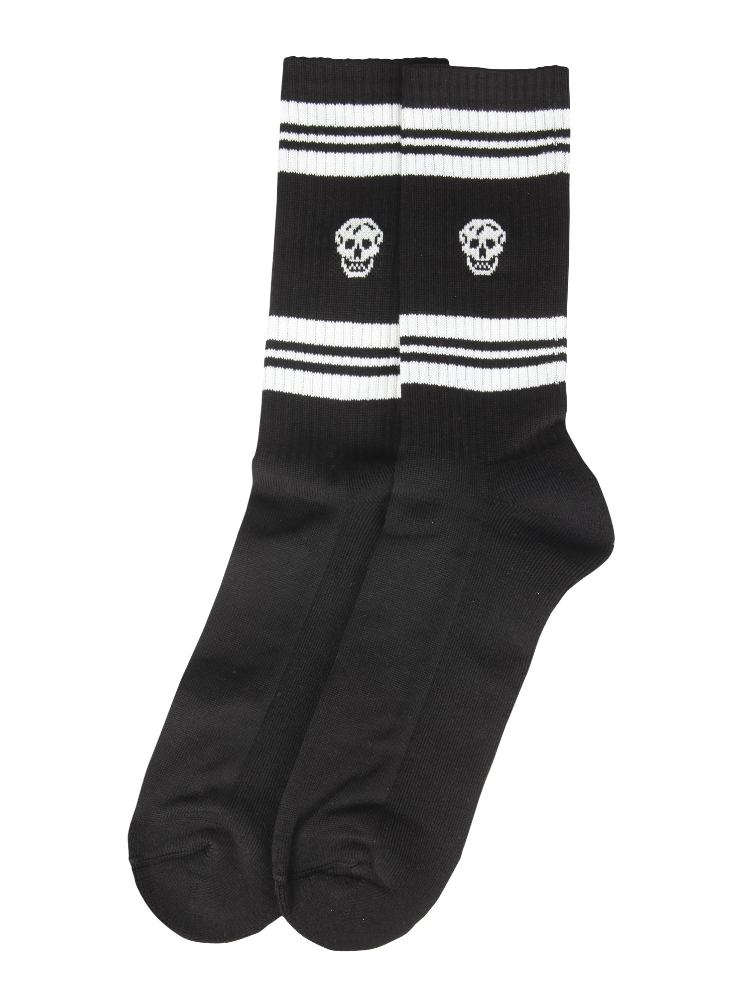 I calzini in misto cotone con dettaglio teschio di Alexander McQueen sono perfetti per ogni giorno della settimana, che sia un venerdì casual o un'occasione elegante. Questi calzini presentano un intricato motivo di teschi di vari colori e dimensioni che aggiungono un tocco di bizzarria a qualsiasi abbigliamento. Questi calzini sono comodi e traspiranti, perfetti per le calde giornate estive.