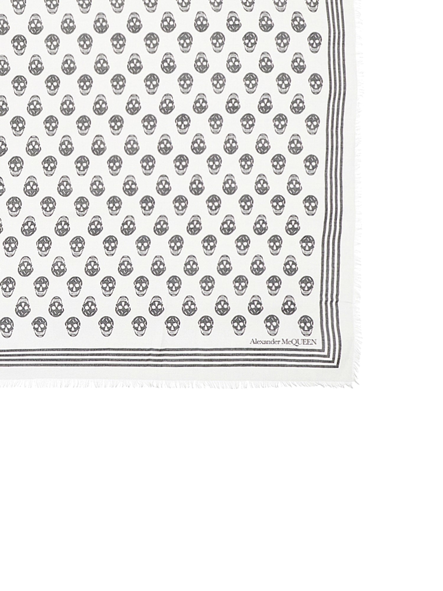 Questa sciarpa da motociclista di Alexander McQueen è perfetta se vi piacciono i teschi! Ha una stampa di teschi e ossa incrociate in bianco e nero, che la rende l'aggiunta ideale al vostro completo nero preferito. Questo tessuto spesso e felpato è il tocco finale ideale per la vostra giacca da moto o un dolce accessorio estivo. Ha una stampa di teschi su tutto il corpo ed è realizzato interamente in modal.