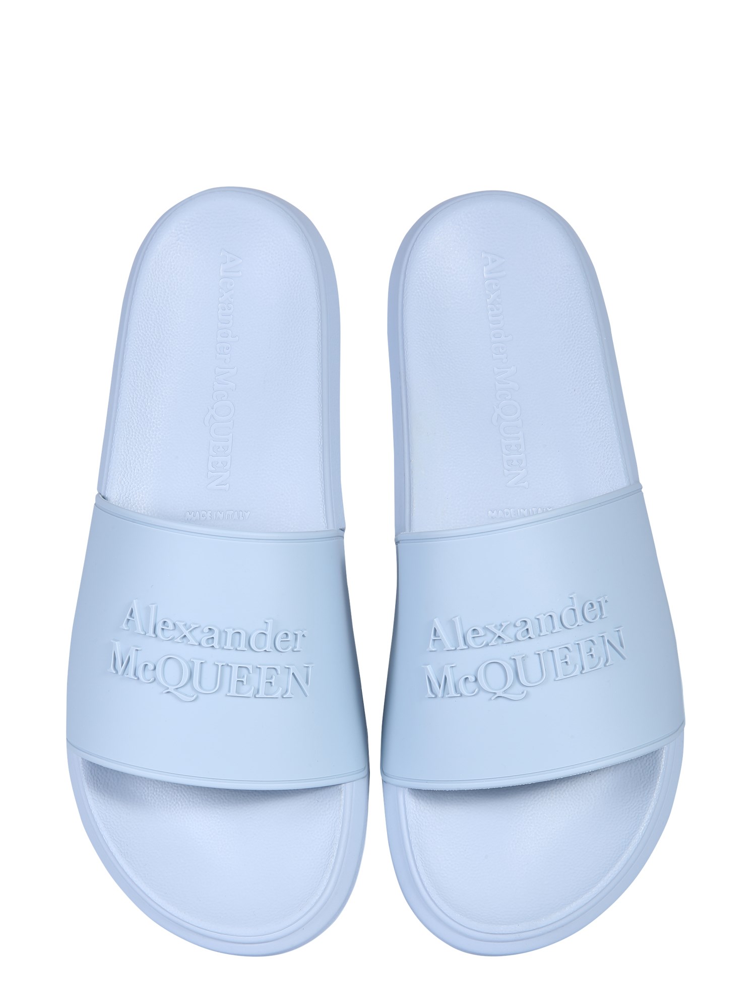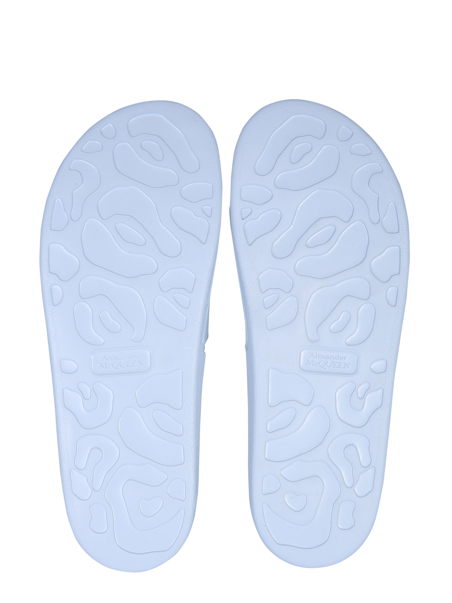 Questi sandali colorati di Alexander McQueen sono progettati per garantire comfort e stile, perfetti per l'estate. Questi sandali robusti sono progettati per essere indossati sia sul piede che fuori, quindi sono perfetti per tutte le stagioni. Questo elegante modello è caratterizzato da un grande logo e da un cinturino con passante in punta.