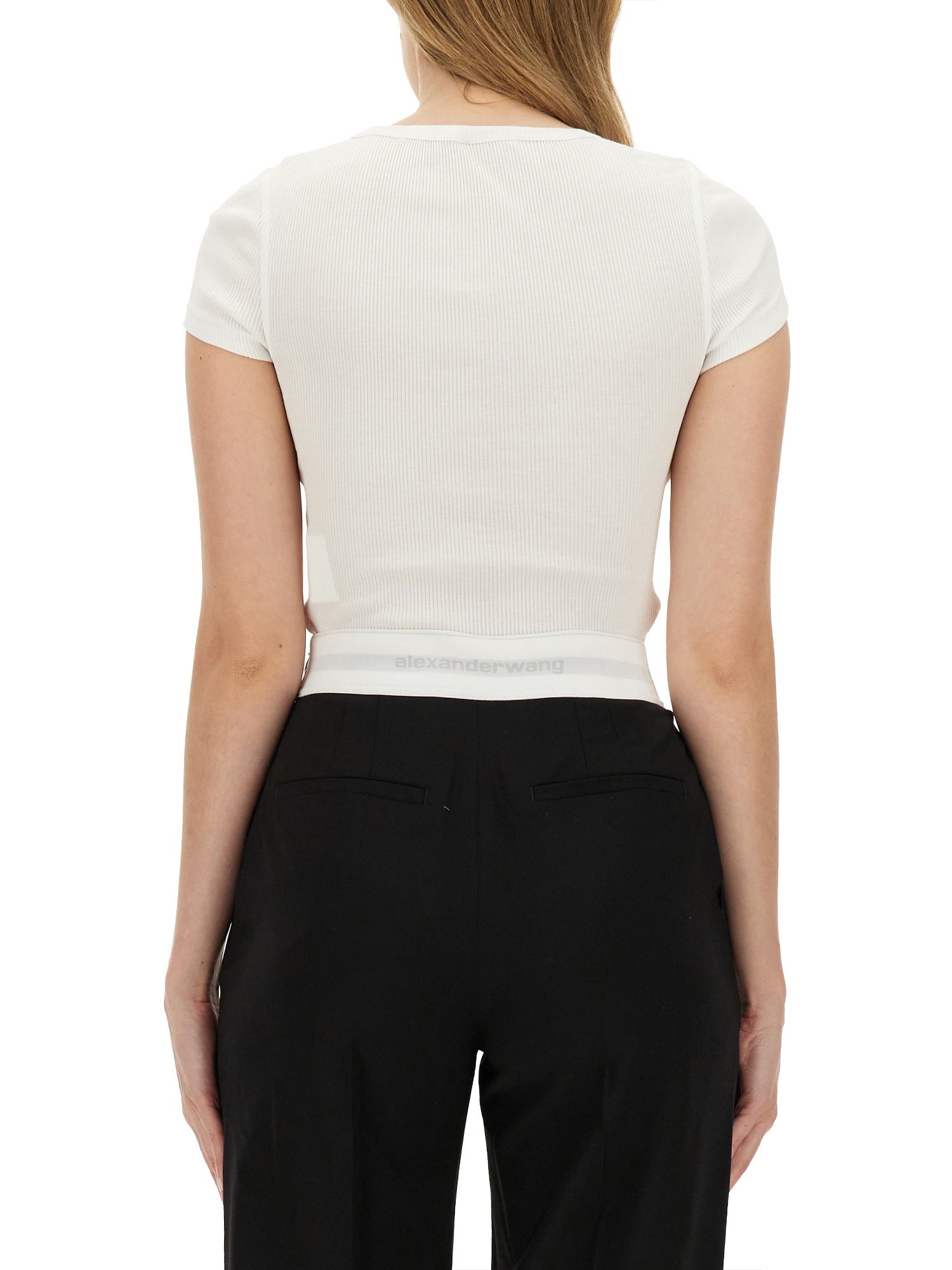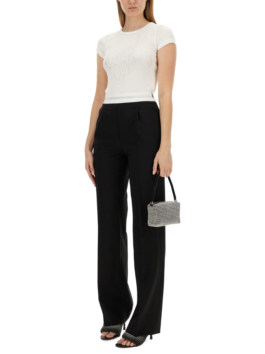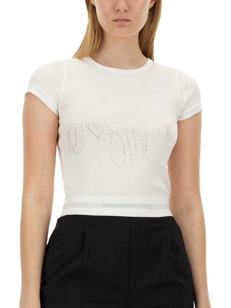La T-shirt con logo in strass di Alexander Wang combina uno stile contemporaneo con un tocco di glamour, grazie al logo impreziosito da strass che eleva una silhouette classica. Realizzata in tessuto di alta qualità, questa t-shirt offre comfort e durata, rendendola un'aggiunta versatile a qualsiasi guardaroba. La sua vestibilità rilassata e il suo design moderno la rendono adatta a diverse occasioni, sia abbinata a jeans casual che vestita con capi sartoriali. Abbracciate un'estetica chic con questo pezzo forte che riflette lo spirito innovativo di Alexander Wang.