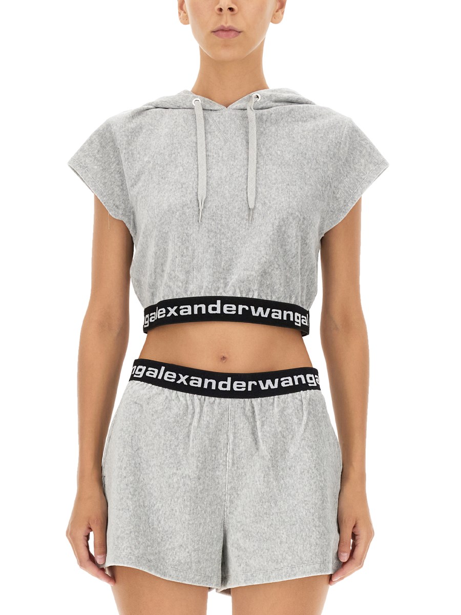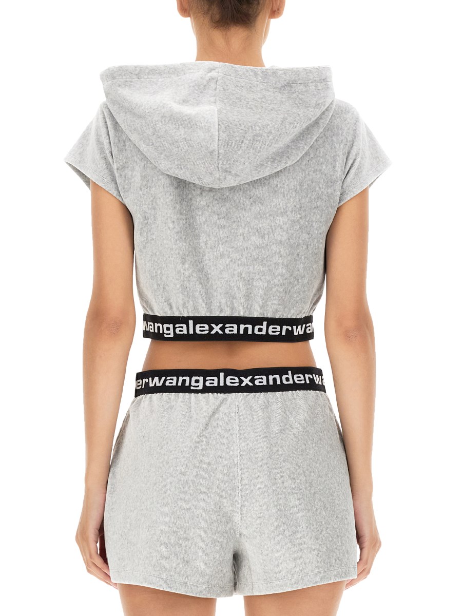 - CAPPUCCIO CON COULISSE- BANDA LOGATA SUL FONDO- CROPPED- 57% COTONE, 40% POLIESTERE, 3% ELASTANE- LA MODELLA É ALTA 180 CM E INDOSSA LA TAGLIA S