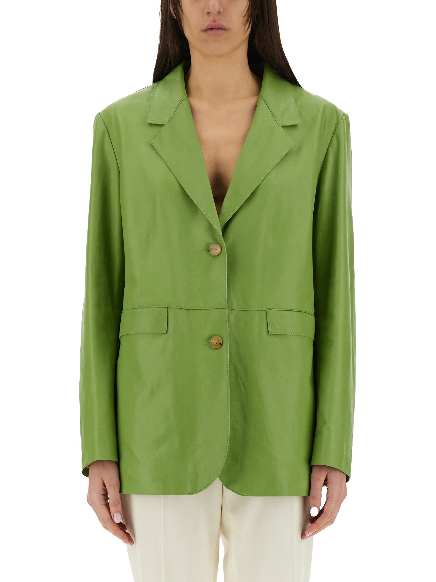 - OVERSIZE FIT- 100% LEATHER- MADE IN India- LA MODELLA É ALTA 180 CM E INDOSSA LA TAGLIA 42 IT